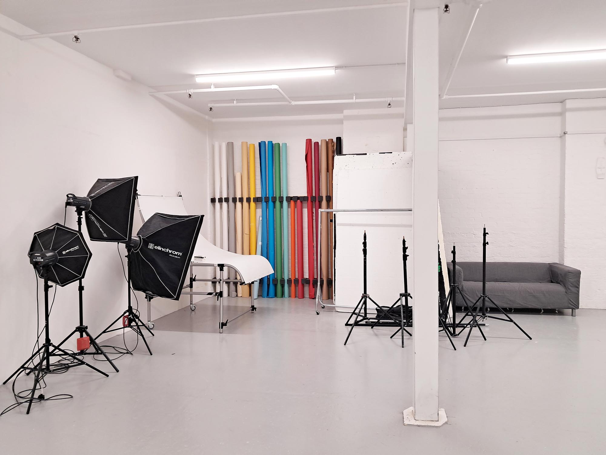 The Photography Studio (Unit 8, TB-21) is a great space to document paintings, sculpture, ceramics or furniture and is ideal for fashion shoots. Dimensions of the main space (excluding alcoves) as follows: Length 10.76m (35.31ft) x Width 9.27m (30.41ft) x Height 3.16m (10.40ft) Open Monday-Friday, 9am-5pm. Studio holders: £60 per day (9am-5pm). Deposit of £50 required by credit card. Studio holders using space for commercial work (photographers' work): £80 per day (9am-5pm). Deposit of £50 required by credit card. Non-studio holders: £125 per day (9am-5pm). Deposit of £200. Credit card details held with deposit. For all bookings payment is required in advance at the time of booking. Your deposit is lost if cancelled within one week of booking. Prices include electricity. A choice of colorama backdrop paper (white/black/grey/blue) is available to use at £10 per metre. For details and to book email info@thames-sidestudios.co.uk Thames-Side Studios Photography Studio Studio TB-21 The Atrium, Unit 8 Thames-Side Studios Harrington Way London SE18 5NR