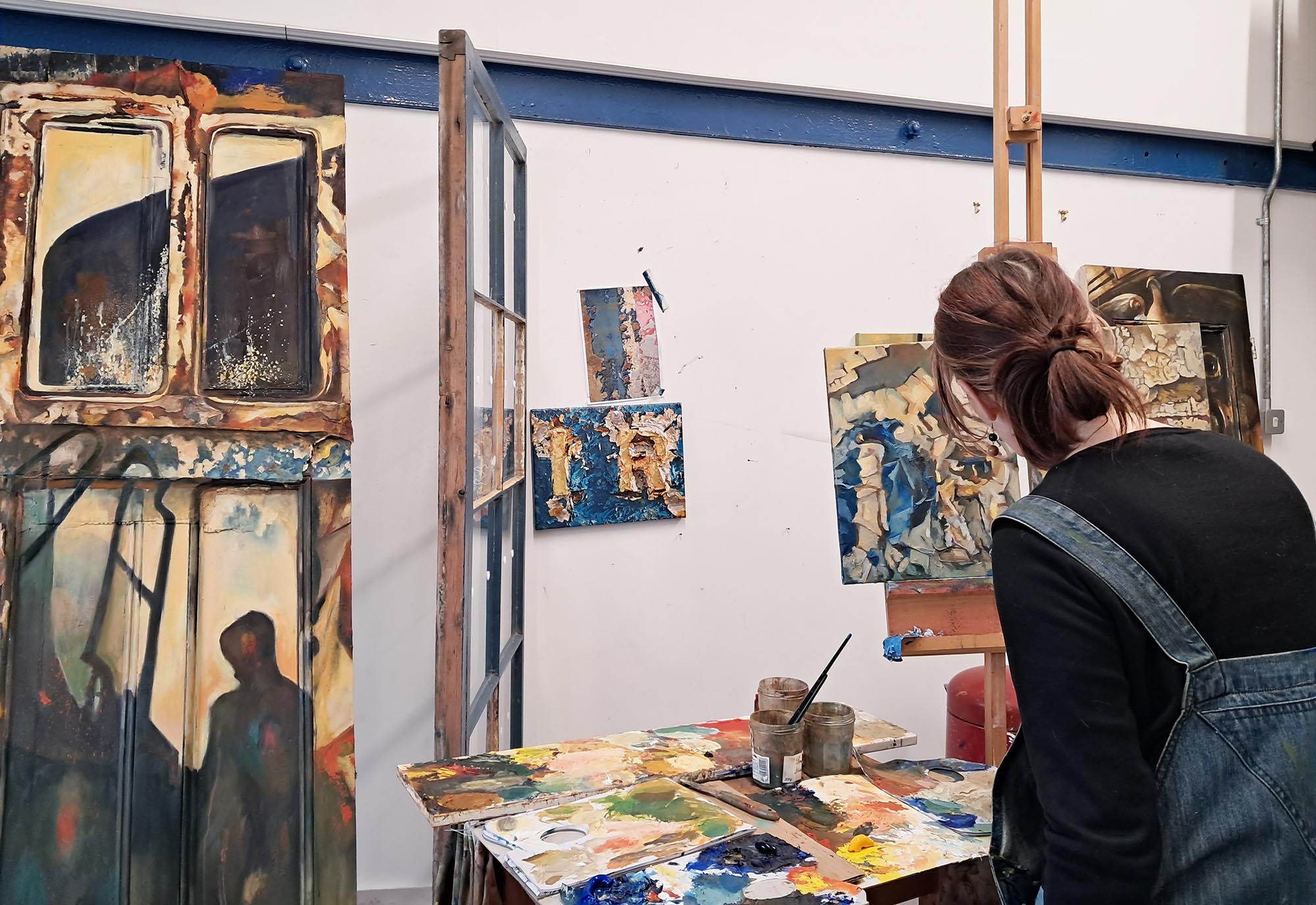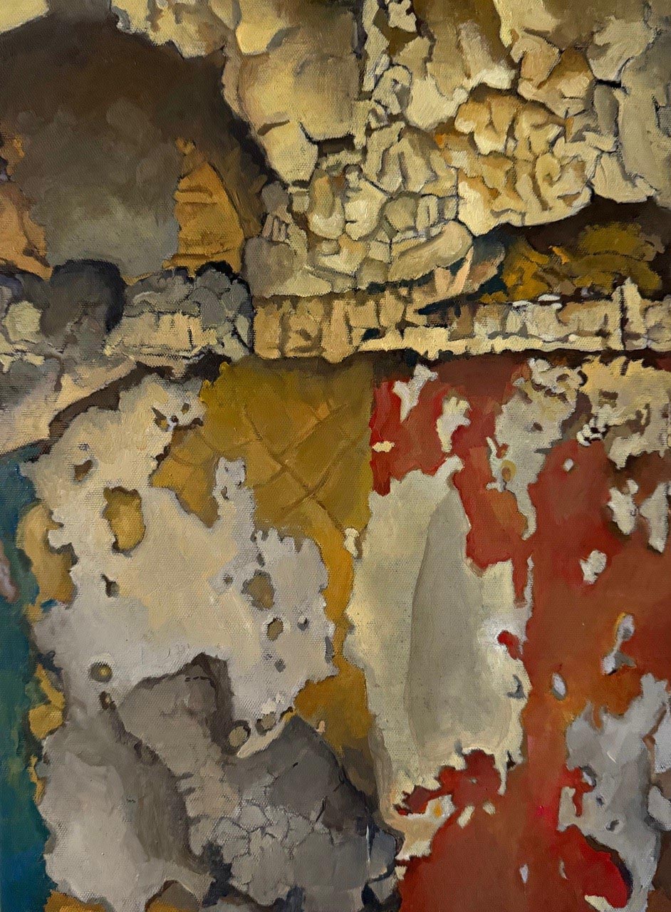 Scratch the surface…initiate an initial investigation to discover something concealed. In this exhibition, Gerri Grogan (7-206) presents work drawn over a period of time, exploring themes of the passing of time, history, nostalgia and making moves towards abstraction. Observing and researching the history of this part of industrial London, she has looked at how we attach sentiment and memory to the environments of our past and the idea that we often look back nostalgically but find the present lacking. Erosion and decay demonstrate how the passage of time impacts on the surface and material of those environments. The use of doors as art links directly to entering those different worlds and the idea of stepping into the artists’ mind. The Royal Iris ferry conveys a real sense of past glories eroding before our eyes, as do the once busy local pubs and workplaces which have been left to the ravages of time. The Tate and Lyle factory however is a still functioning reminder of the industrial heart of this part of London, and remains a constant landmark on the horizon, with moving elements reminding us of its purpose. This view has continued to inspire Gerri’s work, more recently towards a more abstract interpretation of the colour palette and ever- changing light quality reflected back from the river and the sky. About the artist: Gerri Grogan studied Fine Art at Wolverhampton University then later a MA at SOAS in Art and Architecture of South East Asia. She has been an art teacher both full and part time for over 30 years, only coming back to her own practice more fully in the last nine years. She also volunteers as a guide at Tate Modern. Her work has been very inspired by the history of her environment, whether that is urban London or the Buddhist stupas of India, but in particular the erosion and surface qualities of those environments and how they convey the passage of time has held a particular fascination. Gerri has participated in several group shows, including in Wolverhampton, Thames-Side Studios and Tate Modern staff shows, as well as a solo exhibition at the Brunel Museum café. She was also previously an artist in residence in Bangkok. For more details and information please get in touch with Gerri directly here and follow on Instagram @gerrigroganart Thames-Side Studios Lounge is located on the second floor of Unit 0 and open to all studio holders and by appointment. For non-studio holders please DM the artist to arrange an appointment.