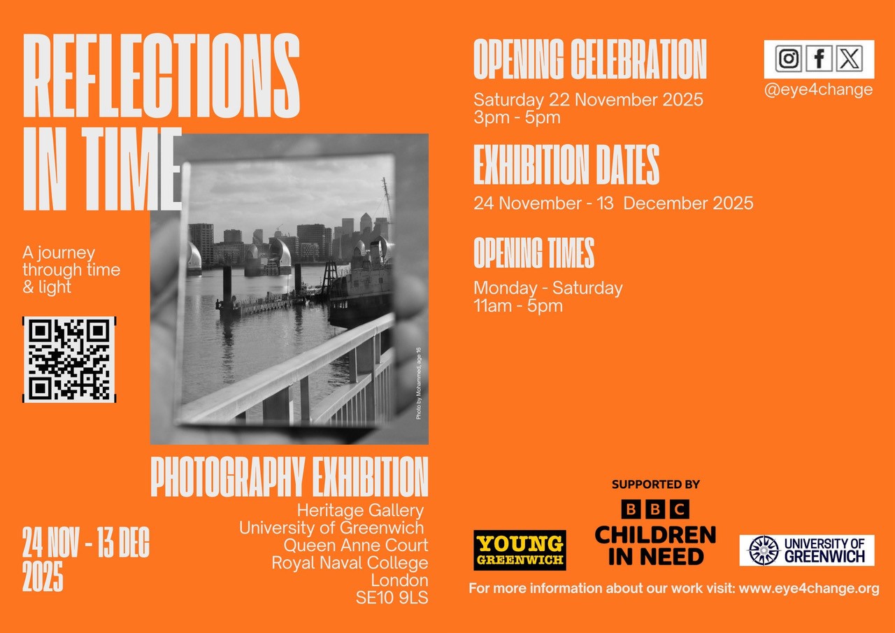 Xenia Demetriou’s (5-142) Eye4Change celebrates the work of young people. This is their 16th year of bringing connection and community through the power of photography, to disadvantaged people of all ages, particularly young people. See Reflections in Time at the Heritage Gallery, University of Greenwich, Queen Anne Court, Royal Naval College, London SE10 9LS. Open Monday-Saturday, 11am-5pm. Supported by Young Greenwich, BBC Children in Need and the University of Greenwich. www.greenwichunigalleries.co.uk/eye4change-reflections-in-time