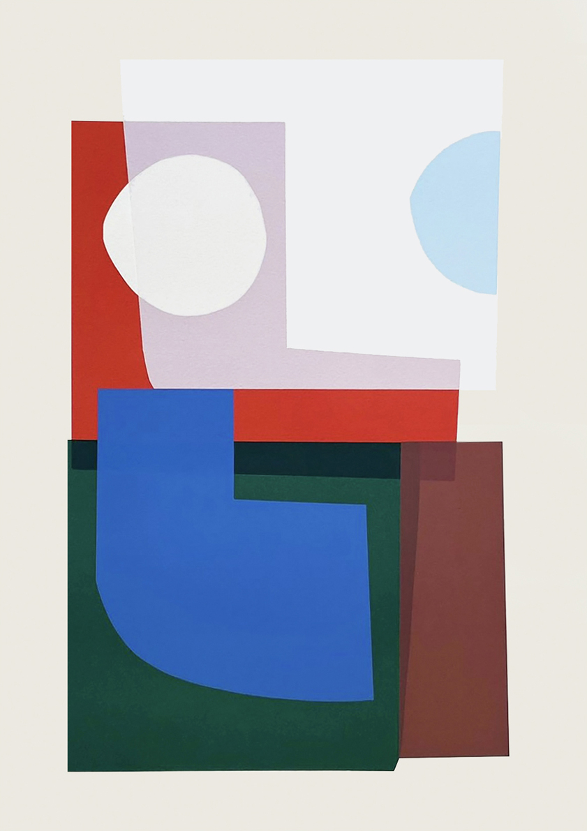 A graduate of Leeds Arts University with a BA in Printed Textiles & Surface Pattern Design (2009), Jonathan spent several formative years developing his practice in Berlin before returning to the UK. His distinctive visual language is defined by layered shapes, intricate patterns, and a rhythmic interplay of colour and form. Abstract compositions form through an organic, process-led technique that embraces experimentation and evolves through the act of screen printing.