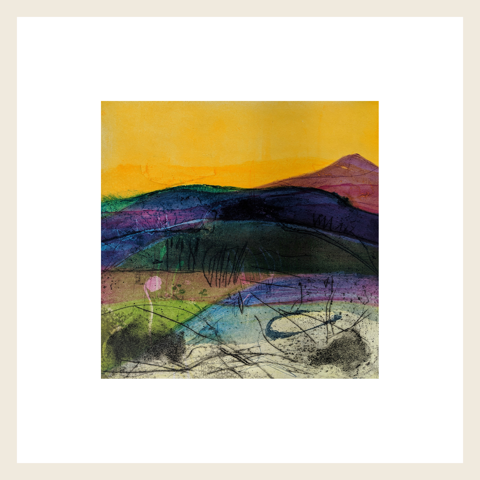 Louise’s prints and paintings are primarily concerned with the landscape. Some are based on childhood memories, reflecting on the countryside and coast of the west of England where she spent her early childhood. However some of the prints are created from small paintings and drawings made on location in sketchbooks.