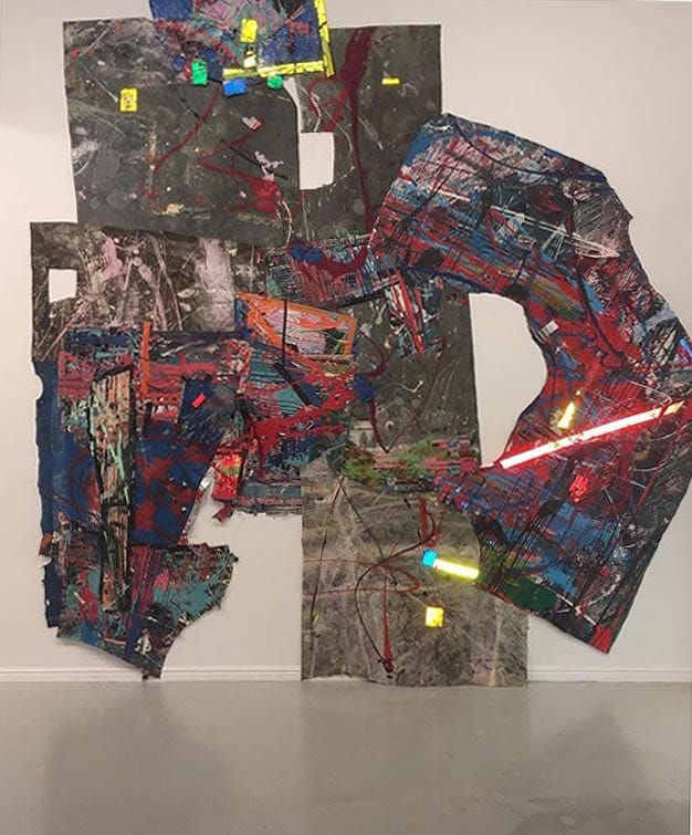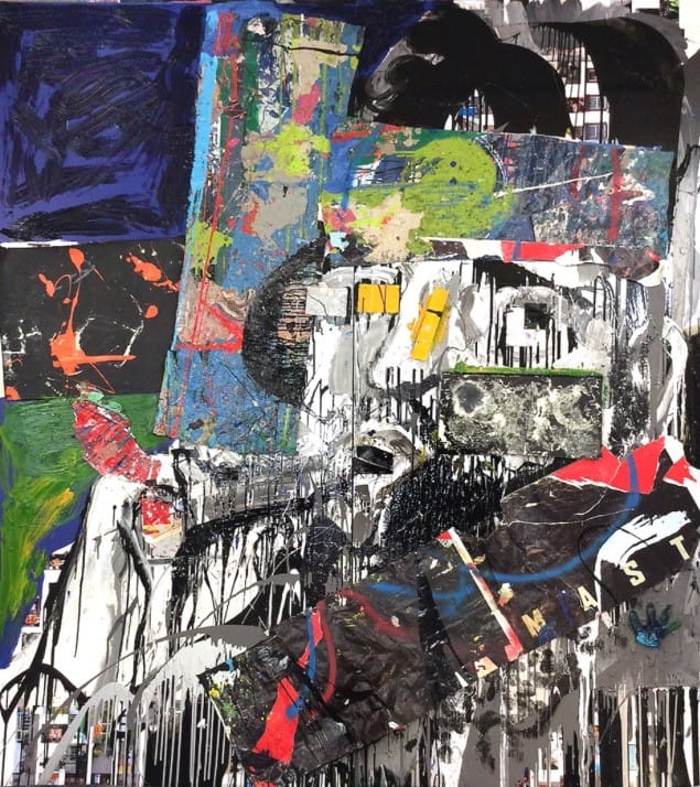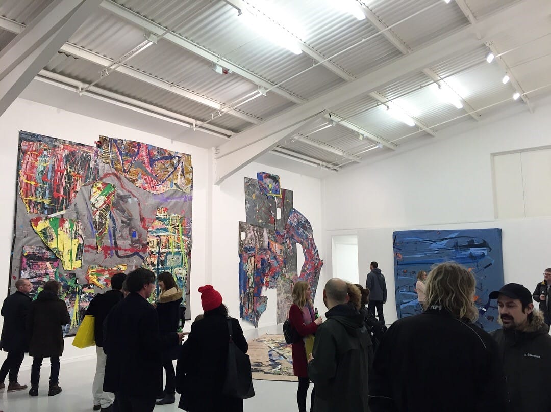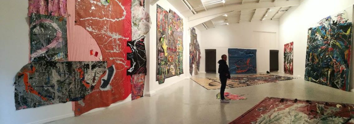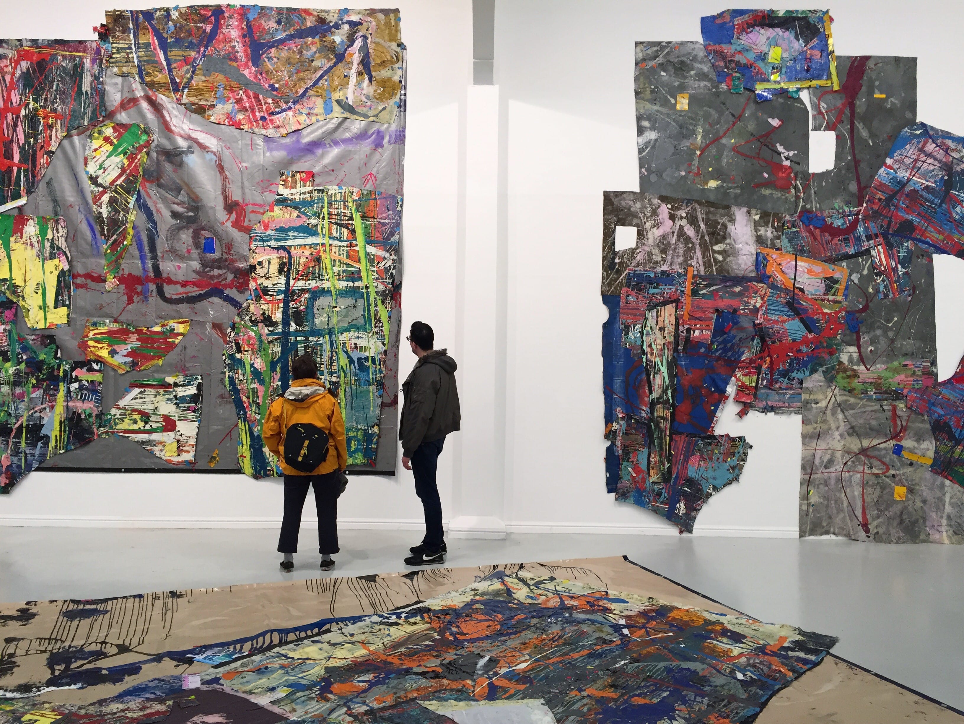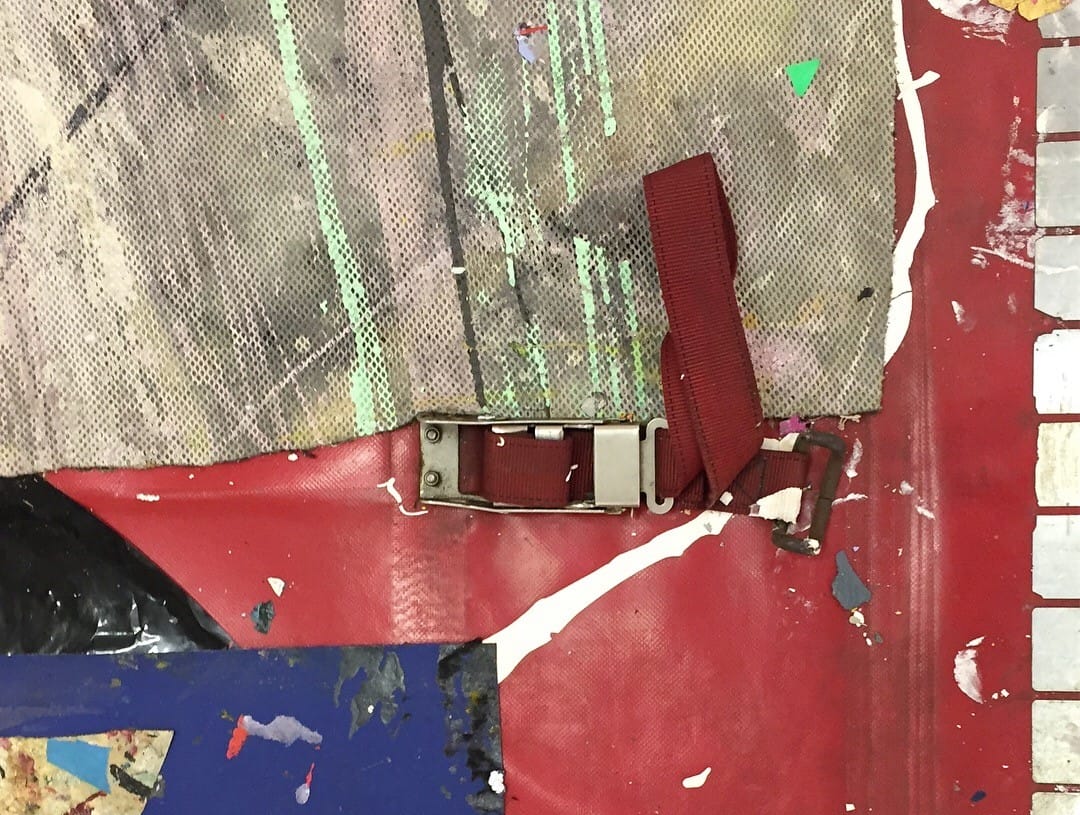 Exhibition Dates: 10 March–1 April 2018 Preview: Friday 9 March 2018, 6.30-8.30pm Howard Dyke presents a new series of large scale paintings and collages based around materiality and the figure, played through the devices of abstraction and gesture. Cut, torn, displaced images are played out on a variety of substrates including translucent, coloured and patterned tarpaulins; a red PVC lorry side curtain split in half, adorned by two monumental imposing figures; and a painting of Fidel Castro made on a 2017 general election aluminium hoarding. Howard Dyke (born 1971) lives and works in London. Exhibitions include Biennale, Drawing Room, London (2017); Self Storage, Ridgeway Road, London (solo, 2017); Residency, Bon Volks, Margate, Kent (2017); The British Society of Self Depreciation, Cheng Centre for Contemporary art, Beijing (2016); KEROSENE, Charlie Dutton Gallery (solo, 2012); London 12, City Art Gallery Prague (2012); Law of the Jungle, Lehman Maupin, New York (2011). Collections include Saatchi Collection, David Roberts Foundation, Simmons & Simmons and Beth de Woody. Thames-Side Studios Gallery Thames-Side Studios Harrington Way, Warspite Road Royal Borough of Greenwich London SE18 5NR. Thames-Side Studios Gallery open Thursday-Sunday 12-5pm during exhibitions and by appointment. For general Thames-Side Studios Gallery enquiries please email info@thames-sidestudios.co.uk Images: Howard Dyke, DOUIN tent paintings, preview; Howard Dyke, Mountains, collage, 40 x 50cm, 2017; United Front, oil and acrylic on polyester, 239 x 258cm, 2011; Global Awning, 2017; studio shot of work being made for DOUIN tent paintings, oil, acrylic and collage on Lorry side curtain, 300 x 400cm (approx), 2018; Castro, oil, acrylic and collage on di-bond aluminium, 244 x 244cm, 2017. All courtesy the artist, 2018, except United Front courtesy the artist and Saatchi Gallery London, 2011. Text stills from The Law Of Surprise an essay on Howard Dykes paintings by Matthew Collings.