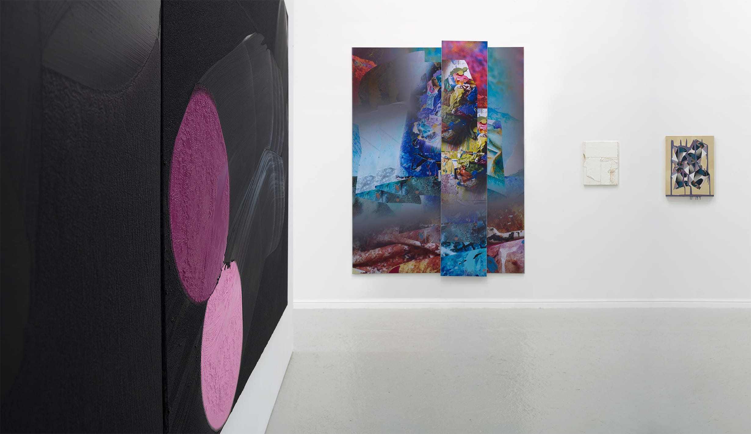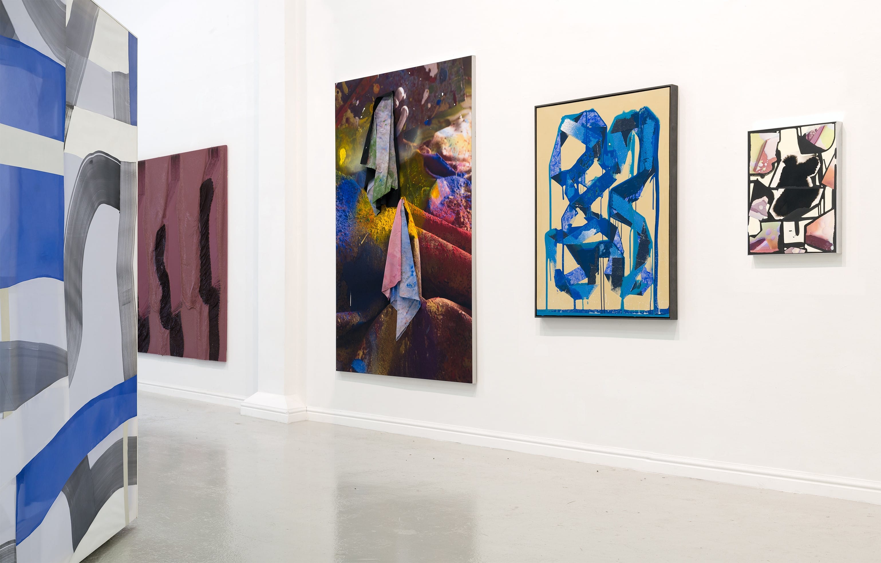 Thames-Side Studios Gallery Thames-Side Studios Harrington Way, Warspite Road Royal Borough of Greenwich London SE18 5NR. Thames-Side Studios Gallery open Thursday-Sunday 12-5pm during exhibitions and by appointment. For general Thames-Side Studios Gallery enquiries please email info@thames-sidestudios.co.uk Images: Surfaced, installation view details, Thames-Side Studios Gallery, 2018, photography Jim Cheatle; Peter Lamb, The Same in Animal Form, digital print on synthetic canvas, aluminium subframe, 280 x 190cm, 2017; Alexis Harding, Unfixed Descendants, oil and gloss paint on aluminium, 79 x 120cm, 2016; Sarah Kate Wilson, Crabstep, stretched canvas with mixed media, 95 x 60 x 12cm, 2016; Alison Goodyear, Gloopy droopy, acrylic, ink and oil paint on silk and canvas, 100 x 80 x 4cm, 2017; Jim Cheatle, Fragmentation No.6, paper cast surface (resin), pigments, watercolour paper, indian ink, inkjet prints, MDF, mirror polished aluminium, 61 x 45 x 4cm, 2014. All images courtesy of the artists, 2018.