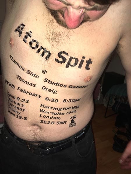 Thomas Greig, Atom Spit Exhibition Dates: 9-23 February 2019 Preview: Friday 8 February 2019, 6.30-8.30pm Artist-led exhibition tour: Saturday 23 February 2019, 2pm