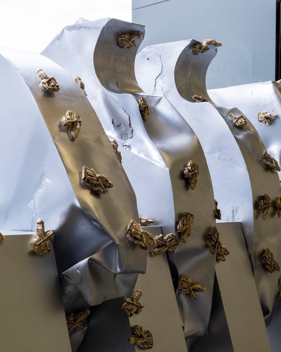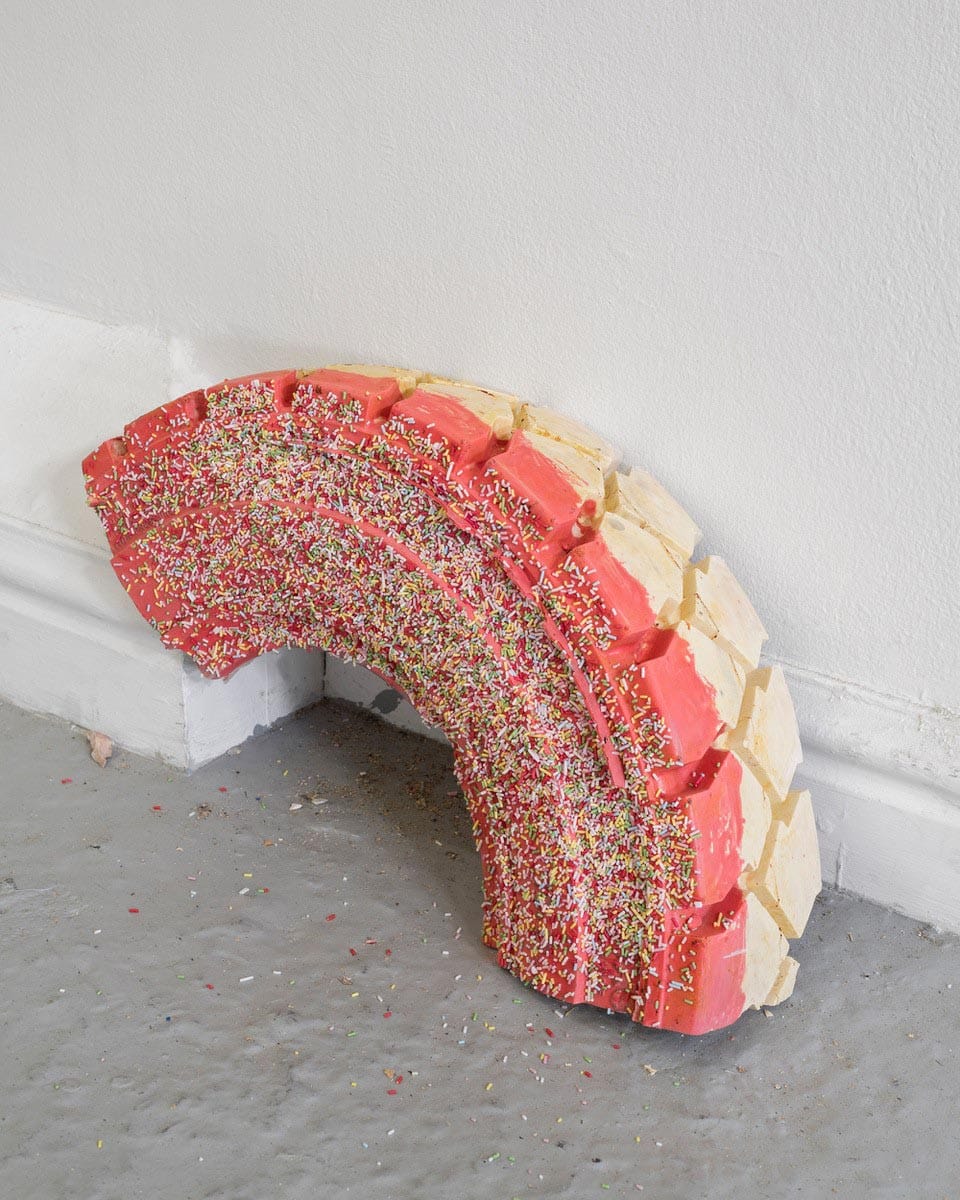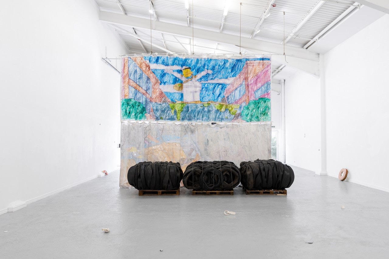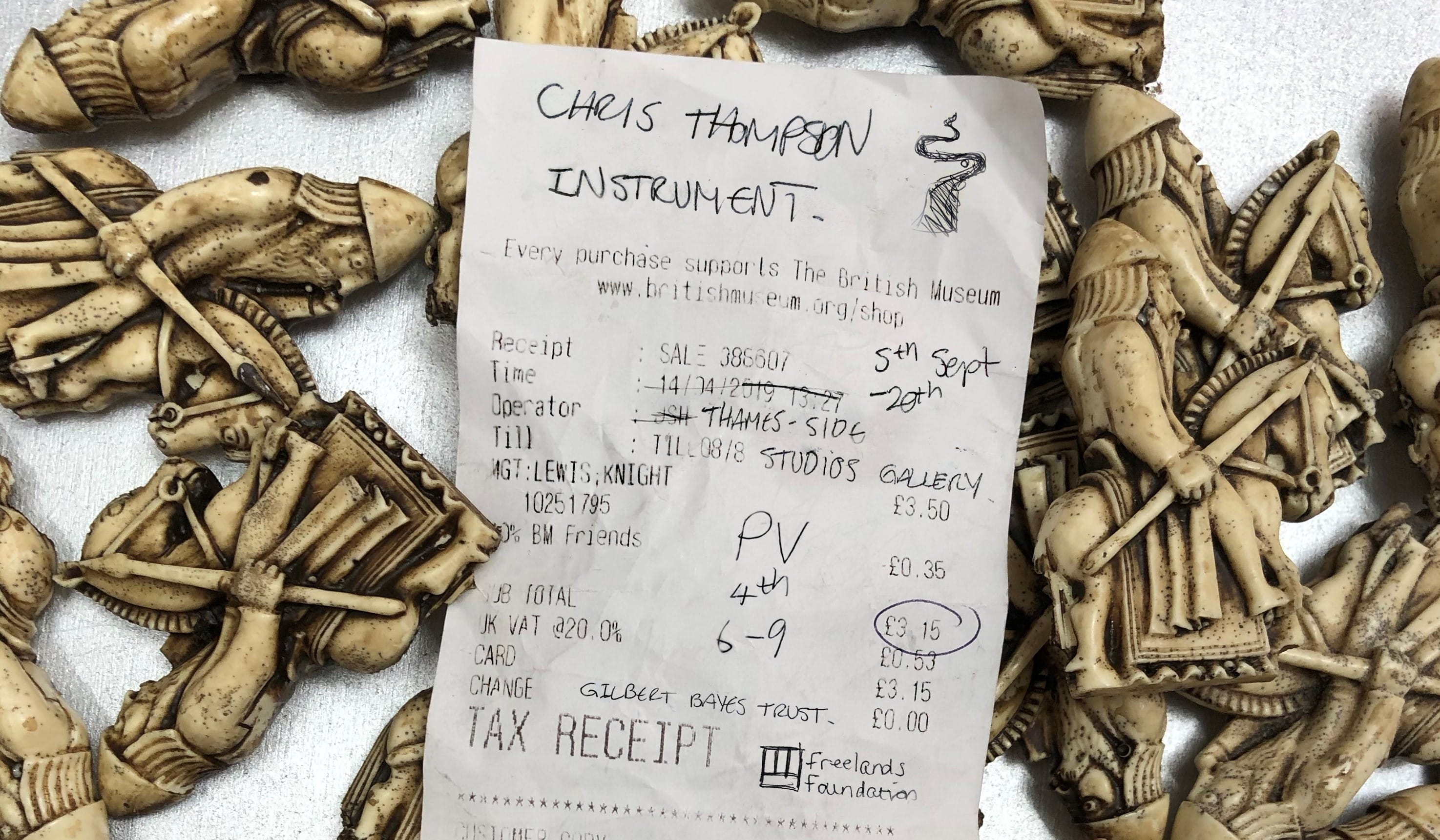 Chris Thompson Instrument Exhibition Dates: 5-27 September 2020 The British Museum is a storehouse. Full of questionably acquired objects, its contents offer a window into the wider systems of ownership, wealth, transportation and consumptive structures embedded within their original eras and places. As an institution, its behaviour is also produced by those same structures. This is perhaps most evident in the gift shop, where one can buy plastic fridge magnet facsimiles of a Lewis Chessman knight for £3.50 (£3.15 for members). In Season 9, episode 22 of The Simpsons, Homer Simpson becomes the Commissioner of Sanitation for the city of Springfield by making a lot of crazy promises, and with a little help from Bono. Homer devises an idealistic system that promises to fix and deal with every single spill, nasty banana peel and fashion disaster the townspeople can produce. Predictably Homer’s Odyssey blows up in his face - literally. After spending all of the department’s money, the trash refuses to be so easily managed and starts to spew out of every hole it can find. But what about my knight? These two institutions may be bound by a sense of custodial responsibility towards our produce, waste or artefacts, but there is a crucial difference to be observed between them. Homer’s wilfully absurdist system seems almost designed to expose the agency our crap has, but my knight is a far more subtle, unintentional cypher. Instrument is a show focused on the moments where systems of processing unwittingly generate their own criticisms. The latent irony of my magnet gives light to the cultural, economic and industrial paradigm of the moment, and its obsession with processing and reconstituting my heritage into plastic for tourist change, just as tyre bales are the product of a capitalist market trying to figure out a solution to the rubber waste it has created. In a cultural and materialist paradigm where everything past is fodder for irony and dress-up, and everything present is waiting its turn to be shredded, discarded or repurposed, an obvious position to occupy is to wilfully exploit this framework- to inhabit those deconstructive pathologies as a method of revelation. Can I borrow Homer’s genius to swim back up stream, and reveal the neoliberal, consumptive pathologies of our world? Crucially, our capacity to recognise our cyphers at all gives rise to how those pathologies inhabit us, and are perpetuated by us, as well. D’oh! Thanks to the Freelands Foundation and the Gilbert Bayes Trust for making this possible. For more information visit www.christhompson.eu and Instagram @christhomp1991 Chris Thompson A4 exhibition text.pdf Please note that face masks are mandatory in the gallery space. Image: courtesy the artist, 2020 Thames-Side Studios Gallery Thames-Side Studios Harrington Way, Warspite Road Royal Borough of Greenwich London SE18 5NR. Thames-Side Studios Gallery open Thursday-Sunday 12-5pm during exhibitions and by appointment. For general Thames-Side Studios Gallery enquiries please email info@thames-sidestudios.co.uk