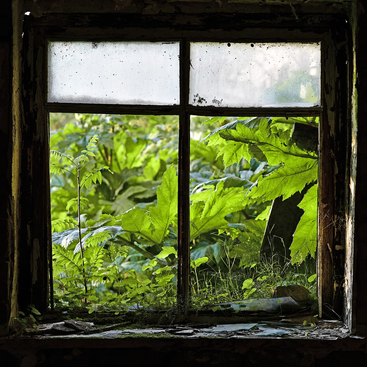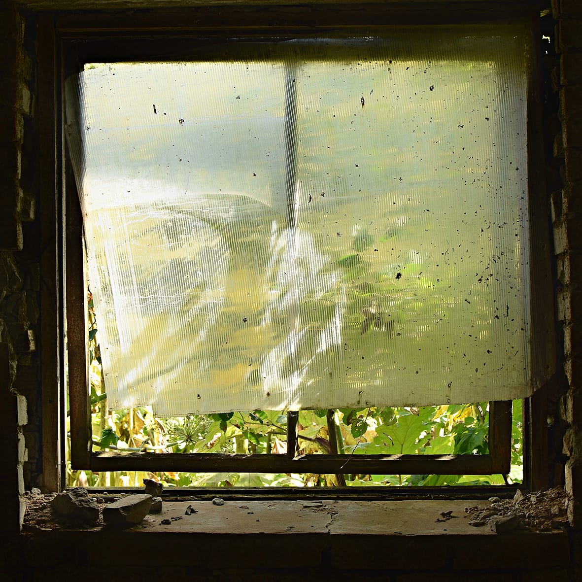 Here she discovered a former working barn, a building steadily crumbling away, which had been left untouched since Soviet Union state farming ceased in the 1990’s. Ekaterina saw the barn’s windows as ‘survivors’, gradually engaged in a process of merging with nature, with wild plants, trash and sunlight all combining to create their own individuality.