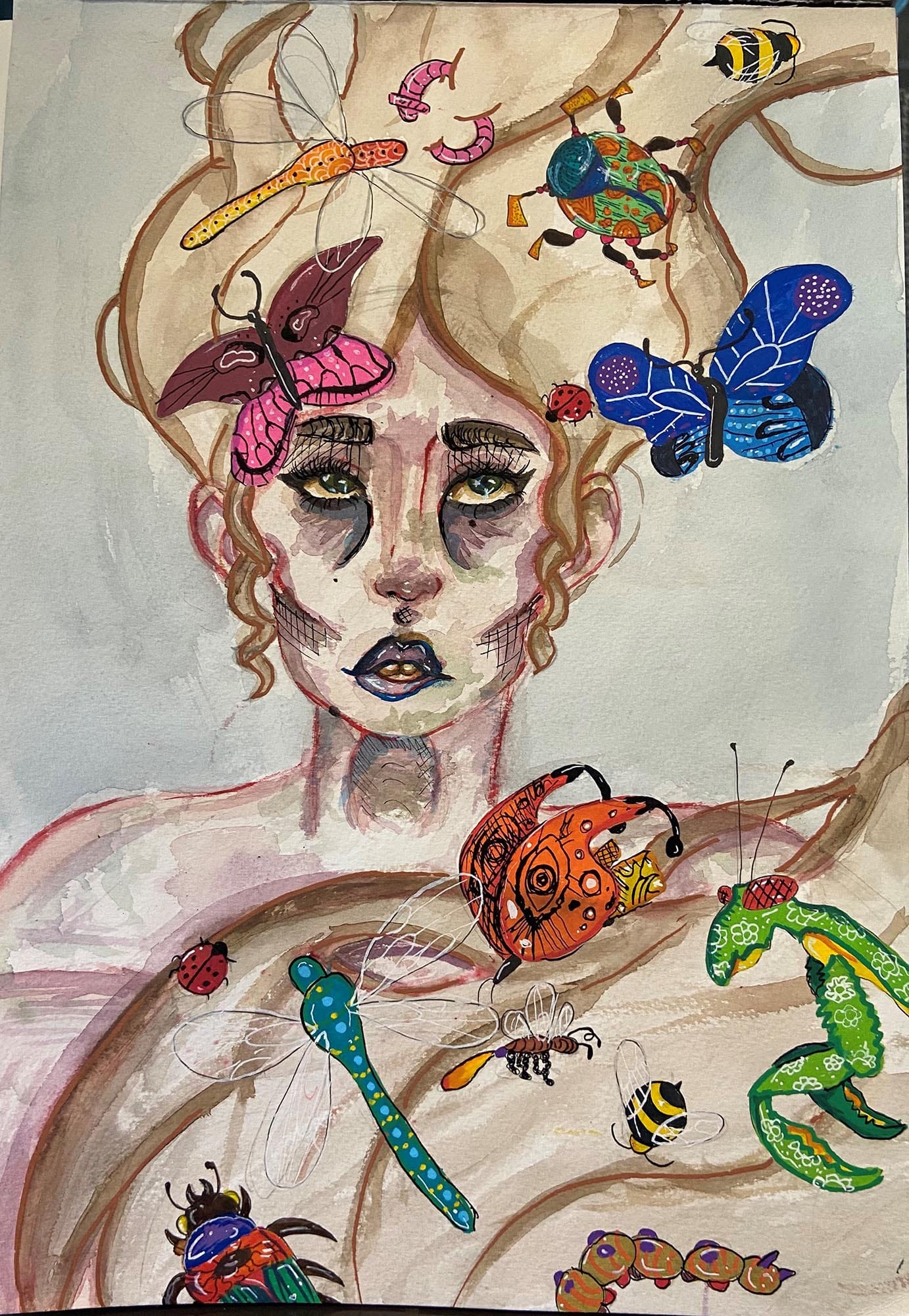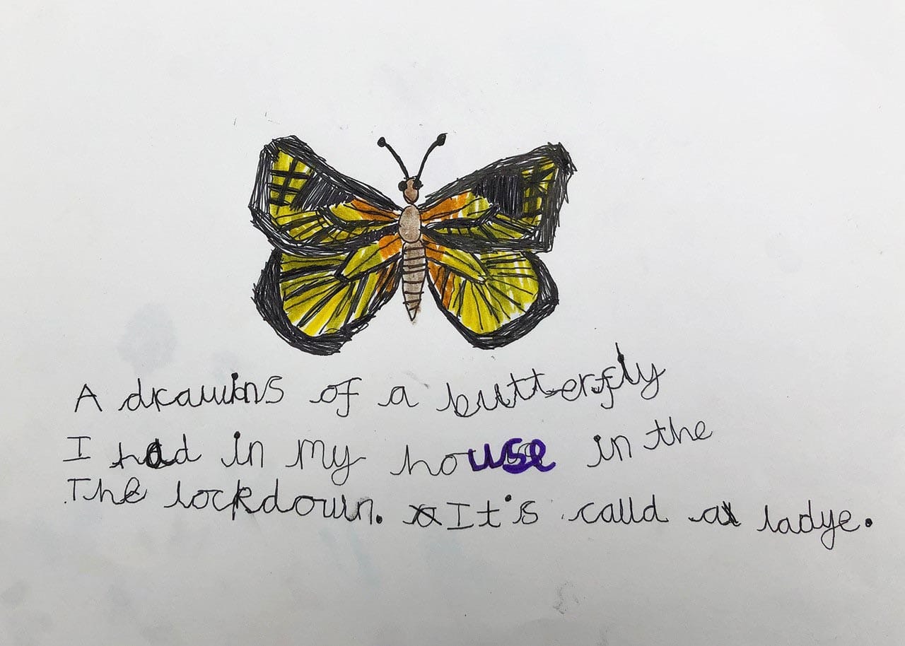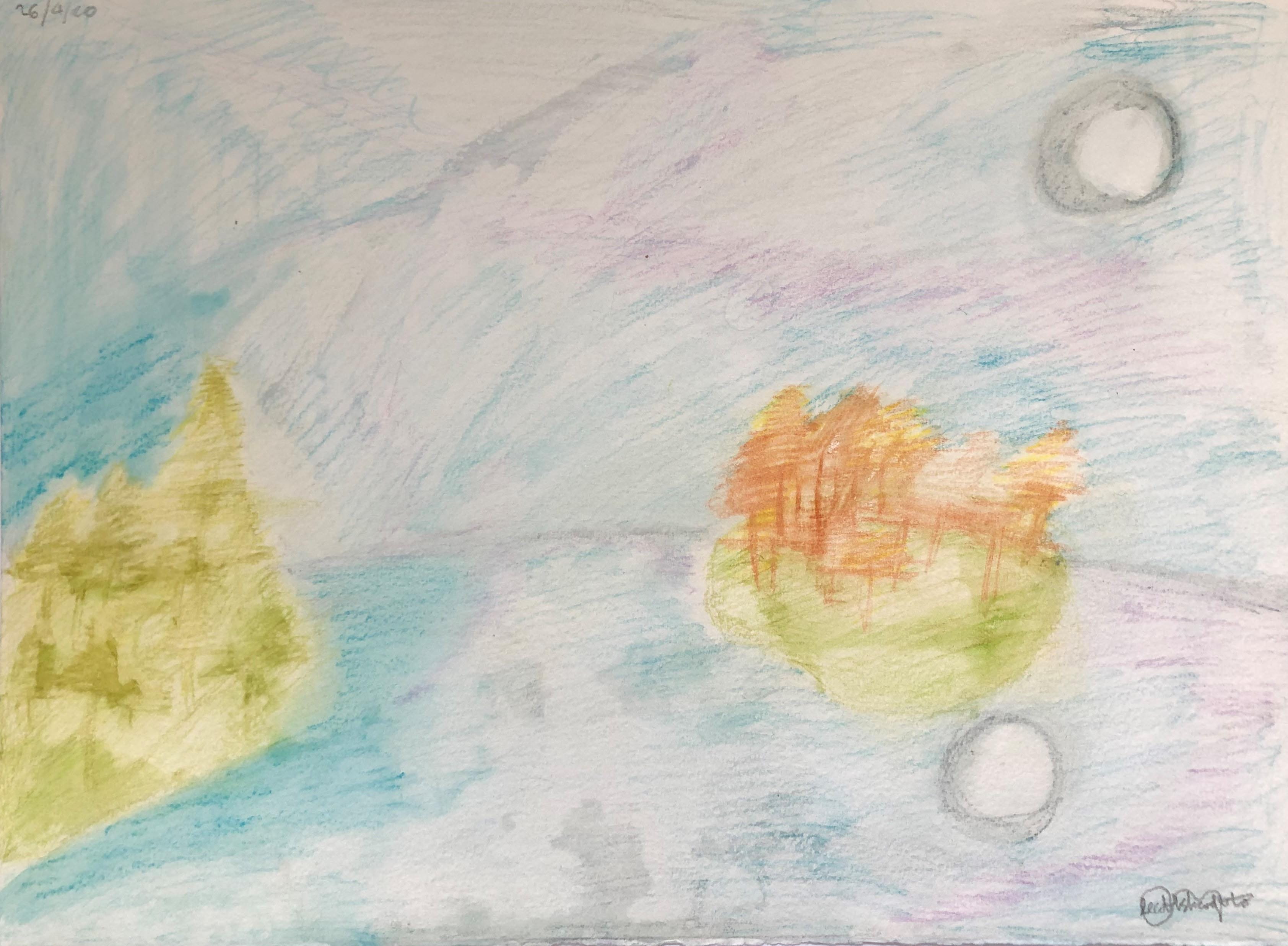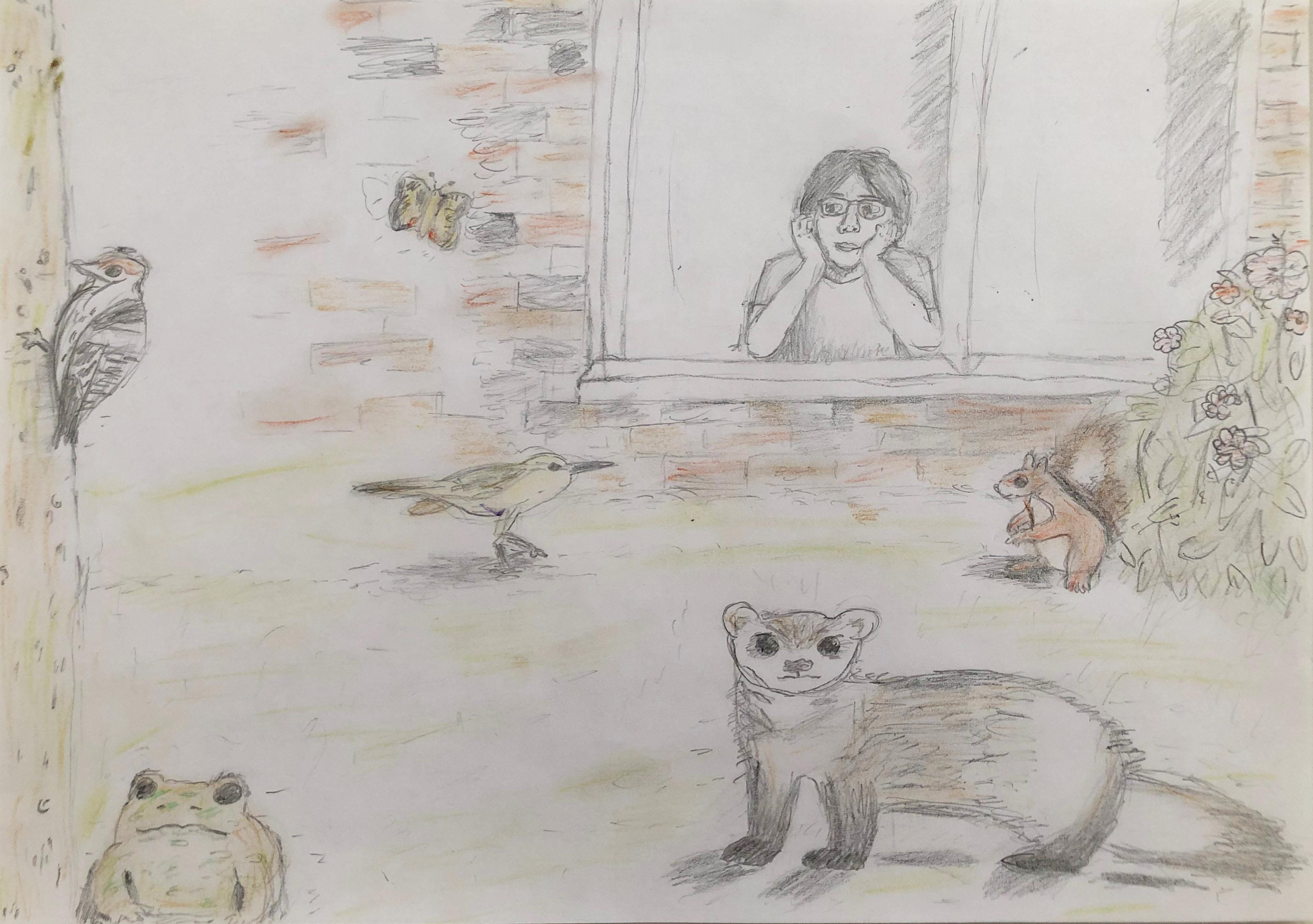 Brief: "A child's response to your time in lockdown. Schools have been closed and you've had time to contemplate and think. Perhaps it's a realistic view out of your bedroom window, or an imaginative view in your mind, or a dream of a future world. In your mind anything is possible!"