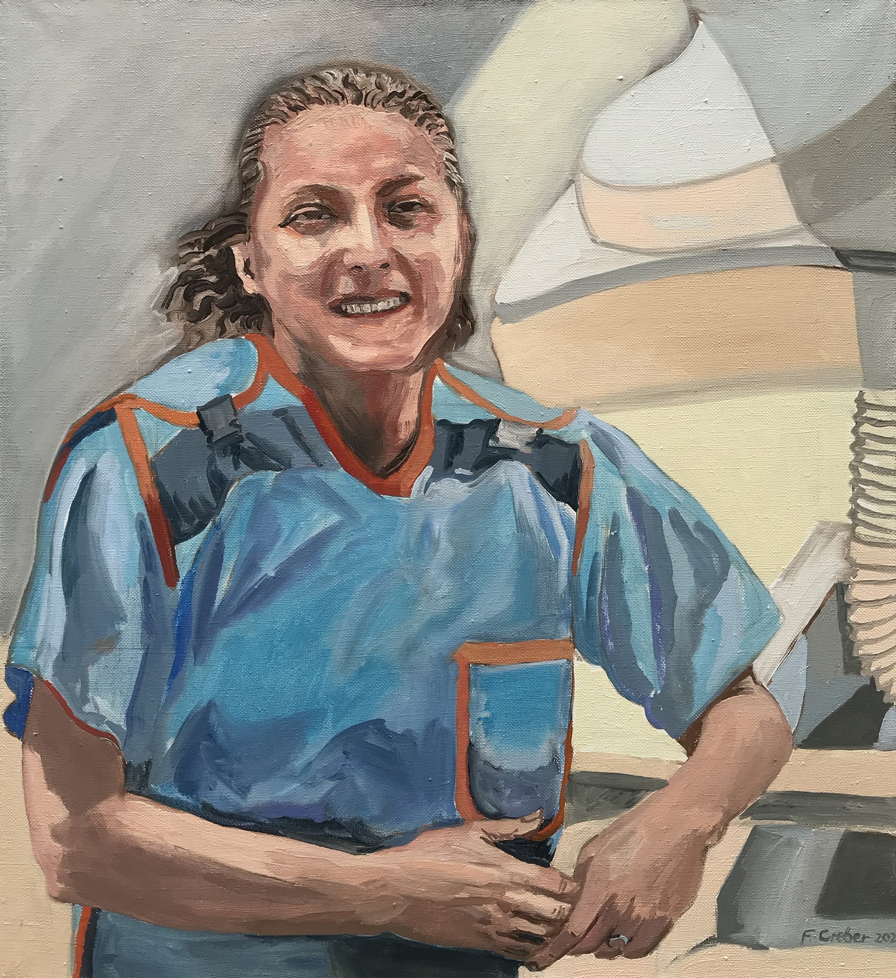 A number of artists based at Thames-Side Studios have taken part in the Portraits for NHS Heroes project, originally initiated by artist Thomas Croft, with their painting being gifted to the participant as part of a bigger thank you to NHS workers in the Covid-19 pandemic. You can view their works in the slideshow above. Participating artists: Frank Creber (Unit 8, Studio TB-258) Rachel Matton (Unit 5, Studio 5-338) Jane Molineaux Boon (Unit 5, Studio 5-336) Ray Richardson (Unit 8, Studio TB-121) Alastair Searles (Unit 5, Studio 5-240) Sophie Venturini Creber (Unit 5, Studio 5-315) About the Portraits for NHS Heroes Project: Portrait artist Thomas Croft, at a loss as to what to paint during lockdown, put out an offer on Instagram on 4 April, saying he would paint a free portrait for the first National Health Service (NHS) worker to reply: "I'm offering a free oil portrait to the first NHS frontline worker to DM me, I will work in lockdown from a photo you can provide me with. You get to keep the oil portrait and when the restrictions are lifted we can have an exhibition of all the portraits. Tag any artist who you think might want to participate and any NHS key workers you think deserve a portrait. #portraitsfornhsheroes However, Croft received so many requests that he eventually put 500 NHS workers in touch with professional artists, who volunteered to paint them (text courtesy Wikipedia, 10 July 2020).