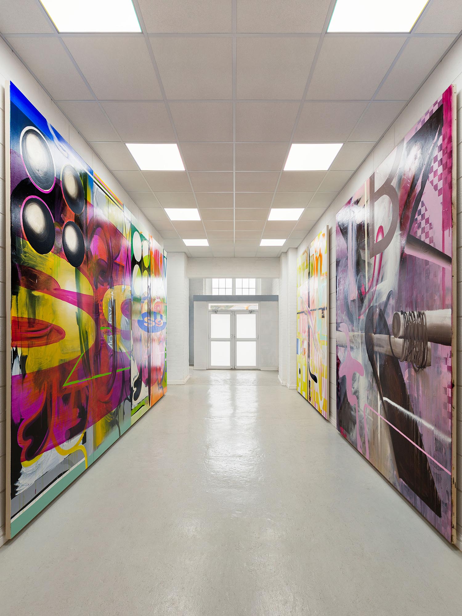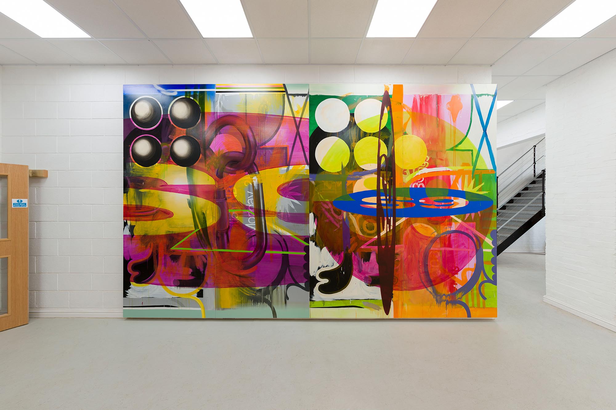 Rodion Ulrich Studies Exhibition Dates: 17 October - 22 November 2020 Following Goverment guidelines announced on 31 October 2020 this exhibition will be available for online viewing only. "The figurative or 'recognisable' elements in this series are partly based on the decade-old photographic documentation of Vladimir Umanetz’s and Marcin Lodyga’s studio work. In 2010, during their stay in Cairo, both artists were developing the idea of an obscure post-artistic phenomenon known as yellowism, which later triggered their gradual resignation from art. They've tested various ideas and as a result, produced numerous flat and three-dimensional sketches and notes. I’ve remixed chosen fragments of Umanetz’s and Lodyga’s research outcomes on canvas and therefore, describe these paintings as yellowism studies. It seems to me that there is an increasing tendency to call all art political, which I rather question. My intention was to capture that specific time period, when such questioning occurs. So it is also correct to refer to a sequence of those murals as a time-within-time works." — Rodion Ulrich, London, 15 September 2020 Rodion Ulrich is a painter based in Unit 7, Studio 7-124. He’s currently studying Fine Art at the UAL Chelsea College of Arts. Studies is Ulrich’s first public exhibition to date. For more follow instagram.com/hp_label Click here for Rodion Ulrich Studies A4 information sheet (pdf) For more information on works please contact the artist Rodion Ulrich via email umaniec@gmail.com Thames-Side Studios Viewing Room is located on the ground floor of Unit 8. Entrance to Unit 8 is via The Atrium. Turn left upon entering the main site, walk through The Atrium turning to the left, to find the exhibition located between studios TB-10 and TB-09. For more information email info@thames-sidestudios.co.uk Viewing Room, Unit 8 Thames-Side Studios Harrington Way, Warspite Road Royal Borough of Greenwich London SE18 5NR
