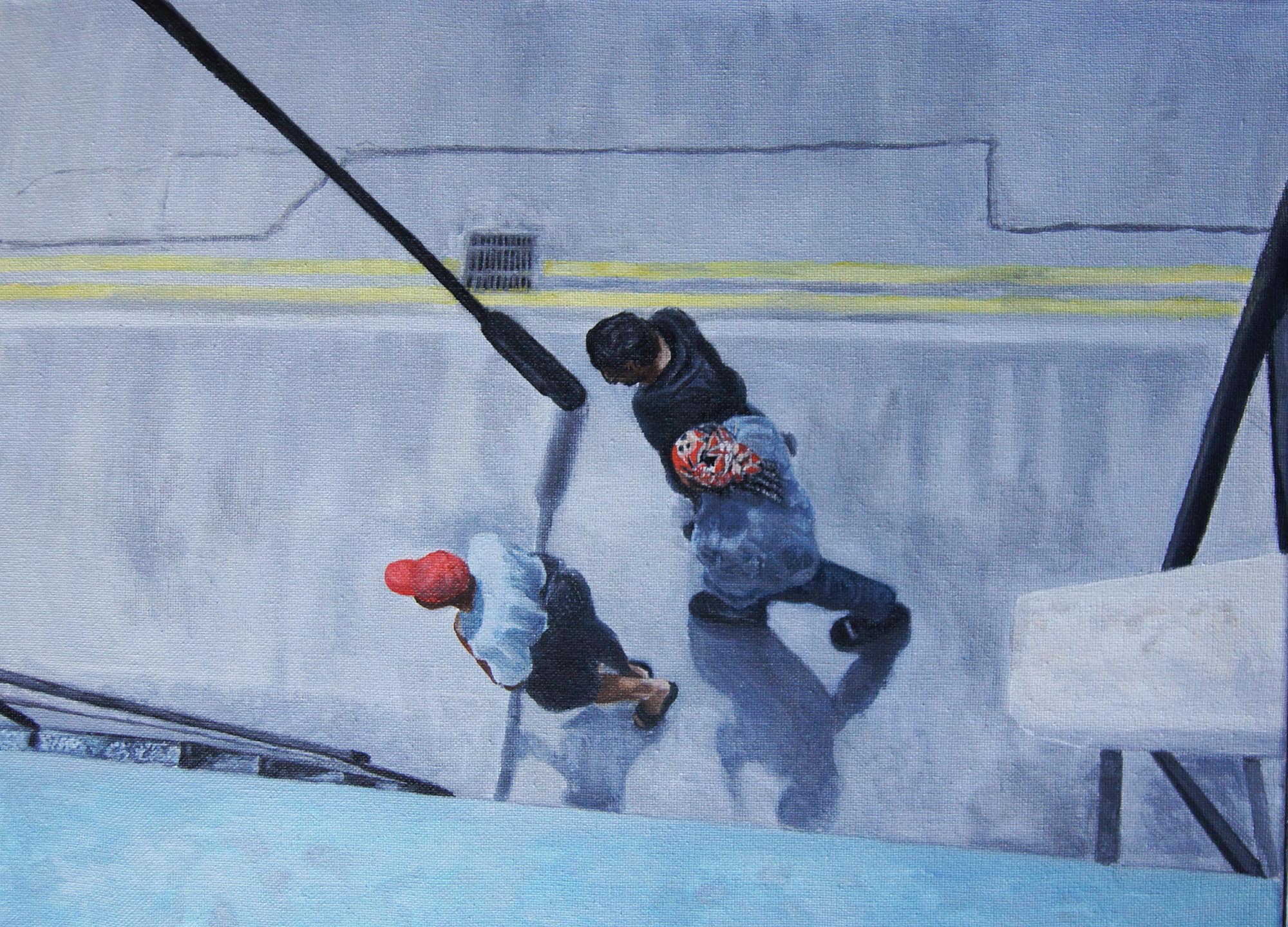 Exhibition dates: 4-26 September 2021 Preview: Friday 3 September 2021, 5-8pm Over the last two years I have been working on a series of paintings inspired by people in and around the Thames-side Studios site. They are captured moments showing how people interact with the spaces and each other throughout the day. They are taken from my daily route through the site to my studio and reflect what I see and my environment within the site. I work mainly in portraiture, investigating a continuing interpretation of modern portraiture exploring the mental journey and decisions associated with modern life. My practice explores the idea of realism within portraiture and to see if it’s possible to show something of who the subject of the painting believes they are as well as what they look like. I want to challenge perceptions as to what a portrait is and could be. - Jane Molineaux Boon (Unit 5, Studio 5-336). Follow Jane Molineaux Boon on Instagram @janembpaints Thames-Side Studios Lounge is located on the second floor of Unit 0 and open to all studio holders and by appointment. For general Thames-Side Studios enquiries please email info@thames-sidestudios.co.uk