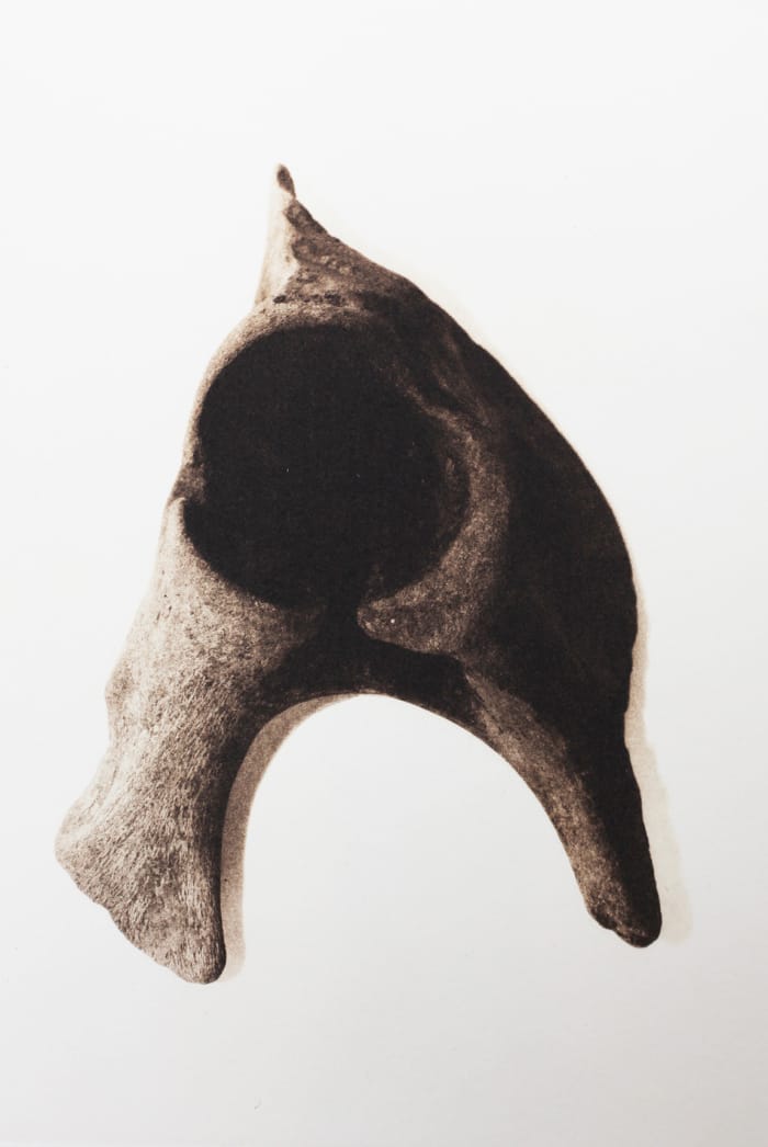 With her prints she combines different etching processes, layering aquatint and photo-etching within the same print. She converts photographs of her sculptural works into photo-etchings, incorporating and blending them within the aquatint drawings. Imagery and motifs within the prints are constantly repeated as she tries to play with the space created by the plate and subsequent emboss on the paper. The composition of the etching within the plate helps to hint at the scale and space in which the objects exist within.
