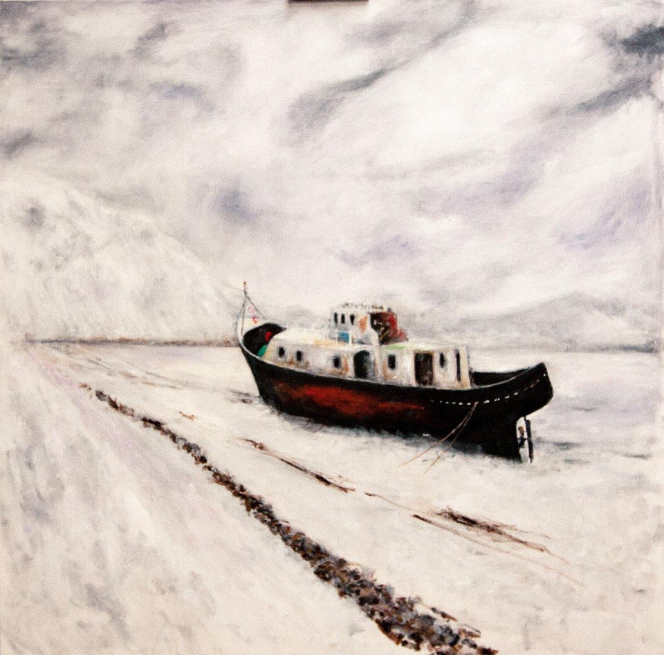 Images of old abandoned boats in melancholy setting, dancers in dynamic movement and mystical cityscapes are a selection of new paintings and drawings in this new exhibition by Bob Dawson (Unit 0, Studio 0-38).