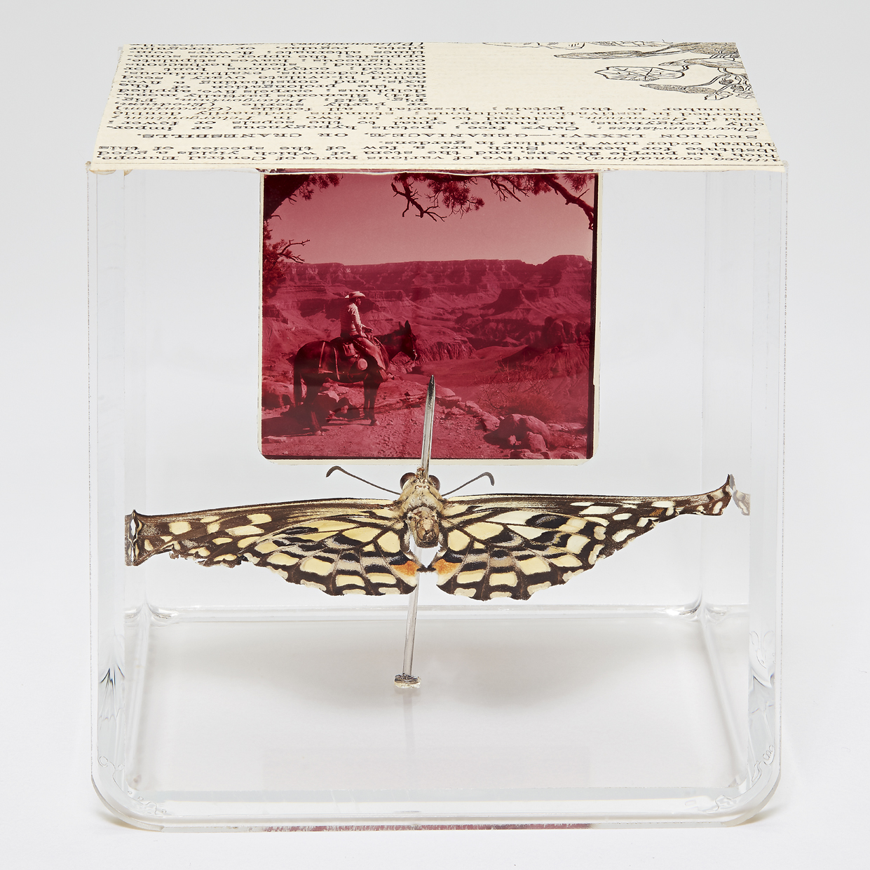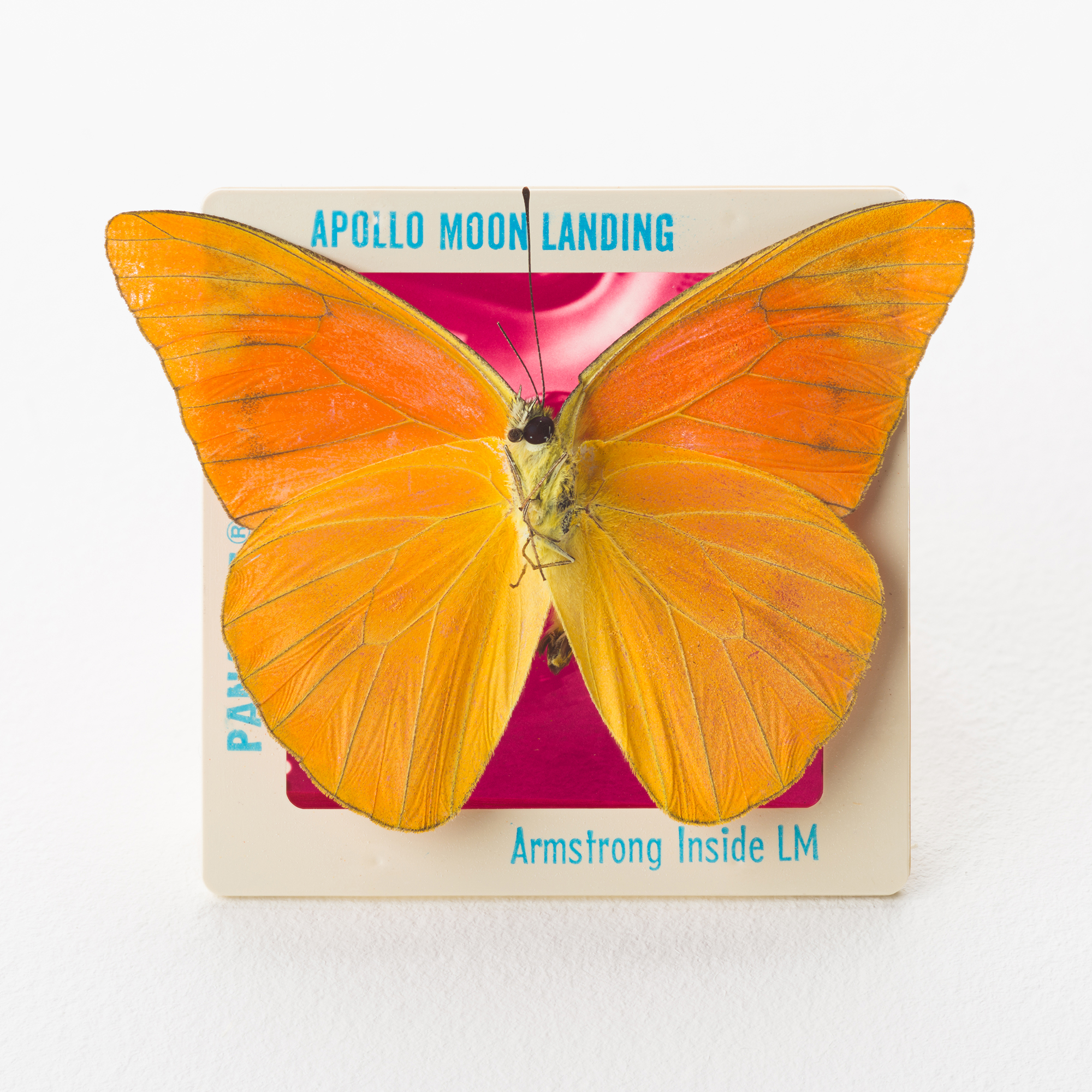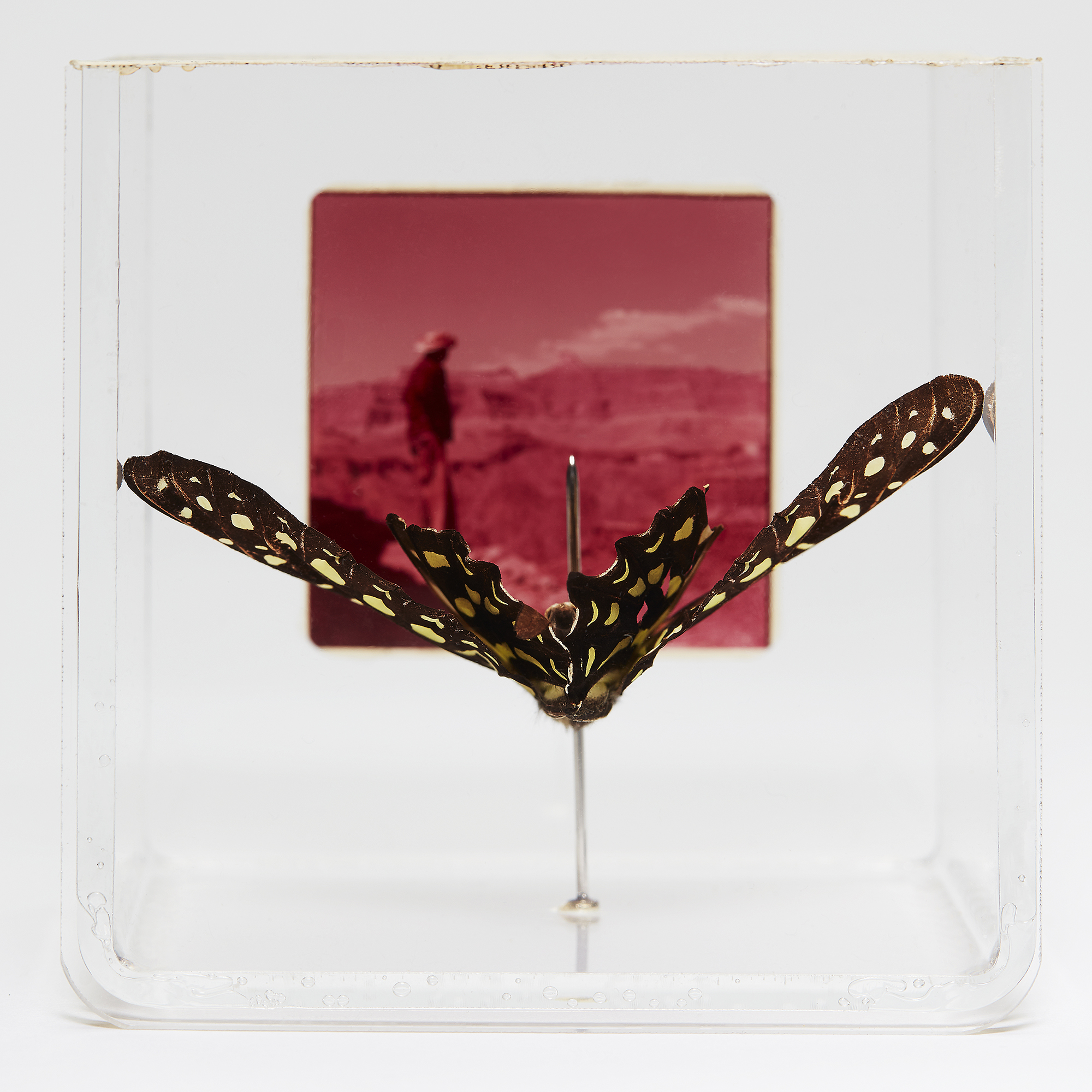The Official Memories series by Thames-Side Studios-based Tilla Crowne (Studio TB-253) explores commercially produced tourist slides, examining through them the messages and images the place wanted you to take back home with you. They serve as the records of the memories you were meant to have of your trip, but were they the ones you actually had? How much do they tell us about how a place sees itself, and the self it wishes to project onto others? Onto these slides are stuck butterflies – partly obscuring the official images, the butterfly wings becoming part of the projection, light streaming through the wings and imposing their pattern upon the image. They represent an inconvenient truth, an element of reality juxtaposed against the flatness of the slide. Concentrating on drawing and installation, Tilla's work explores themes of identity, memory, sexual violence, and the body. Largely autobiographical, she uses biological materials such as broken eggshells and living matter – plants, insects, fungus – as media, either drawing directly onto them or using them to transform objects and spaces. Follow Tilla on Instagram @tilla_the_artist and visit tilla.co.uk Thames-Side Studios Lounge is located on the second floor of Unit 0 and open to all studio holders and by appointment. To arrange a visit to see Official Memories contact Tilla here For general Thames-Side Studios enquiries please email info@thames-sidestudios.co.uk
