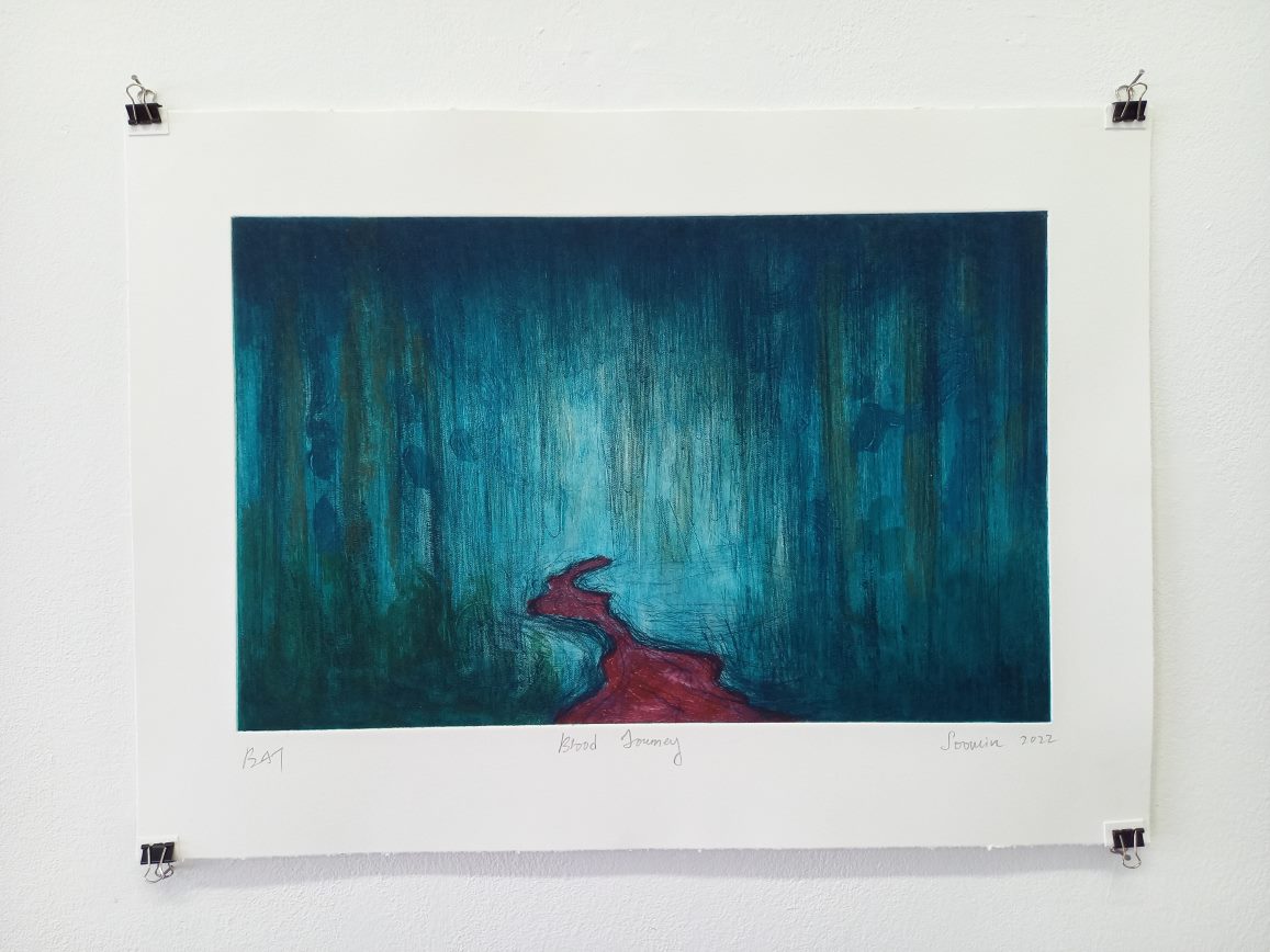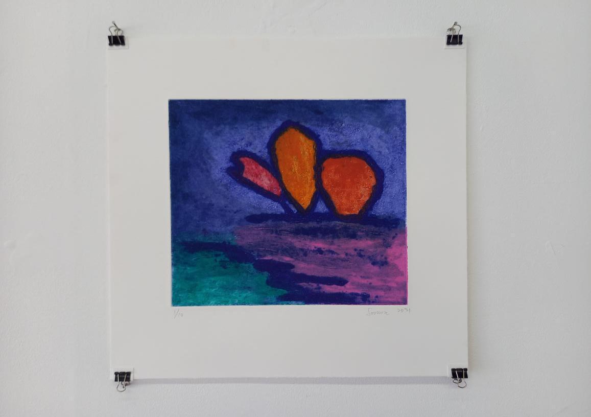 SooMin Leong and Rob White (Studio TW-129) present recent work in Thames-Side Studios Lounge. Both artists investigate landscape and their surroundings with perceptions based on memory and experience. Rob White focuses on presenting a snapshot of time of an imagined event whilst SooMin Leong takes the audience on a journey to explore the unknown. SooMin’s practice is inspired by a focus on the transition from one place to another, both through literal journeys and in terms of the journey of the printing process itself. Each piece is a story informed by the experience or impression of a place and the journey. Rob White’s work explores how colour and mood are interconnected. The work sits on the edge of landscape and abstract; a window to another world. The use of colour is sometimes apocalyptic, hot and fiery, and sometimes cool and calm, a satisfying place to inhabit. About the artists Born in Malaysia, SooMin Leong received her BA in Fine Art from Lasalle College of Arts in Singapore (2007). Later, she completed her MA in Multi-disciplinary Printmaking at University of West of England (2011). SooMin works as a freelance printmaker. Follow Soomin on Instagram @soominleong_art Rob White graduated from Buckinghamshire Chilterns University College with a BA in Graphics & Advertising (2003) and Camberwell College of Arts with a MA in Printmaking (2006). Follow Rob on Instagram @robwhiteprints Thames-Side Studios Lounge is located on the second floor of Unit 0 and open to all studio holders and by appointment. For general Thames-Side Studios enquiries please email info@thames-sidestudios.co.uk