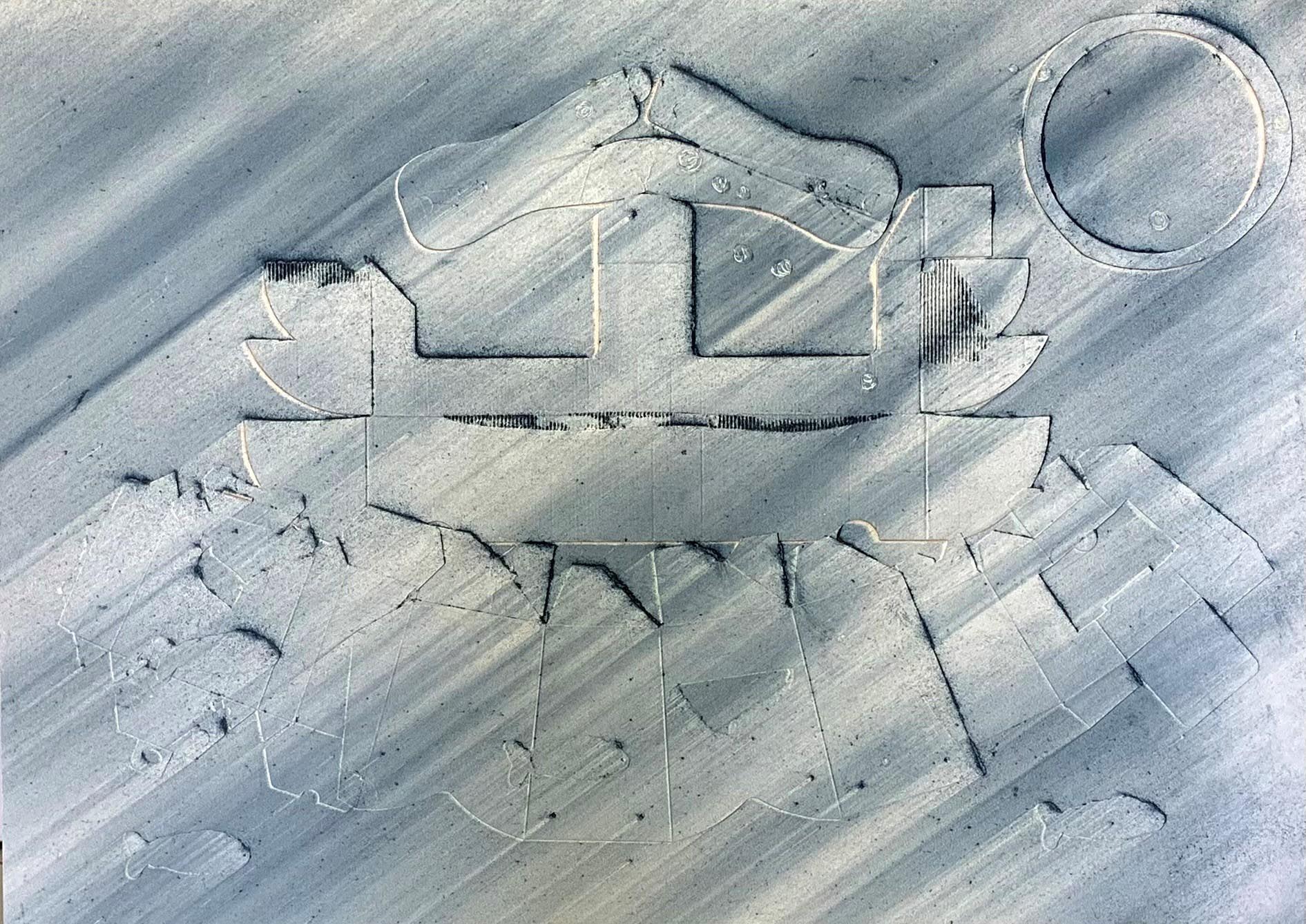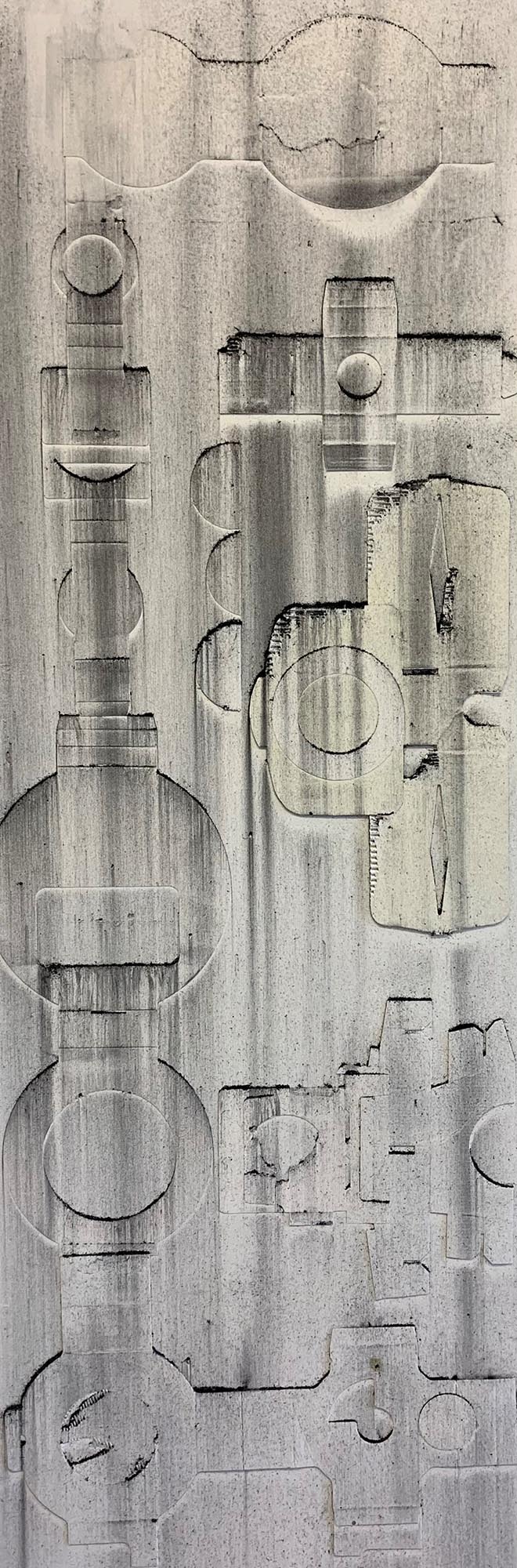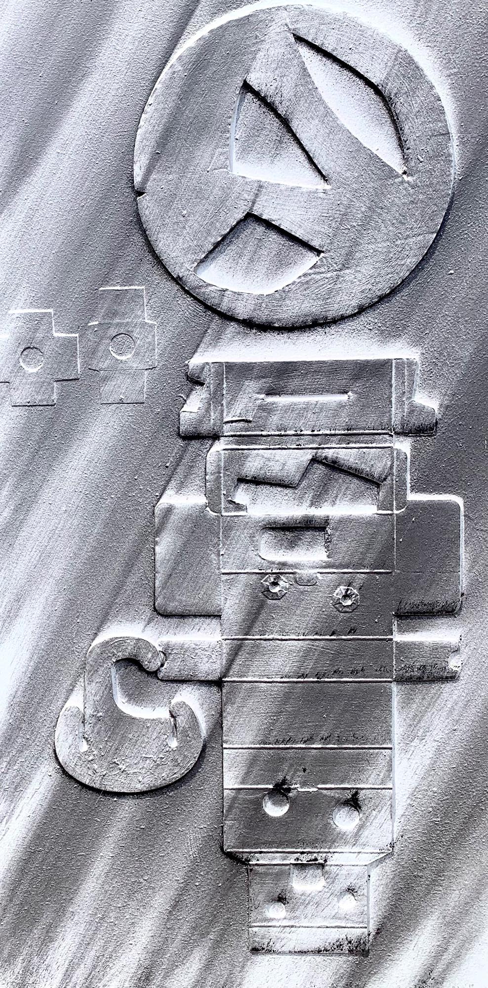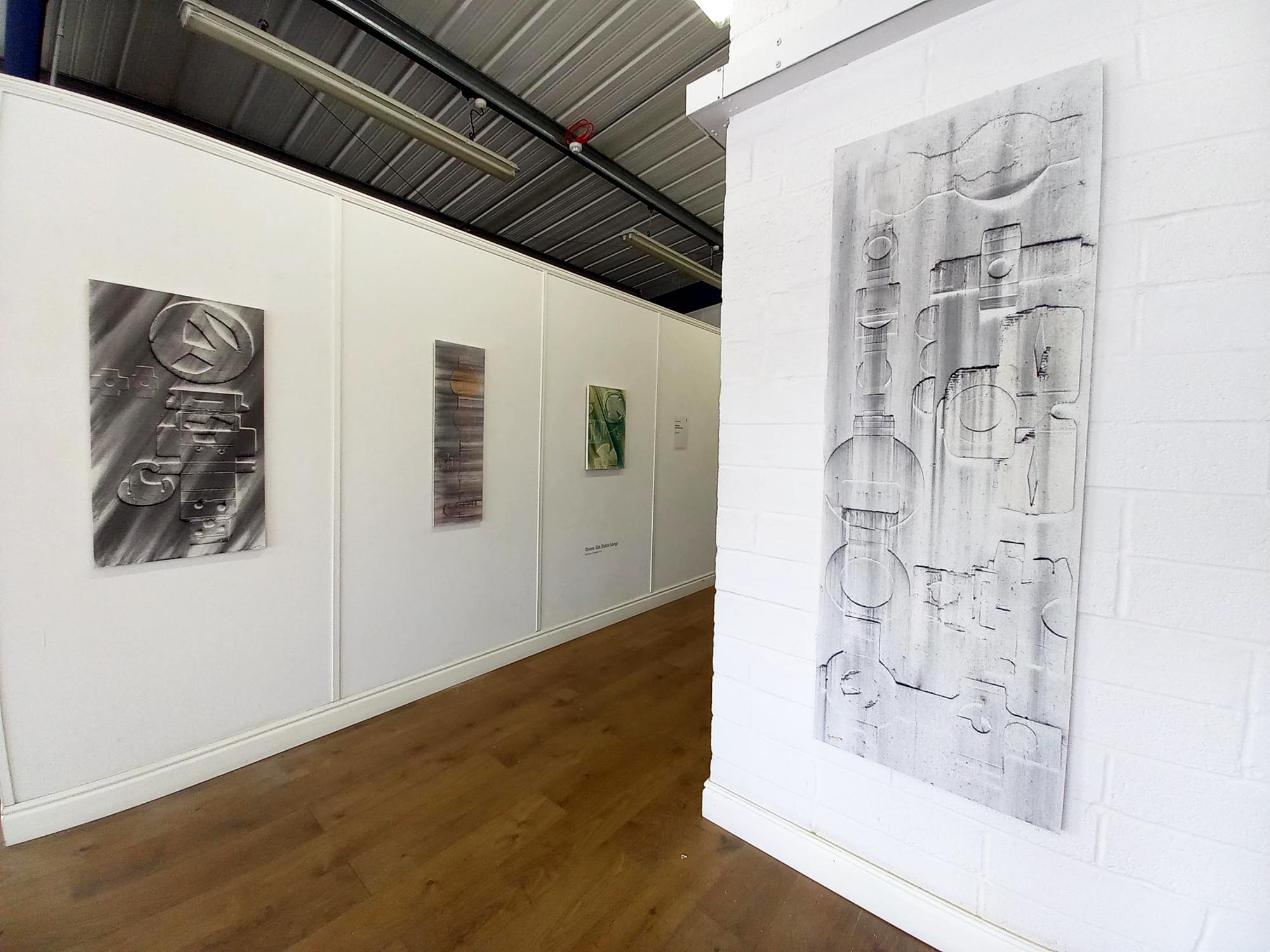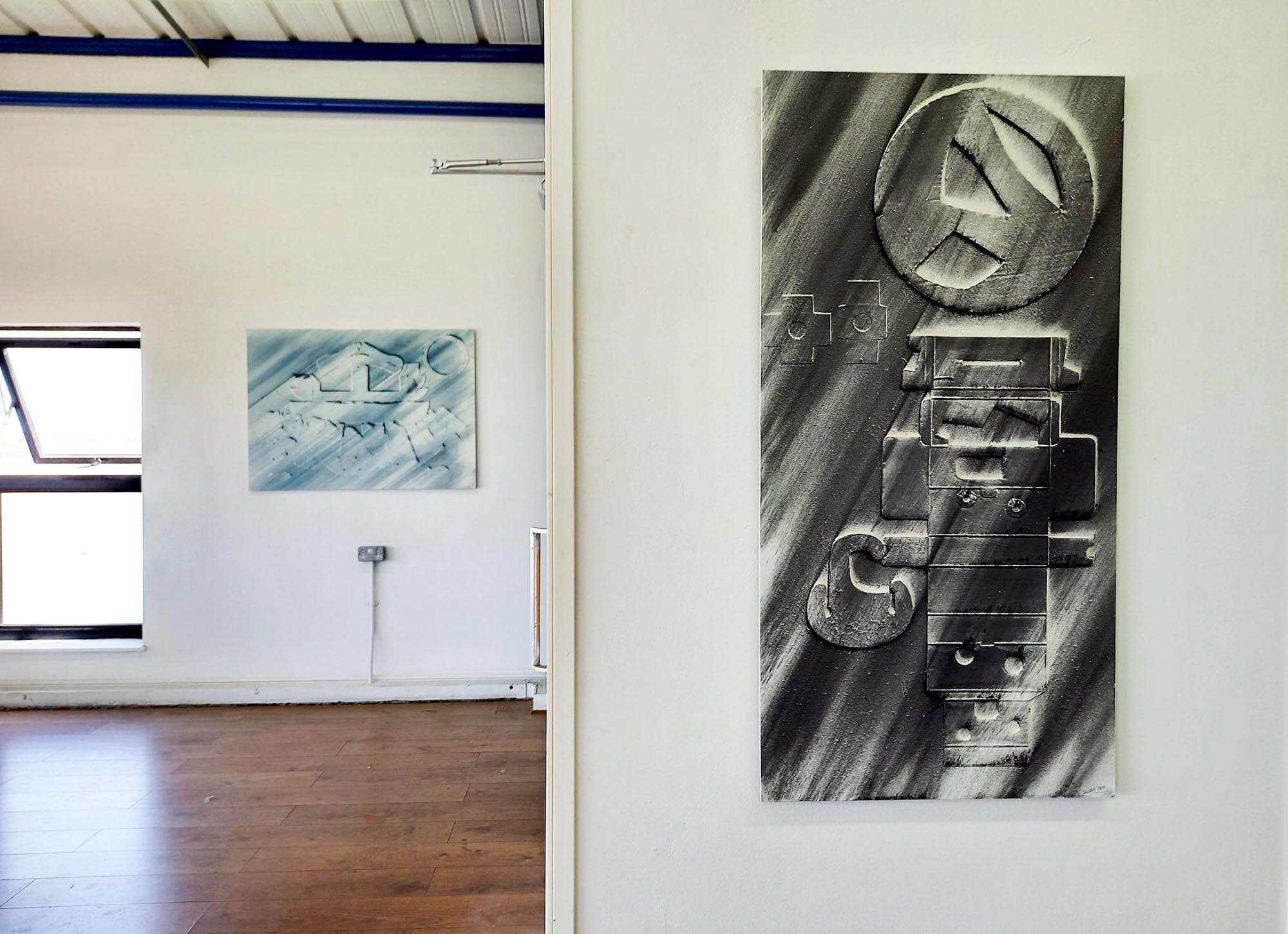 Iain Herdman presents Subconscious Collages, an exhibition of recent works. Iain Herdman (Studio 4-038) collects piles of used CAD cardboard shapes, or 'fences', and works intuitively on compositions straight from memories, however vague. The relief is focused and dramatised with showers of pigments. He draws with found shapes rather than with a pencil or brush. About the artist After graduating from Reading University with an upper second degree in Fine Art in 1980, lain decided to turn down offers of a place on both the Chelsea and St Martins School of Art post-graduate courses and to accept the offer of a studio and work as assistant to various established artists at the Greenwich Studios where he made sculpture for 17 years. From 1981 to 1985 he taught sculpture and life drawing at Canterbury College of Art, during which time his sculpture was exhibited at The ICA, Serpentine Gallery and The Air Gallery, London and The Cheltenham Sculpture Biennale. He also won an award from the Greater London Arts Association. From 1988 to 1991 he taught sculpture on the post graduate course at St. Martins School of Art, during which time his sculpture and drawings were exhibited at Jablonsky Gallery, London and CSK Gallery in Eton. In 1988 he was awarded the Greater London Arts Award for development of new work. From 1988 to1991 he taught on the degree courses at Cheltenham College of Art and St Albans School of Art and was invited to participate in the Triangle International Arts Workshop and exhibition in New York State, USA. From 1992 to 2007 he taught on the Foundation course, 2D Design Course and Life Drawing course at Croydon College. During this period his work was exhibited at The Whitechapel Gallery and The John Jones Gallery, London and The Ardingly Architectonic Sculpture Project, East Sussex. In recent years he has continued to make sculptures and large collages at Thame-Side Studios in Woolwich and participated in and curated several group exhibitions in London and Kent. Follow Iain on Instagram @iainherdman