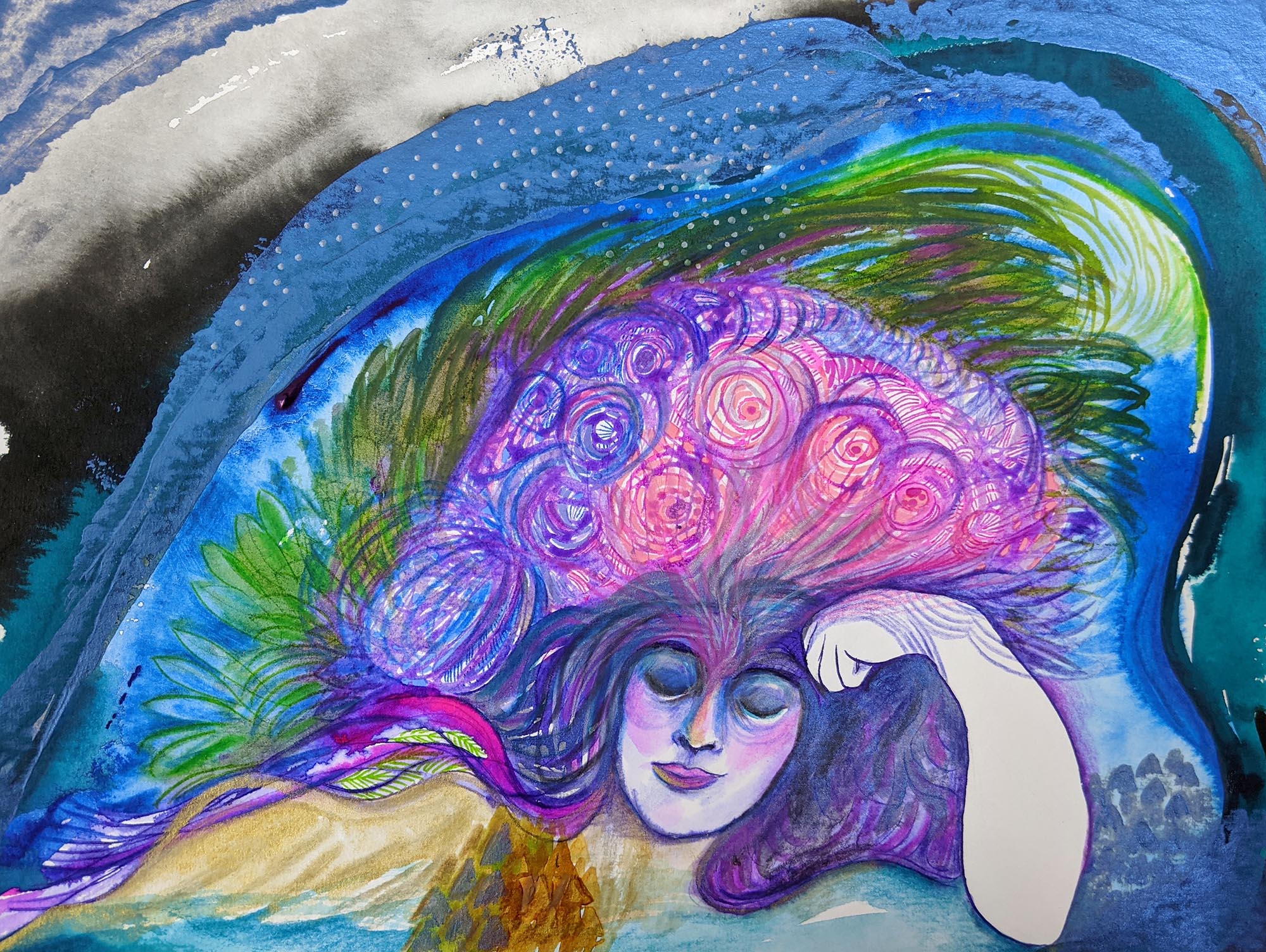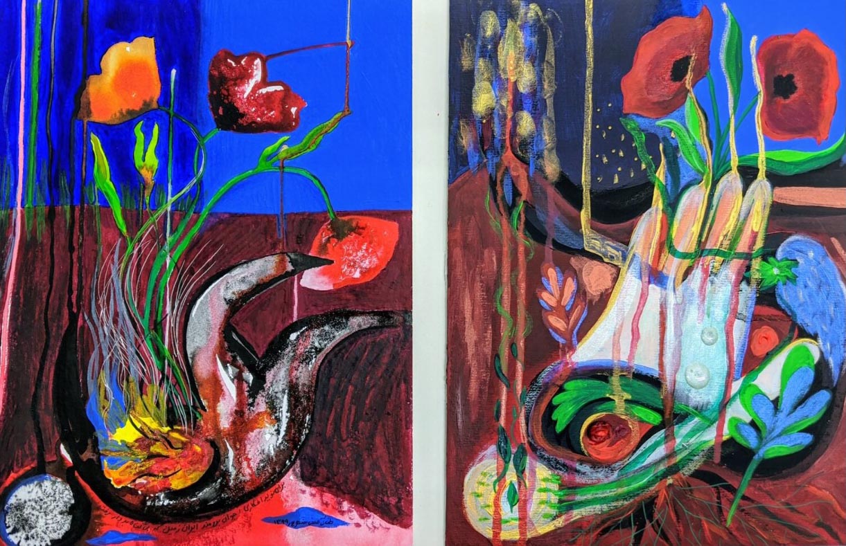 Thames-Side Studios-based Tanaz Assefi (Unit 7, Studio 7-211) was born and raised in Iran and has lived and worked in London since 2000. She studied graphic design in Tehran before moving to London to study a MA in illustration and animation. In her artwork Tanaz says "I have always been in search of relationships between the mysterious and symbolic worlds of ideas and allegories that happen within the realms of mythology, poetry and dreams". Most recently she has been working closely with MumsAid, an award-winning charity that support mothers and their families with their mental health and wellbeing. Tanaz also runs The Art of Self Expression Group, a place where mothers explore their thought processes and emotional life through mark making, drawing and use of colour, with the focus being on the artistic journey, not the end result. These sessions can help engage participants in more meaningful conversations as well as promoting mindfulness and a calming of the mind. Tanaz has run theses workshops for various organisations including Her Centre, Shamanic Space, Just Another Illness and IYDA Iranian Youth Development Association. The two paintings above are in memory and in grief for a 27 year old Iranian athlete, Navid Afkari, an Olympic champion executed in Iran for his beliefs. To learn more about Tanaz and her work visit tanazassefi.com Images: Tanaz Assefi, 2021, courtesy the artist Thames-Side Studios Lounge is located on the second floor of Unit 0 and open to all studio holders and by appointment. For general Thames-Side Studios enquiries please email info@thames-sidestudios.co.uk