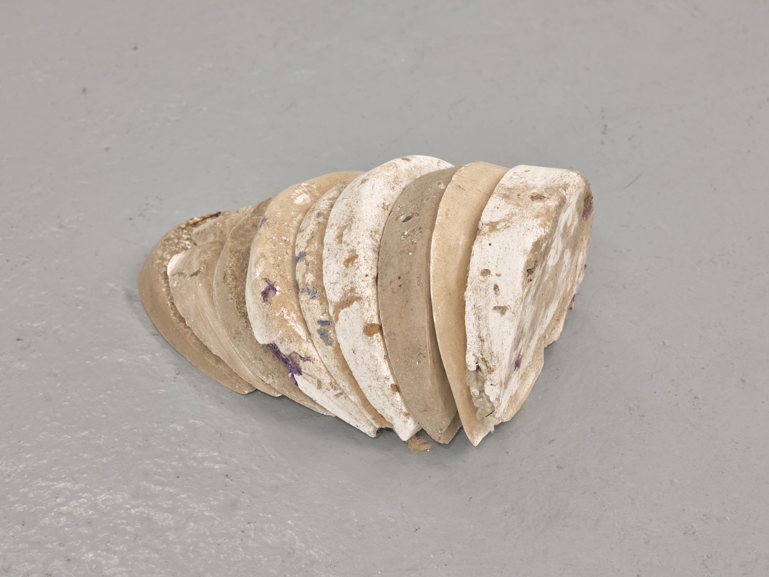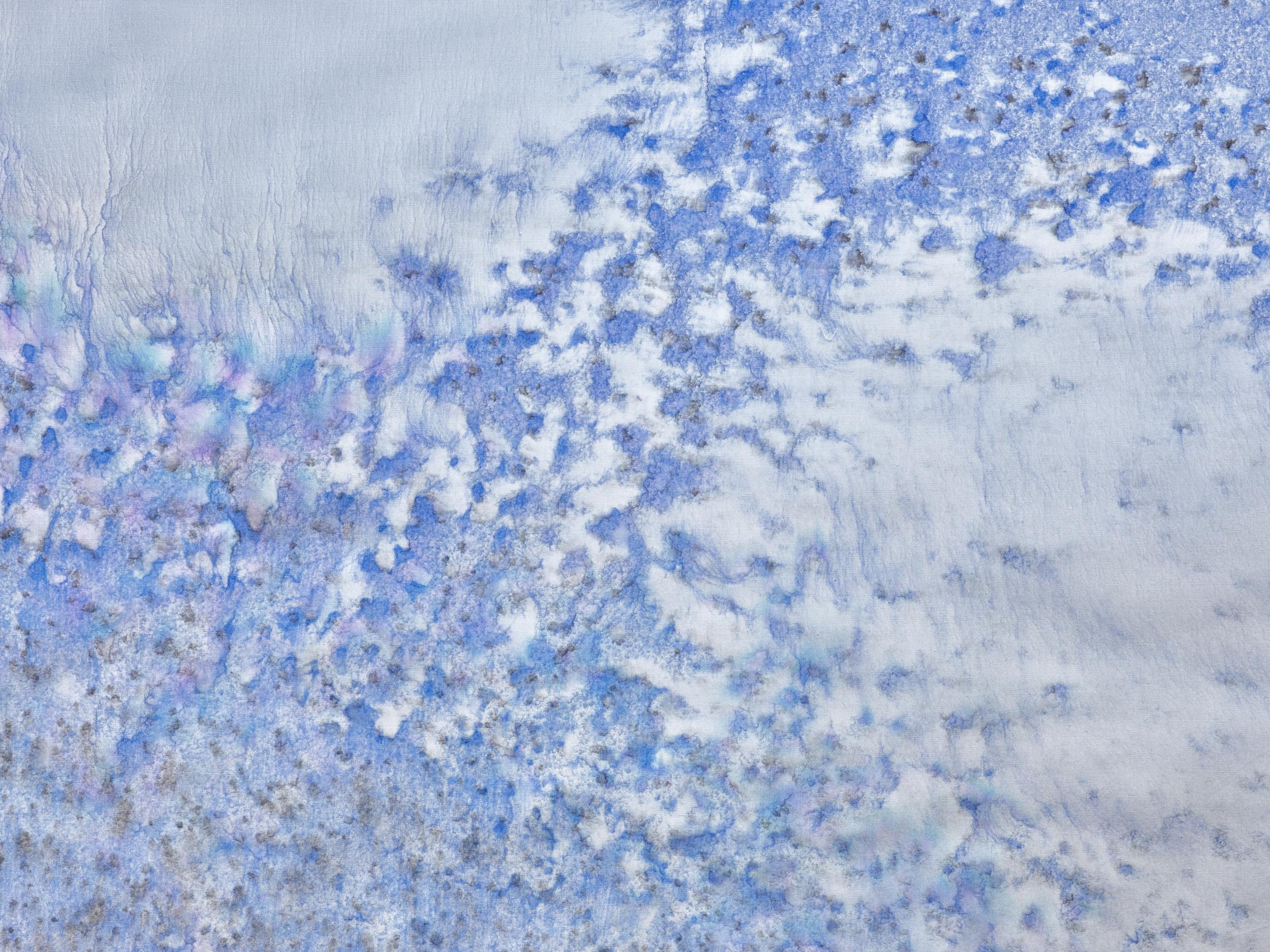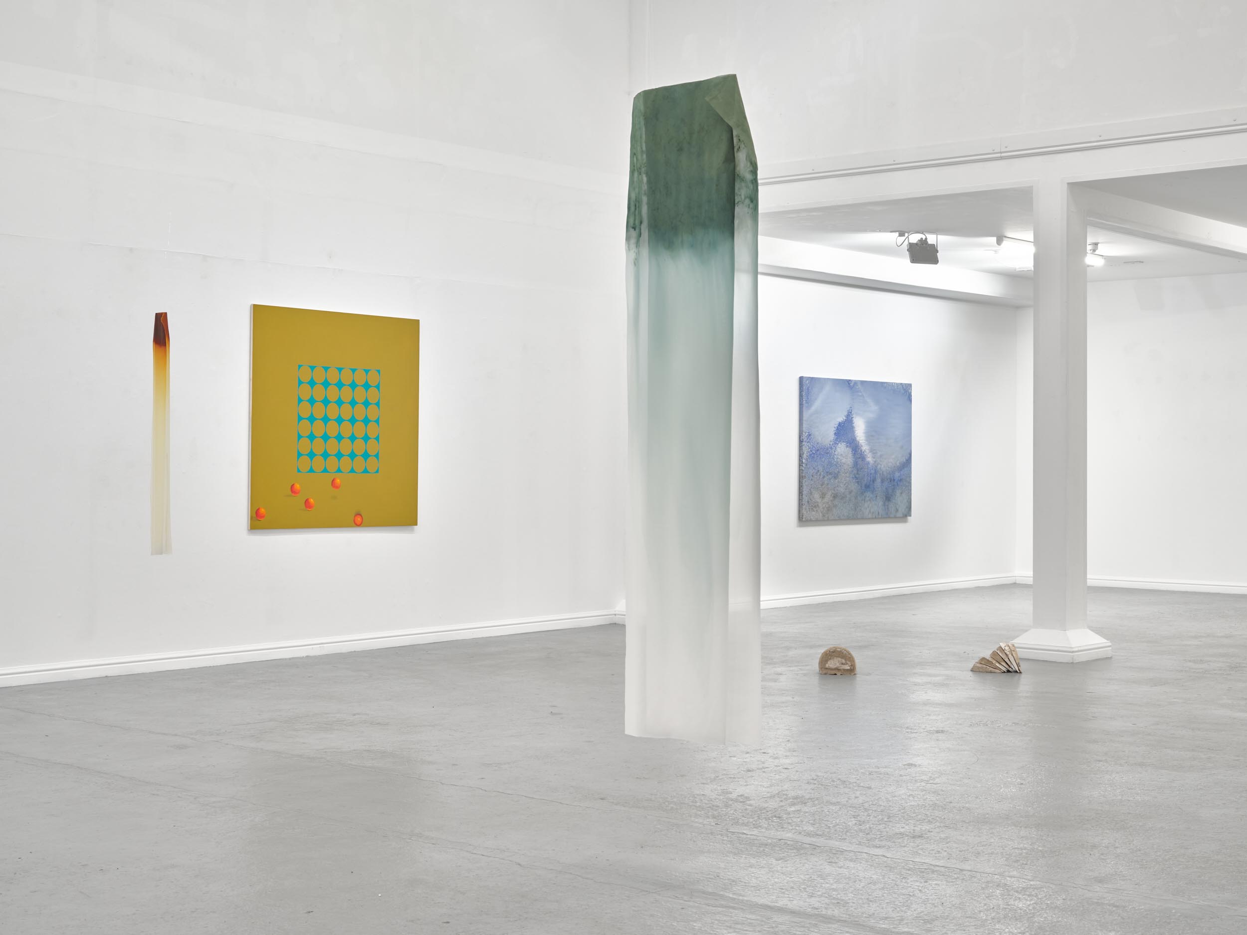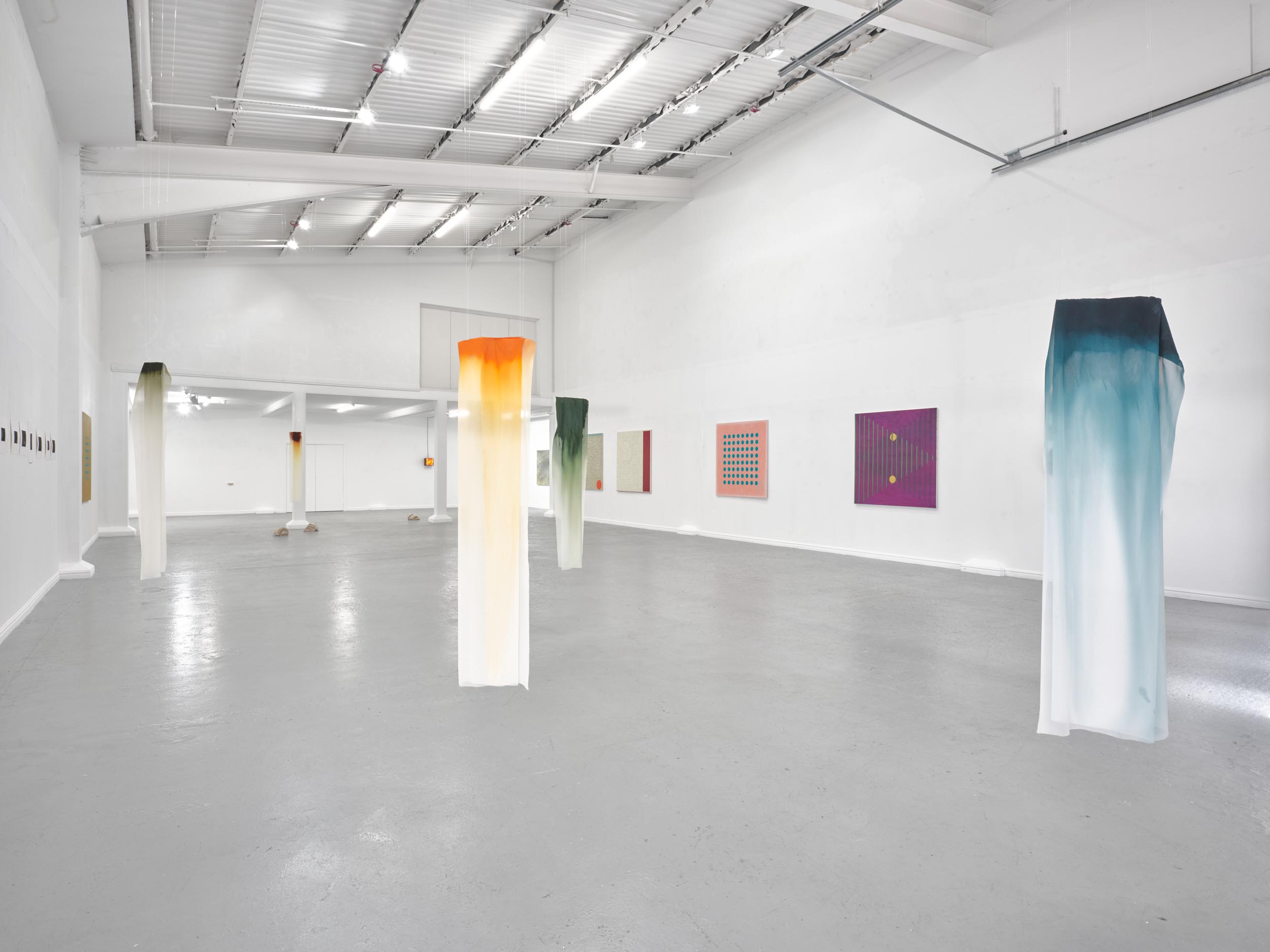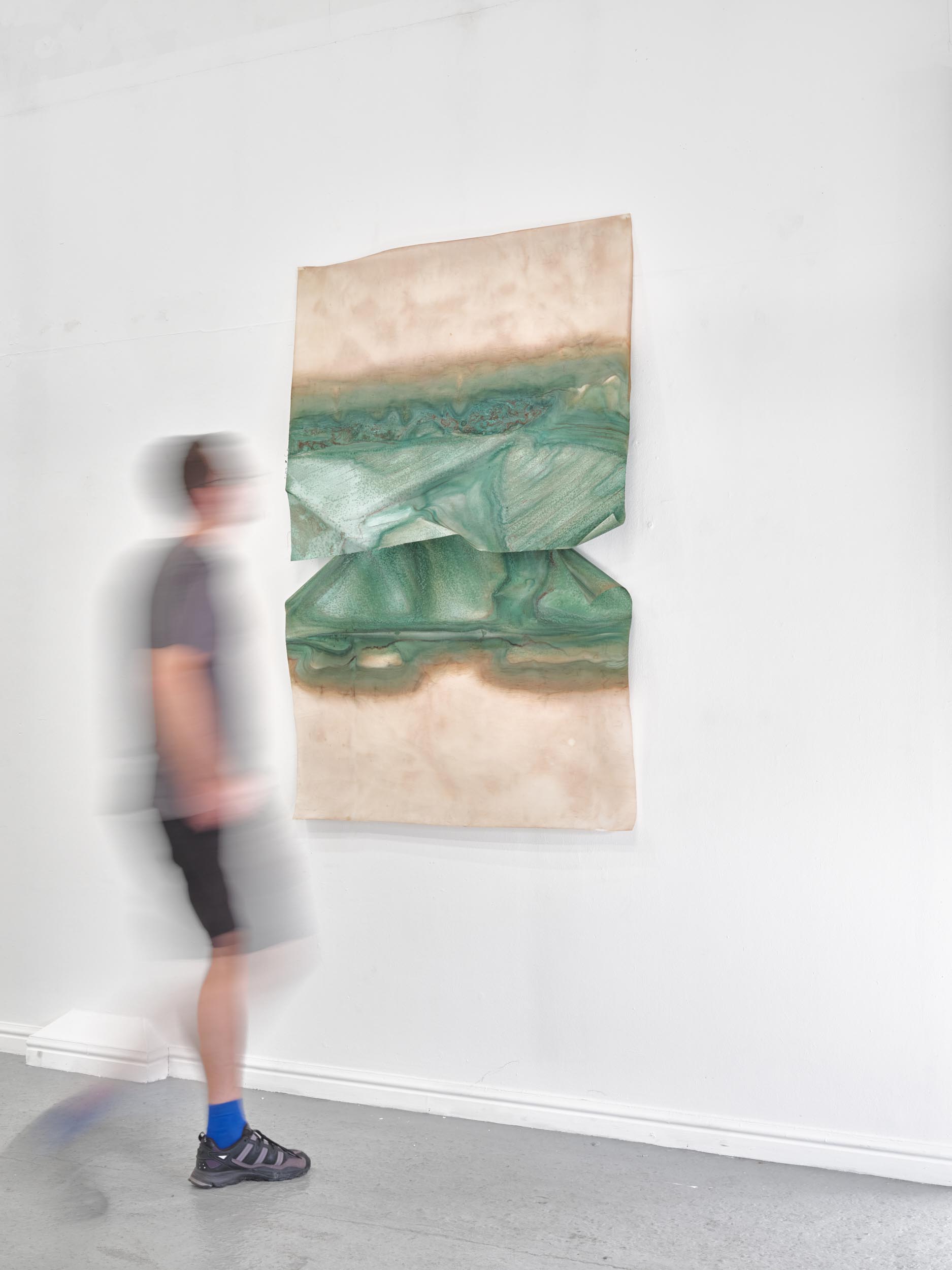 Far Away Inside brings together works by Rachael Causer, Julie Mayer, Sophia McNab, Yein Son and Sarah Tew. Material affinities and gut feeling have been a strong driving force in creating this exhibition. If things are stuck, they’re not stuck for long. Through ideas of skin, landscape, the domestic and ritual, these artists are harnessing their sensitivity to, and are highlighting, the crashing tectonics of attempts to understand the world around us. Both meaning and substance appear to crack, opening up alternative terrains which give a shifted view of what we take for granted in the act of seeing. Eyes becoming attuned to nuance, sensation, vibration listening to what the world has to say. If things are stuck, they’re not stuck for long. The exhibition encompasses painting, printmaking and sculpture. Within these disciplines boundaries are blurred and celebrated: we glimpse into Sophia McNab’s monoprints which feel momentary, yet also Yein Son’s works on fine fabric which give an arresting view of a vast terrain of other worldly skin; we see languages colliding within Julie Mayer’s paintings through pattern and lost sequences, but also the vicissitudes of time captured and held within the textile installations of Sarah Tew, with their residual nature suggesting a freshwater stream. Compare this to Racheal Causer’s sculptures which tell stories through an accumulation of time and debris (which has then been reformed) and we see the breadth of approaches taken here. Rachael Causer is an artist living and working in London. Her practice explores the ways human and non-human activities intertwine and is a subtle nod to the tenuous line we tread between co-existing and colliding fragile ecologies. Her sculptures stem from the familiar but bridge into the unfamiliar, witnessing breakage, scattering, dissolving and transformation over time. She graduated from Camberwell College of Art, with an MA in Fine Art in 2020, and was a member of the MASS Sculpture Programme in 2021-23. www.rachaelcauser.com Julie Mayer is an abstract painter whose practice is rooted in traditional materials, processes, and histories of modernist geometric painting. Interrupted patterns combine with colour combinations, which are drawn from observations of domestic, urban and coastal landscapes and the traditions of colour theory (such as the work of Josef Albers and Sanzo Wada). The combinations are then translated into a limited palette and complex geometry which references a ‘site’ of a lived experience within the painting. Julie now lives and works in Preston and completed an MA in Fine Art at University of Central Lancashire in 2019. www.juliemayer.org Sophia McNab is an artist based in Hastings, East Sussex, with an MA in Fine Art from City & Guilds of London Art School. Sophia's work spans printmaking, collage and stitching to explore memory, agency and our relationship to landscape. She draws on a family archive of photographs and postcards, as well as natural and found materials. Lost and remembered landscapes are evoked through thoughtful material exploration. Exhibitions include North Coast Asylum, Newquay; Warbling Collective, London; Phoenix Art Space, Brighton; Blue Shop Galleries and Woolwich Contemporary Print Fair, London. www.sophiamcnab.com Central to Yein Son's work is the physical analogy between the surface of a painting and bodily skin, its relevant metaphors, and interpretations. In addition to the painting's materiality and 'skin-like' tactility, she has considered the symbolic value of 'skin' as a medium and painting method. Using psychoanalyst Didier Anzieu's concept of the 'skin-ego', she has investigated the metaphor of skin as a thin interface between inner and outer. She has extrapolated this to develop a painting practice with a specific haptic visual vocabulary based on layering. Yein now lives and works in Seoul after completing her PhD at the Slade School of Fine Art, UCL, in 2022. www.ucl.ac.uk/slade/research/mphil-phd/yein-son Sarah Tew was brought up in the Cumbrian Lake District, North West England. She now lives and works in London, graduating from Slade School of Fine Art, MFA Fine Art in 2019. Her practice incorporates painting, installation, and site-responsive work. The physical interactions of materials and time play a central role in her making, exploring their inheritance of cultural and historical contexts in relation to landscape painting. Recent works explore the potential of watercolour in largescale silk painting. Recent awards include the Boise Travel Scholarship 2019 which funded a residency at Arts Letters & Numbers in upstate New York 2020, with explorations into Thomas Cole’s landscapes of the Catskills and The Hudson River School. www.sarahtew.co.uk Thames-Side Studios Gallery Thames-Side Studios Harrington Way, Warspite Road Royal Borough of Greenwich London SE18 5NR. Thames-Side Studios Gallery open Thursday-Sunday 12-5pm during exhibitions and by appointment. For general Thames-Side Studios Gallery enquiries please email info@thames-sidestudios.co.uk