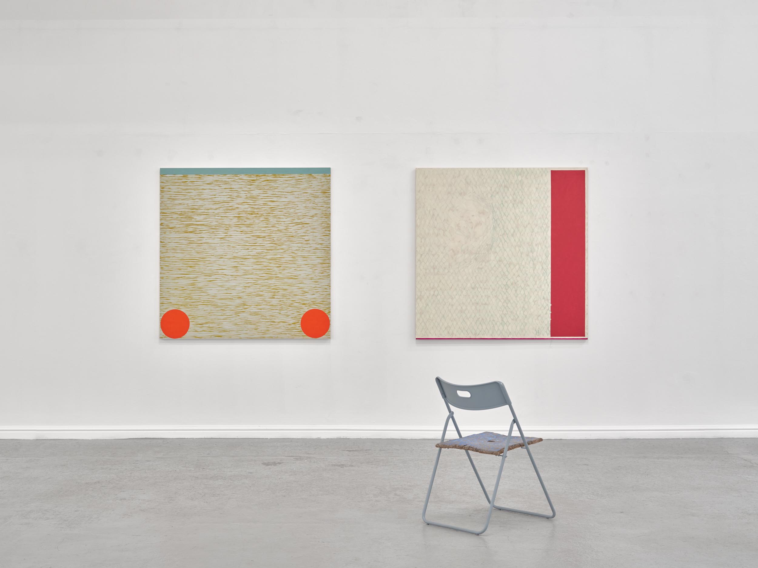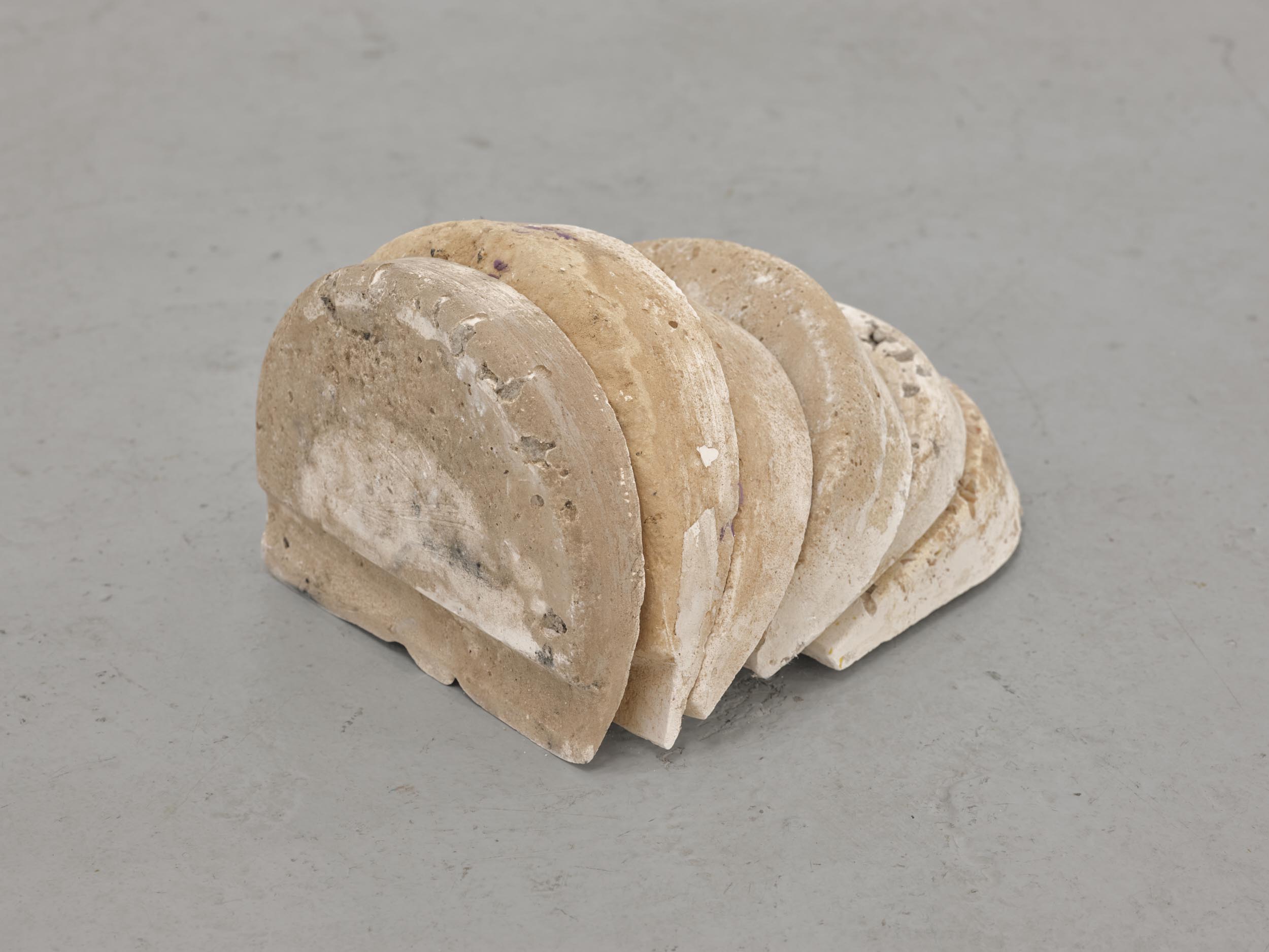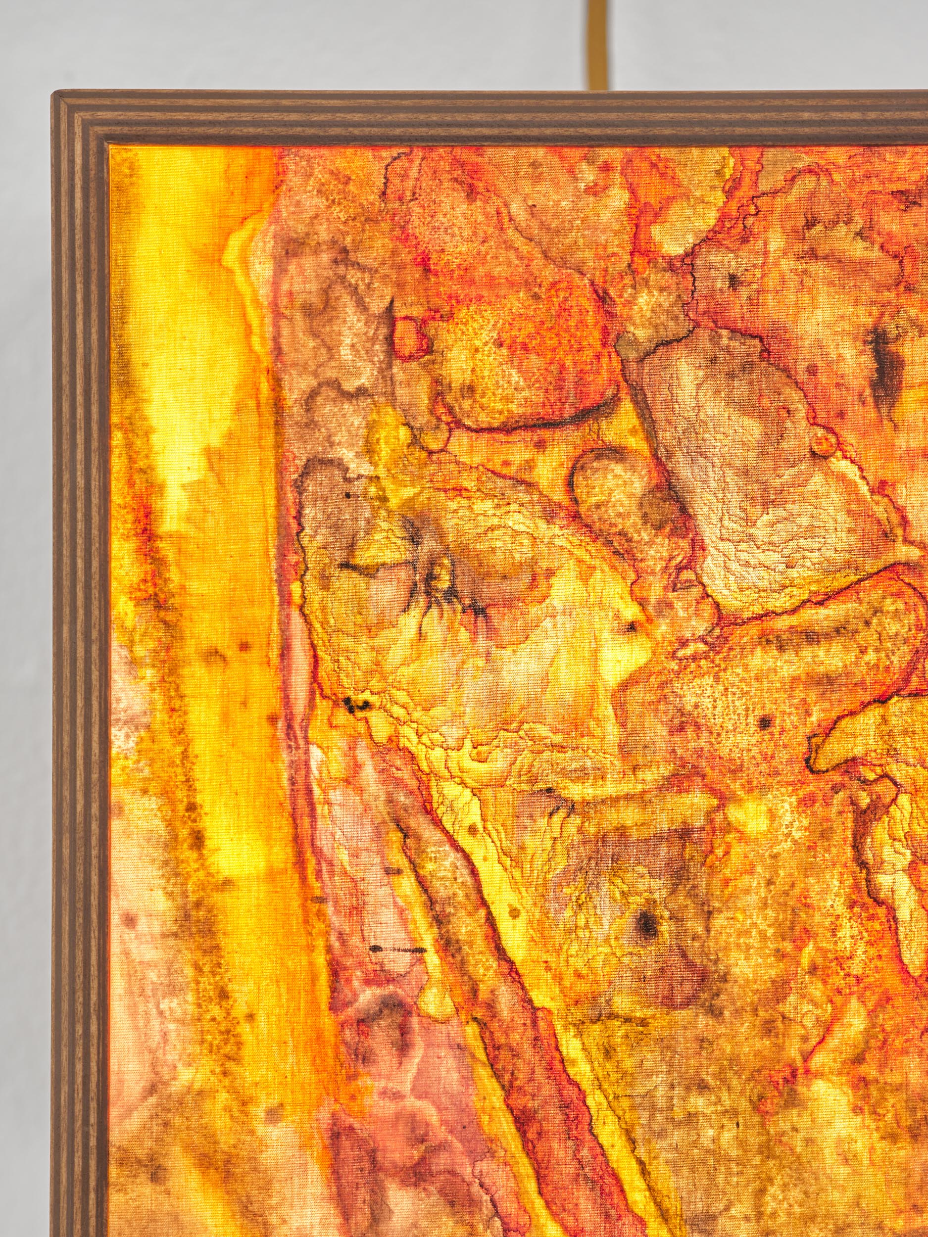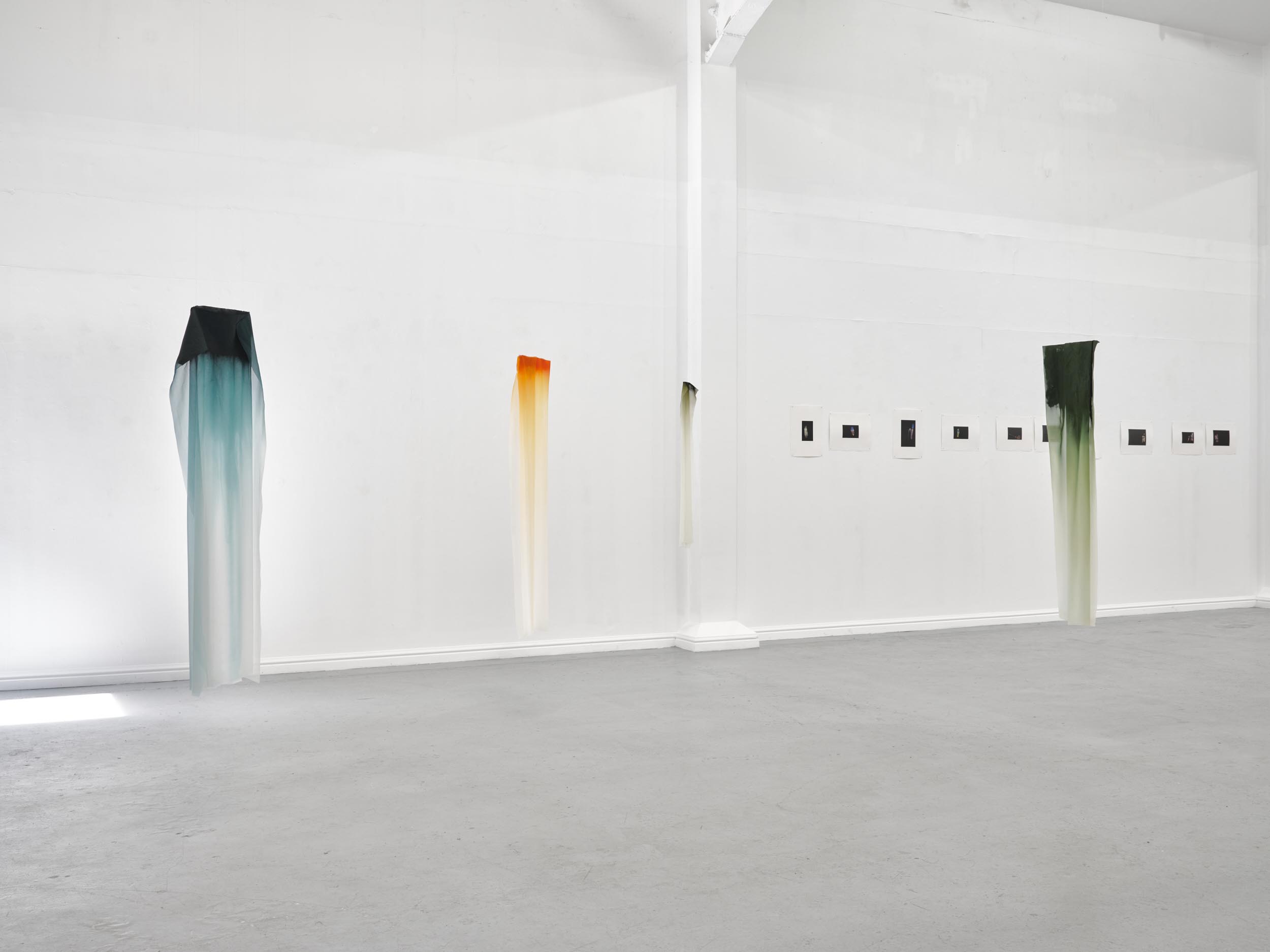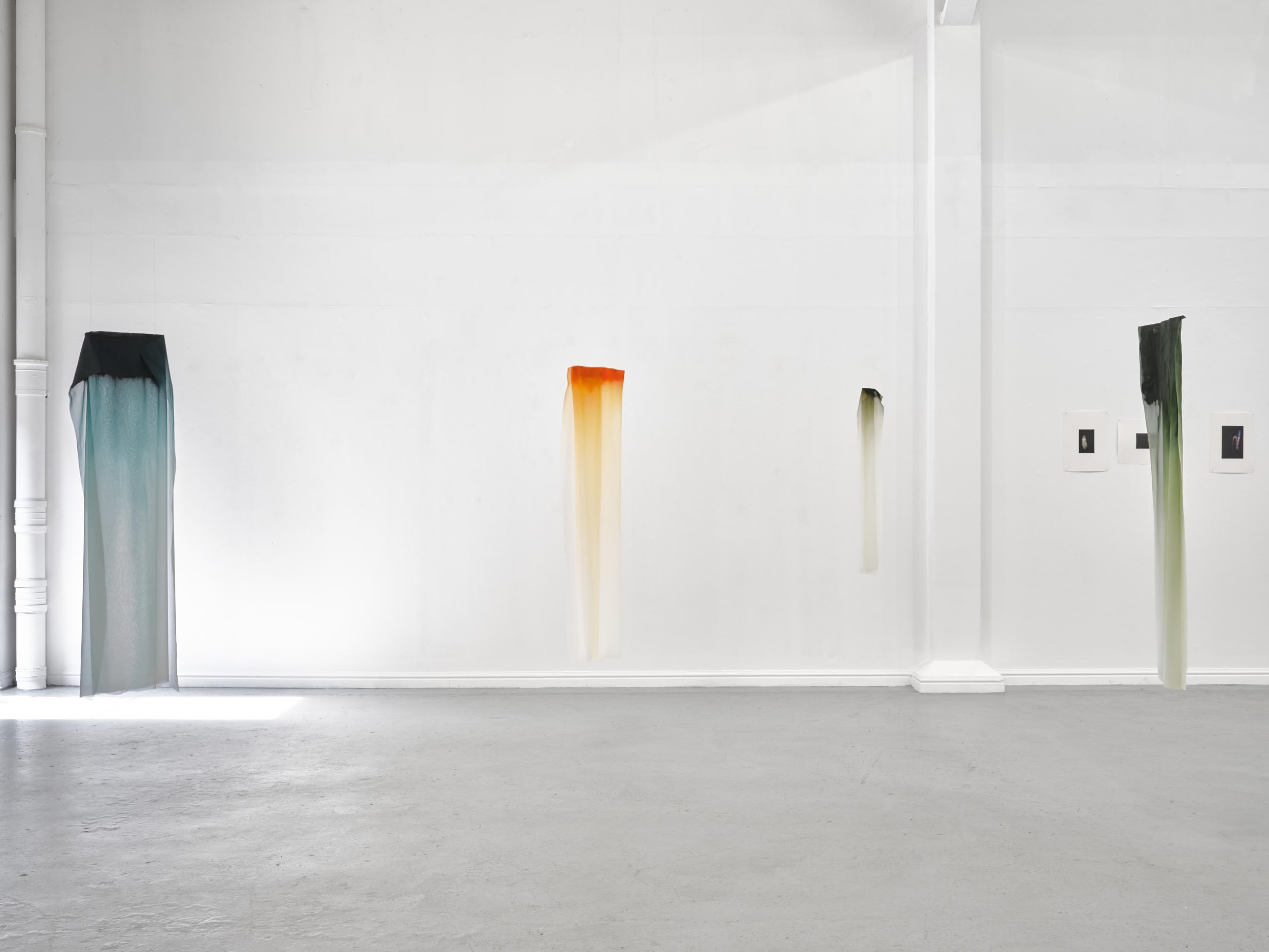 Far Away Inside brings together works by Rachael Causer, Julie Mayer, Sophia McNab, Yein Son and Sarah Tew. Material affinities and gut feeling have been a strong driving force in creating this exhibition. If things are stuck, they’re not stuck for long. Through ideas of skin, landscape, the domestic and ritual, these artists are harnessing their sensitivity to, and are highlighting, the crashing tectonics of attempts to understand the world around us. Both meaning and substance appear to crack, opening up alternative terrains which give a shifted view of what we take for granted in the act of seeing. Eyes becoming attuned to nuance, sensation, vibration listening to what the world has to say. If things are stuck, they’re not stuck for long. The exhibition encompasses painting, printmaking and sculpture. Within these disciplines boundaries are blurred and celebrated: we glimpse into Sophia McNab’s monoprints which feel momentary, yet also Yein Son’s works on fine fabric which give an arresting view of a vast terrain of other worldly skin; we see languages colliding within Julie Mayer’s paintings through pattern and lost sequences, but also the vicissitudes of time captured and held within the textile installations of Sarah Tew, with their residual nature suggesting a freshwater stream. Compare this to Racheal Causer’s sculptures which tell stories through an accumulation of time and debris (which has then been reformed) and we see the breadth of approaches taken here. Rachael Causer is an artist living and working in London. Her practice explores the ways human and non-human activities intertwine and is a subtle nod to the tenuous line we tread between co-existing and colliding fragile ecologies. Her sculptures stem from the familiar but bridge into the unfamiliar, witnessing breakage, scattering, dissolving and transformation over time. She graduated from Camberwell College of Art, with an MA in Fine Art in 2020, and was a member of the MASS Sculpture Programme in 2021-23. www.rachaelcauser.com Julie Mayer is an abstract painter whose practice is rooted in traditional materials, processes, and histories of modernist geometric painting. Interrupted patterns combine with colour combinations, which are drawn from observations of domestic, urban and coastal landscapes and the traditions of colour theory (such as the work of Josef Albers and Sanzo Wada). The combinations are then translated into a limited palette and complex geometry which references a ‘site’ of a lived experience within the painting. Julie now lives and works in Preston and completed an MA in Fine Art at University of Central Lancashire in 2019. www.juliemayer.org Sophia McNab is an artist based in Hastings, East Sussex, with an MA in Fine Art from City & Guilds of London Art School. Sophia's work spans printmaking, collage and stitching to explore memory, agency and our relationship to landscape. She draws on a family archive of photographs and postcards, as well as natural and found materials. Lost and remembered landscapes are evoked through thoughtful material exploration. Exhibitions include North Coast Asylum, Newquay; Warbling Collective, London; Phoenix Art Space, Brighton; Blue Shop Galleries and Woolwich Contemporary Print Fair, London. www.sophiamcnab.com Central to Yein Son's work is the physical analogy between the surface of a painting and bodily skin, its relevant metaphors, and interpretations. In addition to the painting's materiality and 'skin-like' tactility, she has considered the symbolic value of 'skin' as a medium and painting method. Using psychoanalyst Didier Anzieu's concept of the 'skin-ego', she has investigated the metaphor of skin as a thin interface between inner and outer. She has extrapolated this to develop a painting practice with a specific haptic visual vocabulary based on layering. Yein now lives and works in Seoul after completing her PhD at the Slade School of Fine Art, UCL, in 2022. www.ucl.ac.uk/slade/research/mphil-phd/yein-son Sarah Tew was brought up in the Cumbrian Lake District, North West England. She now lives and works in London, graduating from Slade School of Fine Art, MFA Fine Art in 2019. Her practice incorporates painting, installation, and site-responsive work. The physical interactions of materials and time play a central role in her making, exploring their inheritance of cultural and historical contexts in relation to landscape painting. Recent works explore the potential of watercolour in largescale silk painting. Recent awards include the Boise Travel Scholarship 2019 which funded a residency at Arts Letters & Numbers in upstate New York 2020, with explorations into Thomas Cole’s landscapes of the Catskills and The Hudson River School. www.sarahtew.co.uk Thames-Side Studios Gallery Thames-Side Studios Harrington Way, Warspite Road Royal Borough of Greenwich London SE18 5NR. Thames-Side Studios Gallery open Thursday-Sunday 12-5pm during exhibitions and by appointment. For general Thames-Side Studios Gallery enquiries please email info@thames-sidestudios.co.uk