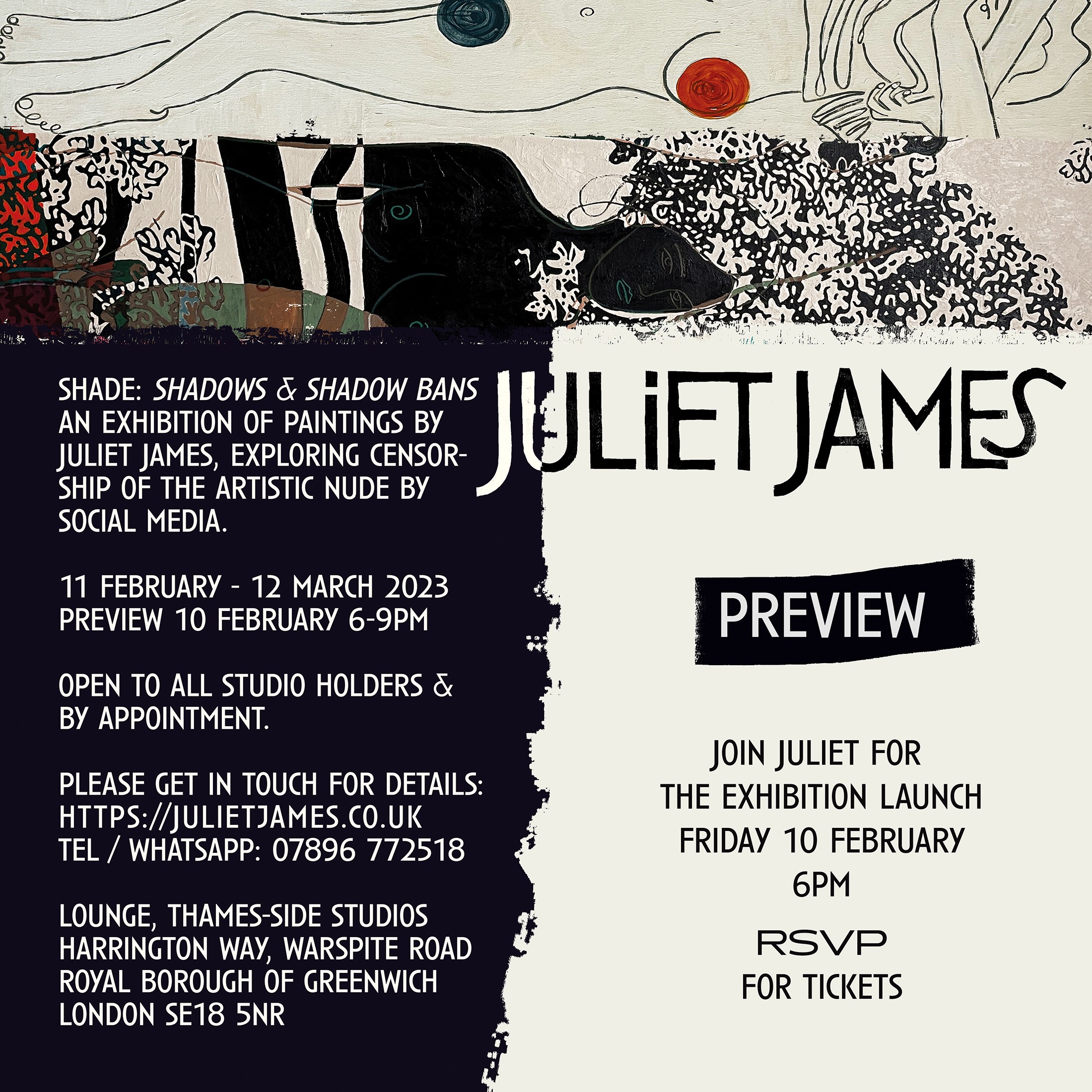 Juliet James is based at Thames-Side Studios in Studio 7-102. Follow her on Instagram @julietjames_art Thames-Side Studios Lounge is located on the second floor of Unit 0 and open to all studio holders and by appointment. For general Thames-Side Studios enquiries please email info@thames-sidestudios.co.uk