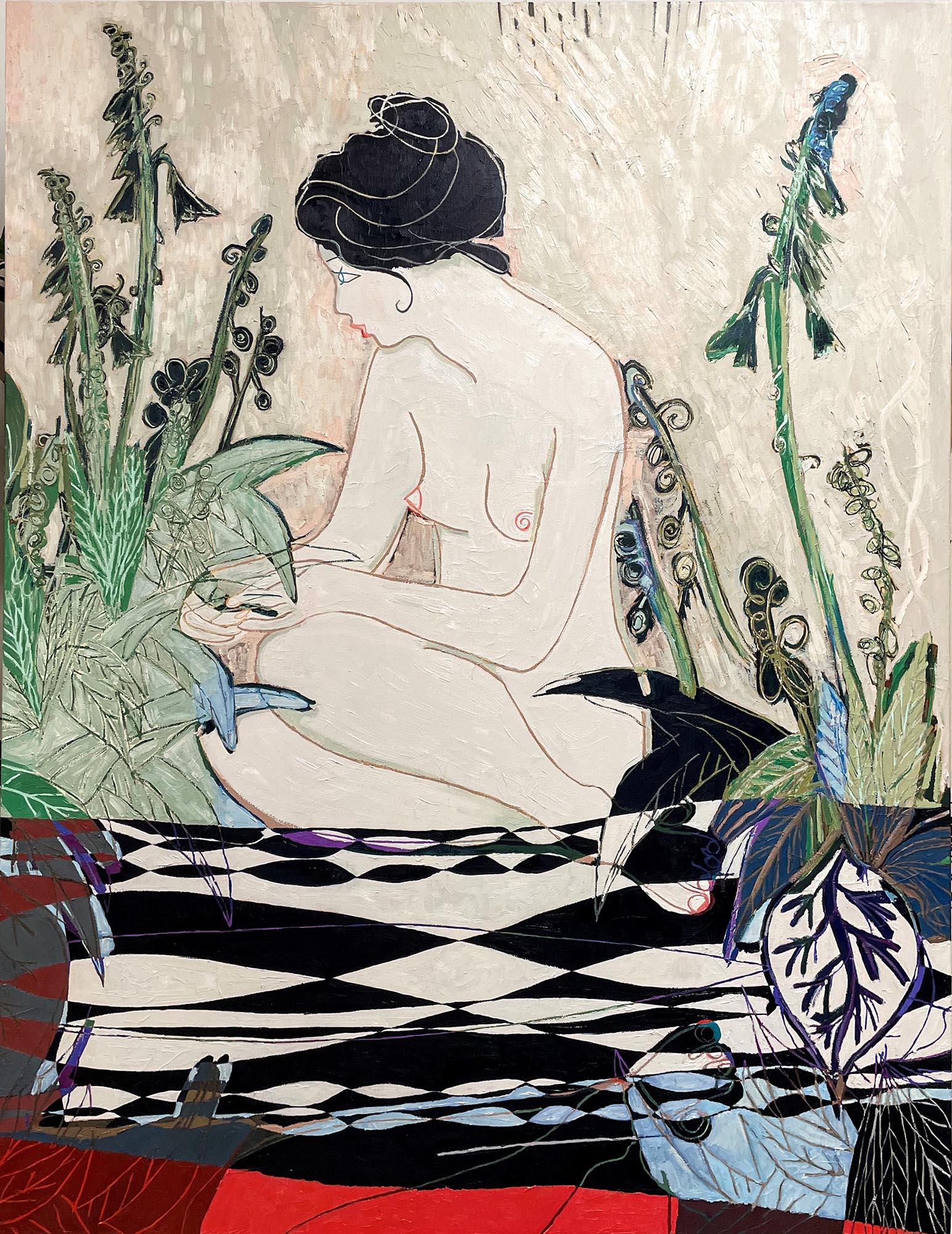 Juliet James' solo exhibition Shade explores the censorship of artwork by social media, particularly concerning depictions of the artistic nude and its classification as taboo, dictated by computer algorithms or 'instabots'. The resulting censorship is at times farcical, with not only nudes but paintings of nature and still life also being banned from public sight.