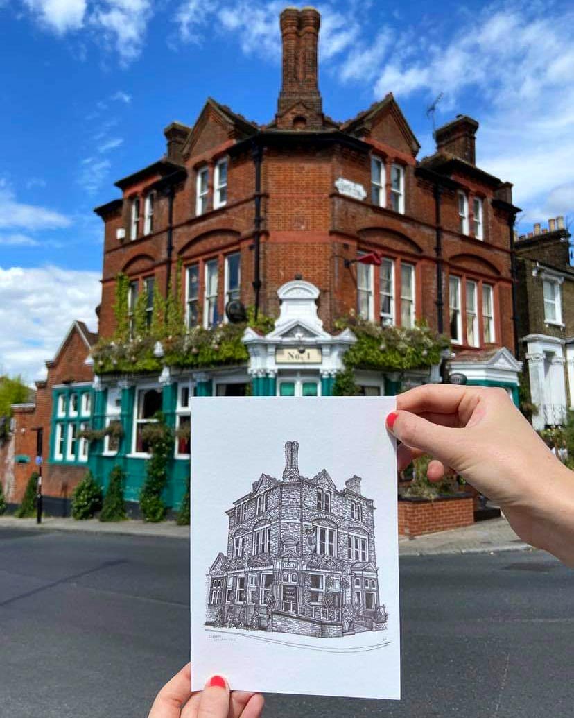 Lydia Wood (Studio 5-228) has set herself a (potentially lifelong) mission to draw every pub in London, all 3,450 (ish) of them! Lydia’s Pub Project intends to include all the backstreet boozers, the locals only, the gastro, the tourist trap, the makeovers, the traditional, the old favourite and the new. By leaving no stone unturned, this project aims to be unbiased; by documenting and celebrating every single pub in this city. After all, everyone has their local. Follow her journey @lydiawooddrawings www.lydiawooddrawings.com This exhibition will showcase a collection of original pencil drawings, pen drawings and prints of London pubs from the pub project. Thames-Side Studios Lounge is located on the second floor of Unit 0 and open to all studio holders and by appointment. For general Thames-Side Studios enquiries please email info@thames-sidestudios.co.uk