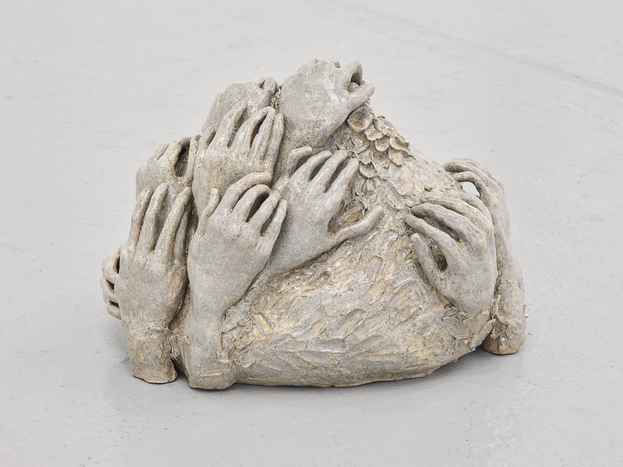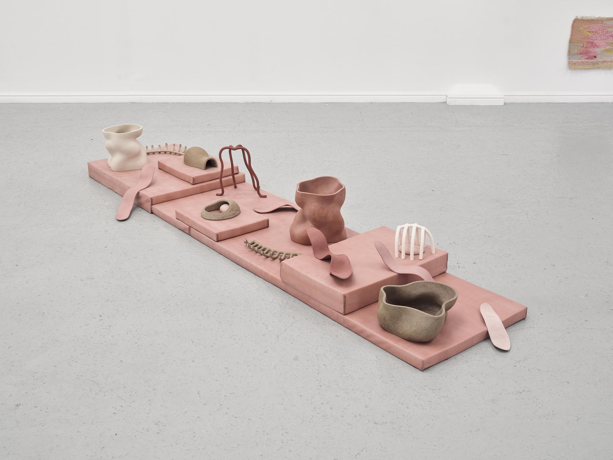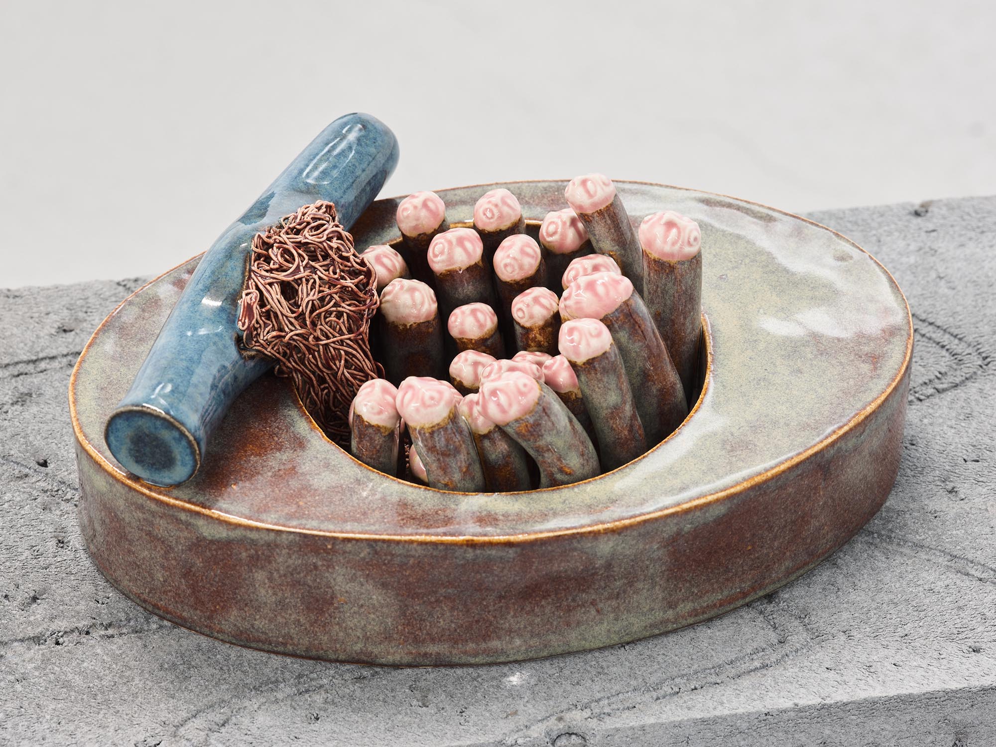 Loose Ends is a group exhibition which will bring together ten artists working across ceramics, textiles and performance. The exhibition will present a range of sculptures, performances and surface works which explore connections and the interwoven poetics of material and the body. Within the gallery these works will inhabit the floor and walls. Exhibiting artists: Abigail Brothers, Joshua Clague, Hoa Dung Clerget, Lily German, Elena Gileva, Laura Porter, Paloma Proudfoot, Alex Simpson, Holly Stevenson and Melania Toma. Clay coils are rolled and pressed together. Hands slide past one another; materials slip off fingertips as loose ends collect and are scattered on the floor beneath. The act of making and touch are preserved in the ceramic form and present between each taut thread. Touch solidified within the material. There is inherent proximity to the body in textiles through the everyday encounters of fibre we experience. Woven fibres are held, stretched, pushed and scraped against one another with flexing fingers. Everyday materials are manipulated and transformed into sculpture. A programme of events and performance will be presented at moments throughout the duration of the exhibition. These bursts of activity of outstretched bodies and voice will begin a conversation between the works in the gallery. Curated by Lily German. Free Programme of Events: