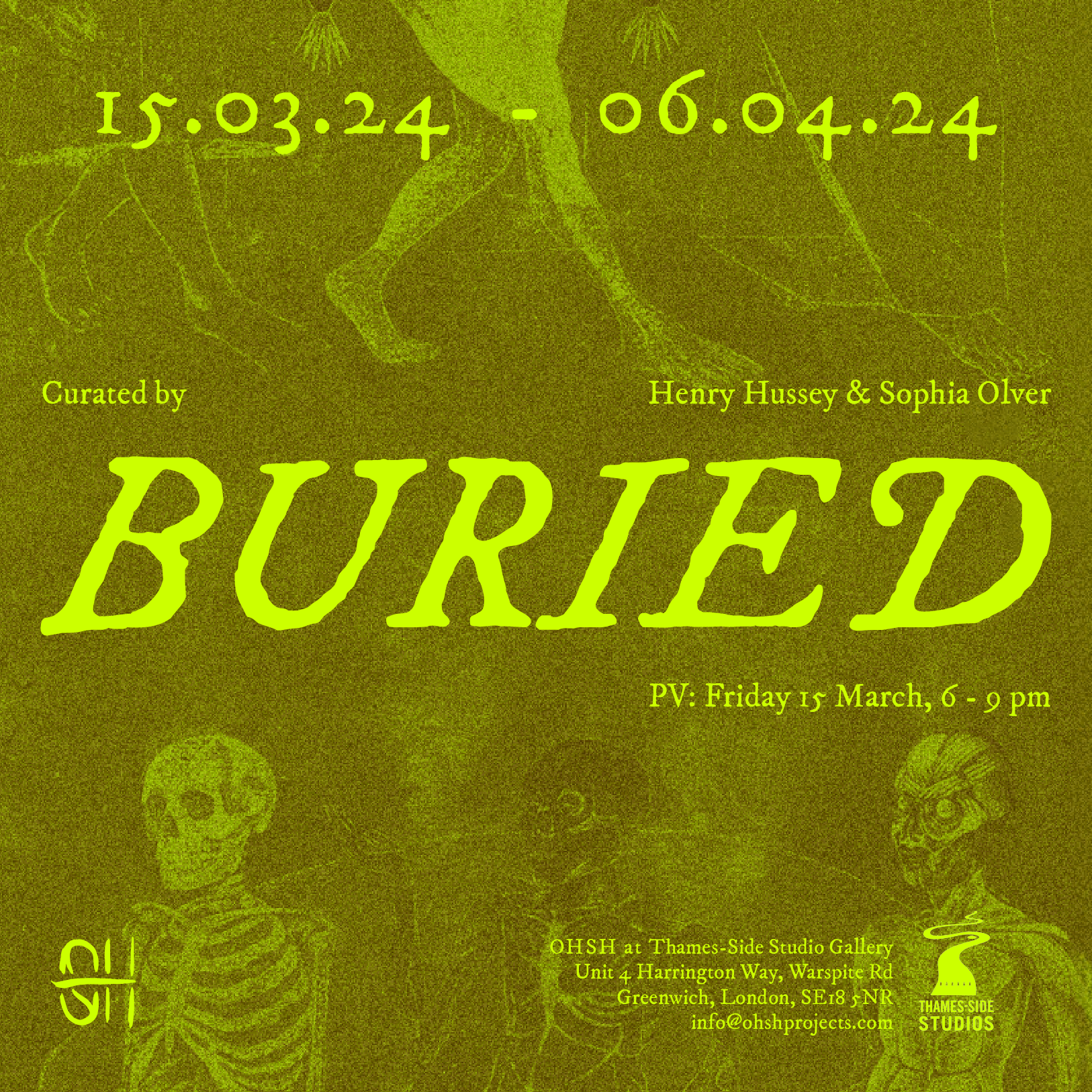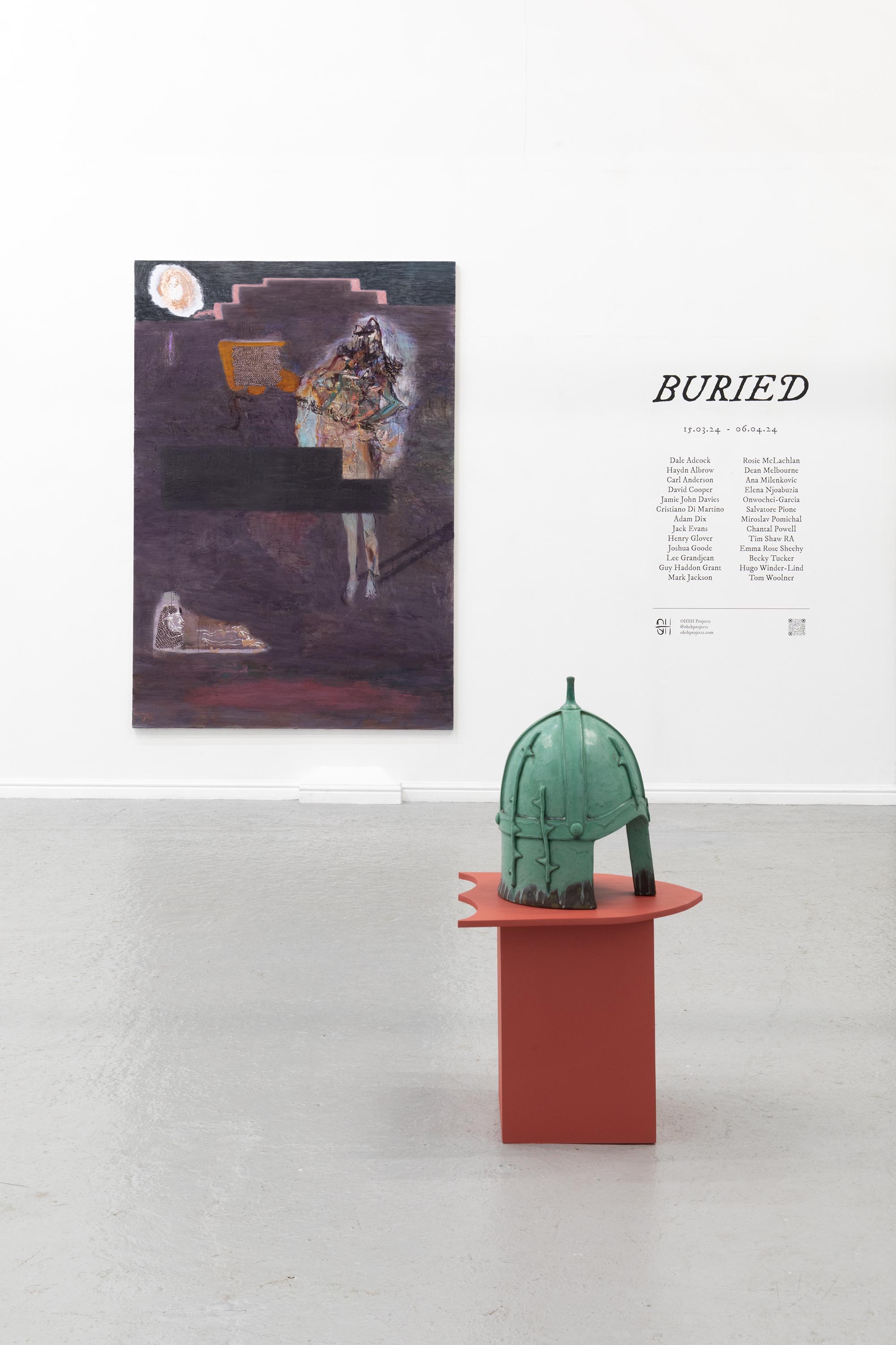 Curated by OHSH Projects, BURIED seeks to resurrect stories buried or blurred over centuries, bringing to light the forgotten remnants of history and the echoes of our collective heritage. The timeless narratives of myths and legends transcend generations, imparting wisdom, morality, and cultural identity. They are dynamic and ever-evolving expressions of the collective human imagination, which become buried, blurred, or preserved for countless reasons. Myths have their origins in the rich tapestry of human storytelling and cultural expression, emerging from our experience of societies throughout history. Sometimes they try to explain the unknown, arising from attempts to explain natural phenomena, such as the origins of the universe and the changing seasons, providing a framework for understanding the world in the absence of scientific knowledge. From a moral and cultural perspective, myths can convey values, teaching lessons and serving as a means of passing down ethical guidelines, societal norms, and the wisdom of previous generations. These stories often help us cope with uncertainty, and navigate the complexities of life. Despite the vast diversity of cultures and their respective mythologies Joseph Campbell theorises within ‘The Hero with a Thousand Faces’ that there exists a common structure that underlies all heroic tales. This structure consists of a series of stages and archetypal characters that the hero encounters throughout their journey. Campbell distilled this universal narrative pattern into a monomyth, a template that serves as a blueprint for storytelling. From monolithic deities to remnants of the journey and diminutive relics of battle, the artists exhibiting in BURIED depict stages of the monomyth or the hero’s journey. These moments, alongside the symbolism of Jungian psychology, allow the artists in this exhibition to explore the depths of the collective unconscious, tapping into primal fears, desires, and archetypal motifs. Thames-Side Studios Gallery Thames-Side Studios Harrington Way, Warspite Road Royal Borough of Greenwich London SE18 5NR Thames-Side Studios Gallery open Thursday-Sunday 12-5pm during exhibitions and by appointment. For general Thames-Side Studios Gallery enquiries please email info@thames-sidestudios.co.uk