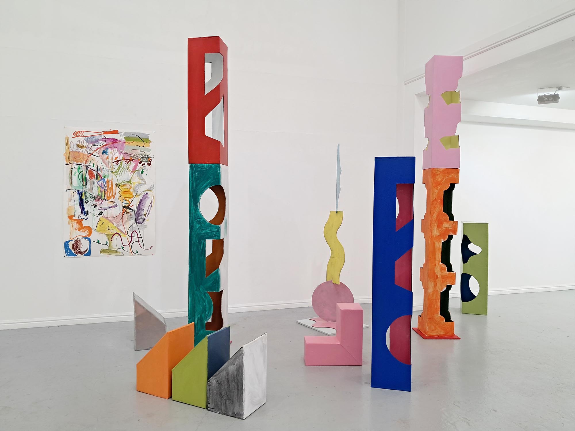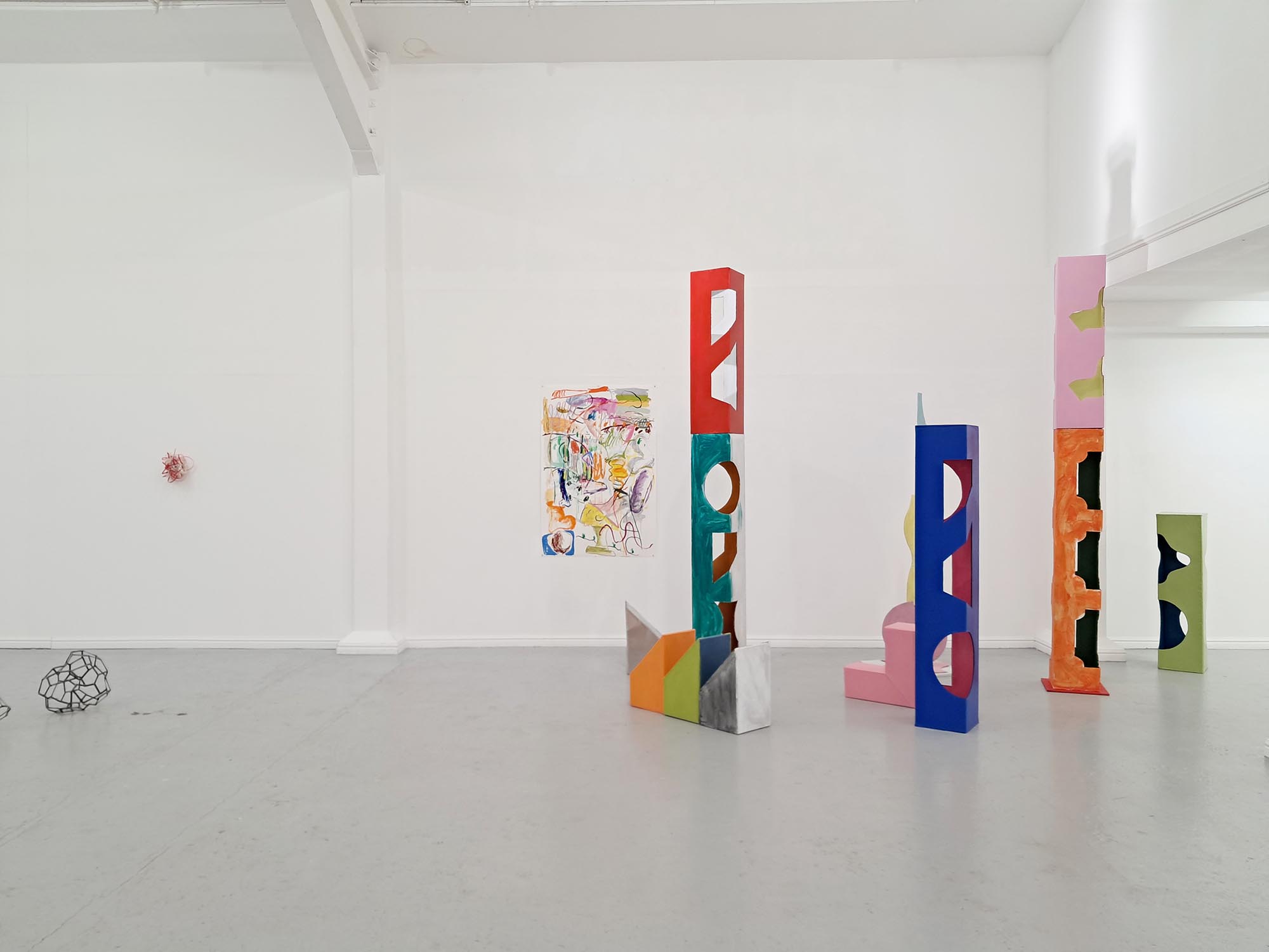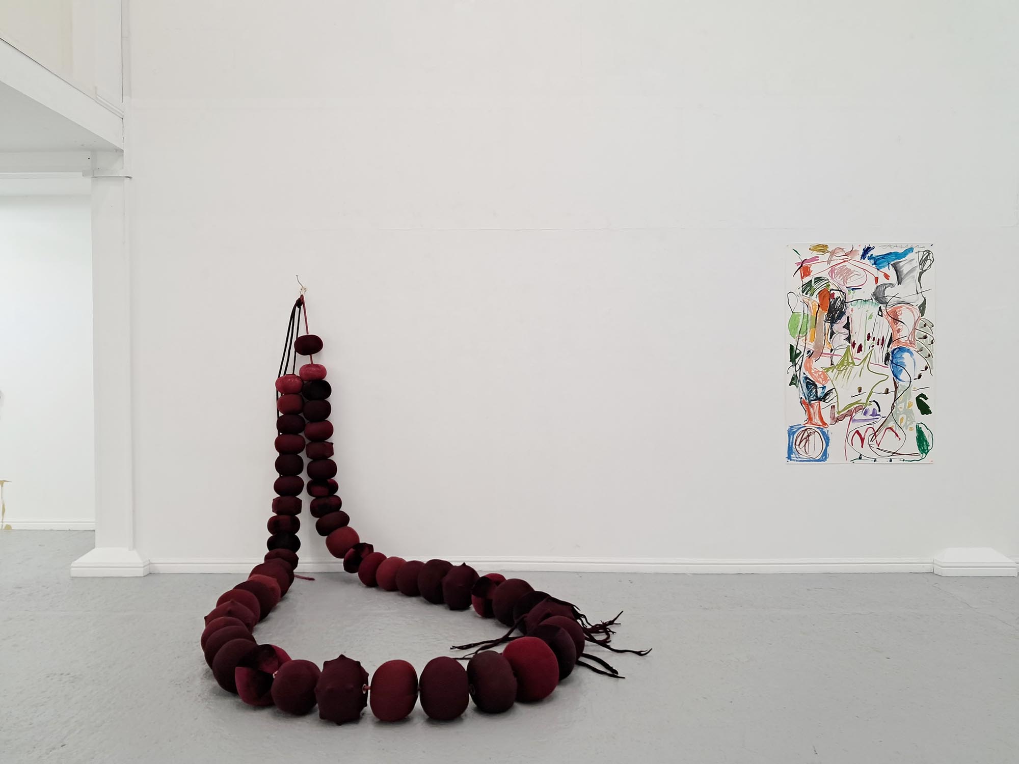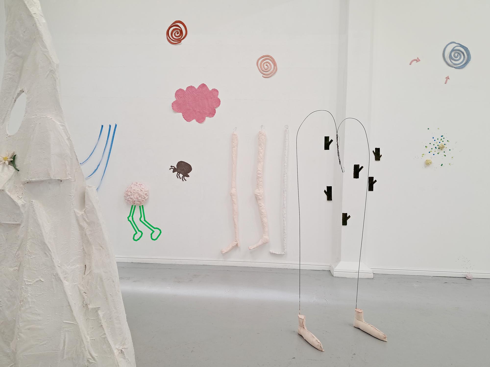 Between the Floor and the Wall presents the work of seven artists whose work oscillates between the flat and the fat; the horizontal and the vertical. Their diverse artistic outputs share an excitement about playing with spaces and meaning throughout the zone between the floor and the wall, bringing energy and humour to this project at Thames-Side Studios Gallery. The exhibition includes works made with diverse, experimental and sustainable approaches to textiles, sculpture, ceramics and found materials. About the artists: Eleanor Bedlow works in between the disciplines of drawing, painting and sculpture, pairing tactile and organic forms in works that feel as though they are exploring, leaning, feeling, listening. @eleanorbedlow Johanna Bolton works across sculpture, installation and performance, engaging with complexity and the unknowable, and imprints of human presence in everyday objects and material encounters. @johanna.bolton Jenny Camp practices sculptural auto-cannibalism, physically making things out of desire and necessity but then frequently chopping up, adding to, or breaking down older pieces, mining them as material for new work. @jennyscamp_ Pattern, repetition and rhythm are central to Janet Currier’s installation with sculpture, drawing and painting, where scraps of well-worn garments worked into her sculptures, and invented wallpaper denote the domestic space; vulnerability, care and resilience. @janetdcurrier Sandra Lane works feelings of ambivalence, optimism and failure into multiple forms made from malleable materials, exploring memories, how to be a female and the absurd. In new edible and wearable works she enjoys pushing against the limits of sculpture, as much as the materials themselves. @artysandralane Jonathan McCree works with drawing, painting, sculpture, film and performance, as a record of movement and emotion through space. His playful, experimental practice pushes the boundaries of architecture, exploring spatial ideas and qualities. @jonathanmccree Jane Millar works with ceramics, wall painting and installation. The narrative emerges from the chaotic zone between our perceived inside and outside; a place of becoming and repurposing, of remnants of objects, mythologies, and a future speculation of a cosmos. @jmillarstudio Thames-Side Studios Gallery Thames-Side Studios Harrington Way, Warspite Road Royal Borough of Greenwich London SE18 5NR For general Thames-Side Studios Gallery enquiries please email info@thames-sidestudios.co.uk Disabled access. Free, limited parking is available on site. How to get here: Bicycle: Thames River cycle path (16 mins cycle from Greenwich). Bus: 161 / 177 / 180 / 472 to Warspite Road bus stop. DLR: Woolwich Arsenal (1 minute walk to Plumstead Road and take Route Bus 177 towards Peckham Bus Station or 472 towards North Greenwich Station). Road: A2 corridor, first roundabout east of Thames Barrier onto Warspite Road. Train: From Cannon Street or London Bridge to Woolwich Dockyard (8 minute walk) or Charlton (12 minute walk). Tube: North Greenwich (Take the Route Bus 472 towards Thamesmead Town Centre). Crossrail: Elizabeth Line to Woolwich (take Route Bus 177 towards Peckham Bus Station or 472 towards North Greenwich Station).