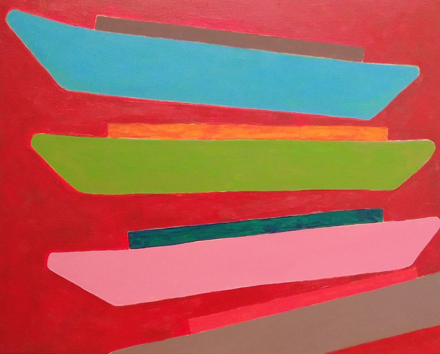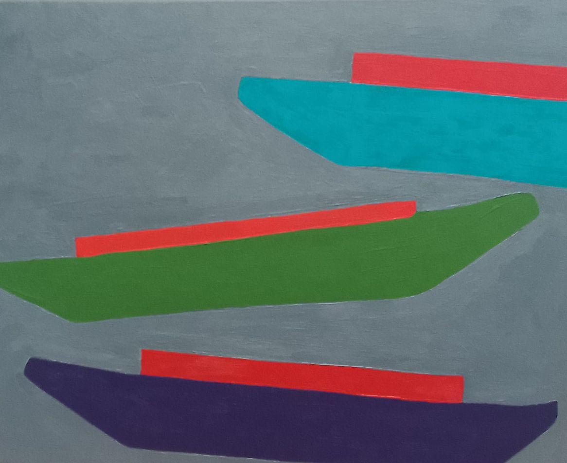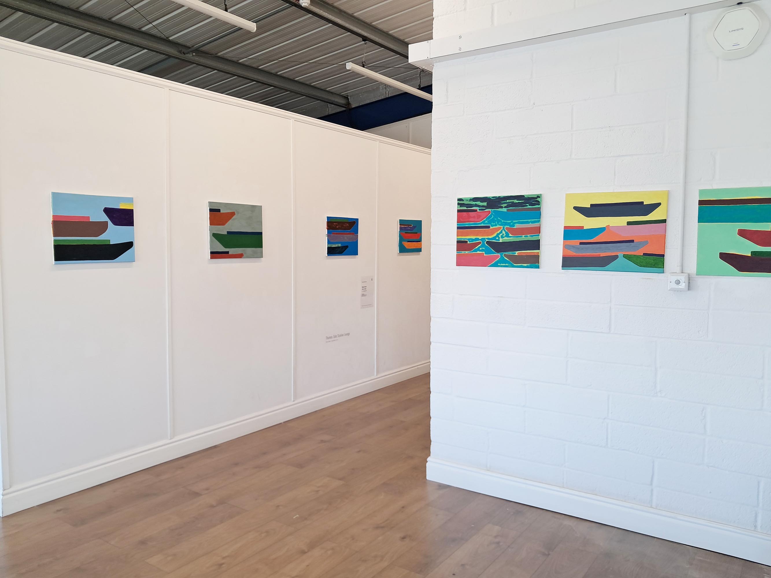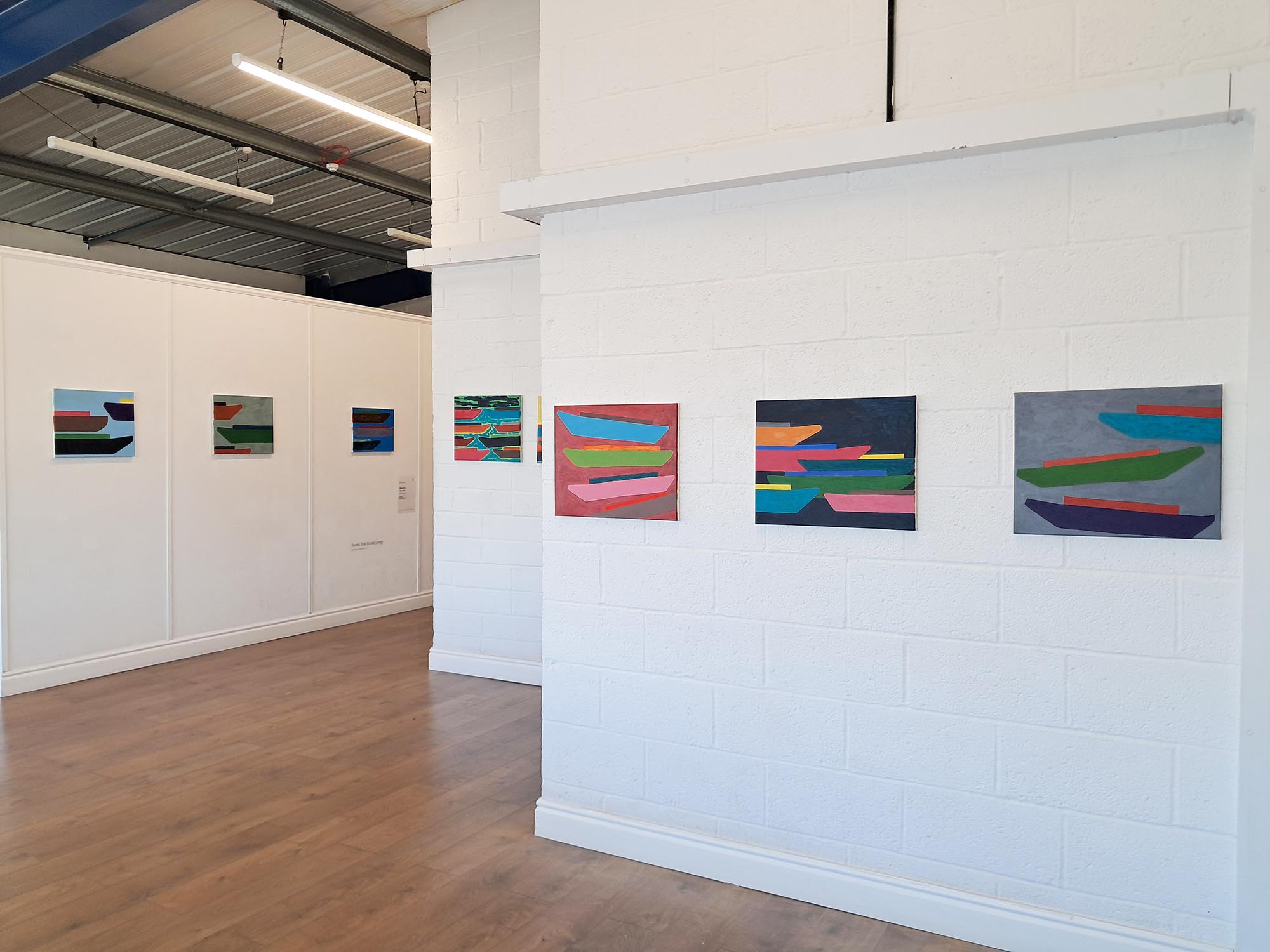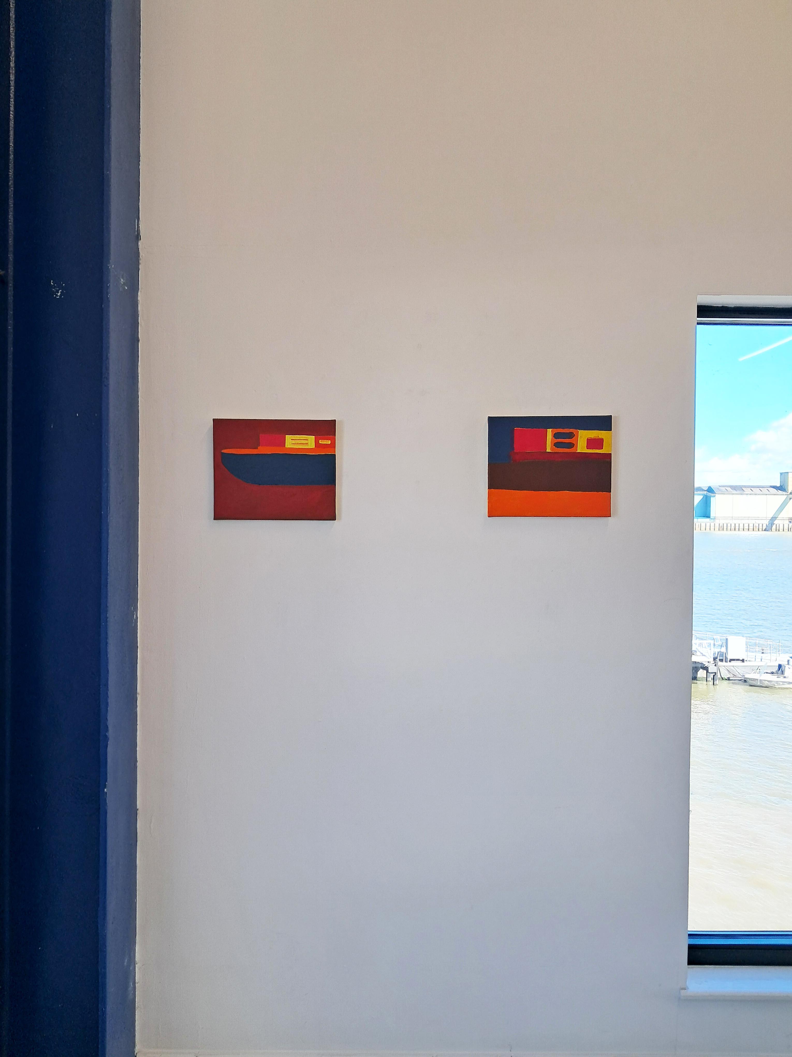Ship to Shore is an exhibition of new paintings by Michael Bartel (Studio 5-113). The paintings in this show are a development from drawings made along the Thames path. The tugs and barges on the river, with their clean lines and colourful, weatherworn patina, have always interested and inspired me. The work in the show were all made in 2024-25 and whilst the shapes and forms are true to the original drawings, the colours were selected intuitively, with an emphasis on bright and crisp, and with more than a passing suggestion of playfulness. Michael Bartel, August 2025 About the artist: Michael Bartel (b. 1960 Plumstead) grew up in East Greenwich. Living close to the river the barges, boats, wharves, boat yards and muddy foreshore soon became his adventure playground. Throughout his life's employment, including that of a printer, delivery driver, motorcycle courier, carer and latterly since 2007 as gardener, Michael maintained his practice as a painter. He studied Foundation at Goldsmiths College, followed by BA Hons Humanities Art/ European Thought and Literature at Cambridge College of Arts and Technology. Michael has exhibited in group shows at Lewisham Arthouse and APT Gallery, and in 2025 at Thames-Side Studios Open Studios and exhibition. Ship to Shore is Michael Bartel's first solo exhibition. Thames-Side Studios Lounge is located on the second floor of Unit 0 and open to all studio holders and by appointment. For non-studio holders please email the artist M8rtel@outlook.com to arrange an appointment.