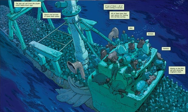 Congratulations to writers Andrew Donkin (0-57), Eoin Colfer and illustrator Giovanni Rigano for their graphic novel ILLEGAL being 'Children's Book Of The Week' in The Observer on Sunday 15 October 2017. Read the review here theguardian.com/books Images: Spread and front cover from ILLEGAL, by Andrew Donkin, Eoin Colfer and Giovanni Rigano, 2017