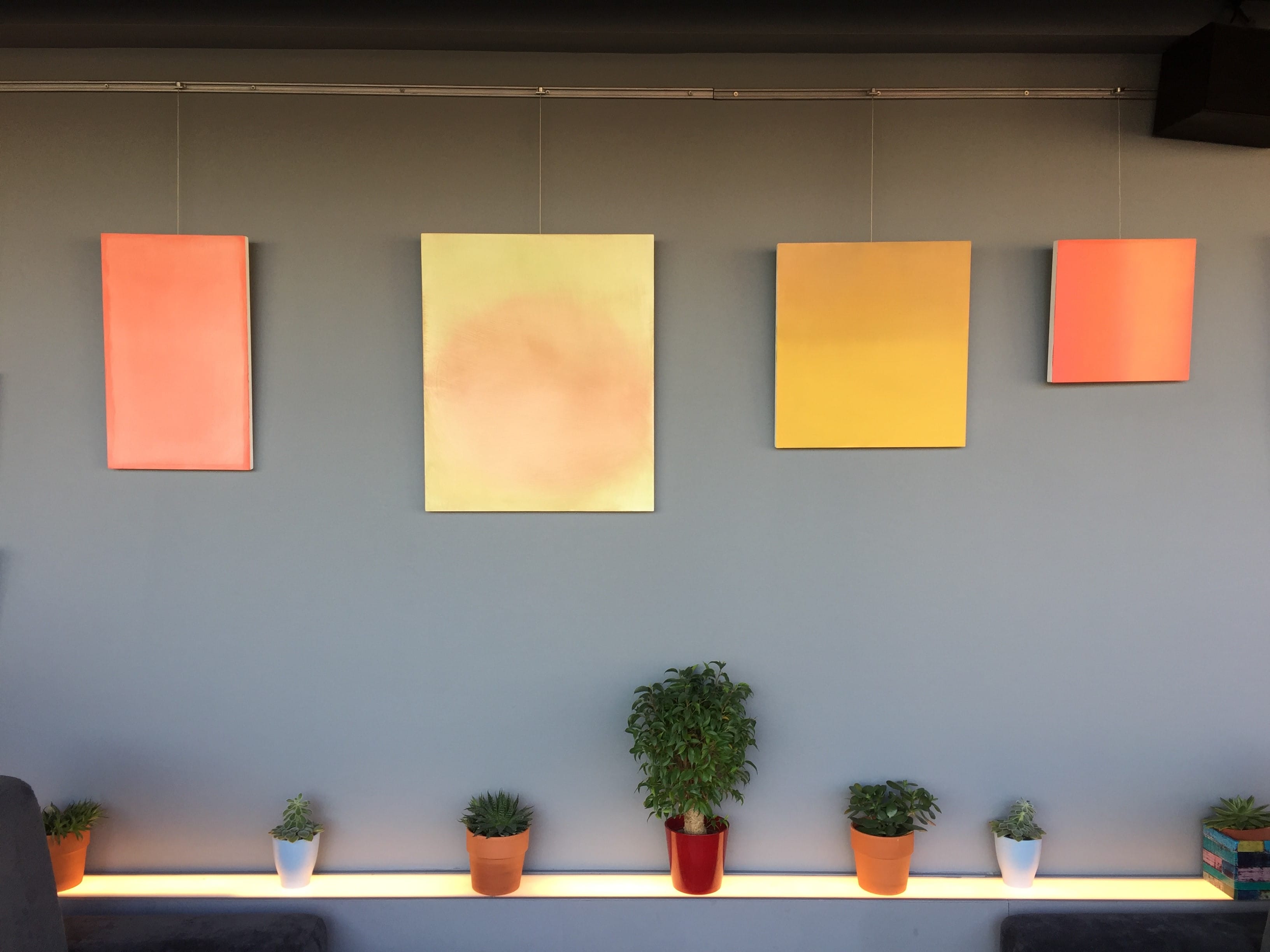 Naomi Bourne (0-10a) is exhibiting paintings in her solo exhibition, Oil on Board, upstairs at Greenwich Picturehouse from 8 December 2017-31 January 2018. Greenwich Picturehouse, 180 Greenwich High Rd, London SE10 8NN. For me engaging with a painting is akin to the sensory and kinaesthetic way in which we experience the landscape. Specific locations become points of departure for each new body of work, through which I explore all aspects of the place – light, colour, form, even temperature. I aim to construct evocative series’ of works that move away from literal representation. Within the group of works in this exhibition, many were made in response to a ten day residency I undertook in Morocco in 2015. The rest were made from trips to the Lake District and islands on the West Coast of Scotland in 2012. I chose this selection of work based on their balance and contrast as a group. - Naomi Bourne, December 2017 Images: Naomi Bourne, installation view detail, Greenwich Picturehouse; Earth and Straw, 44x41cm, 2015; Spring Morning, Taroudant, 50 x 40cm, 2015; Untitled (Edge), 50 x 30cm, 2015, all courtesy the artist 2017.