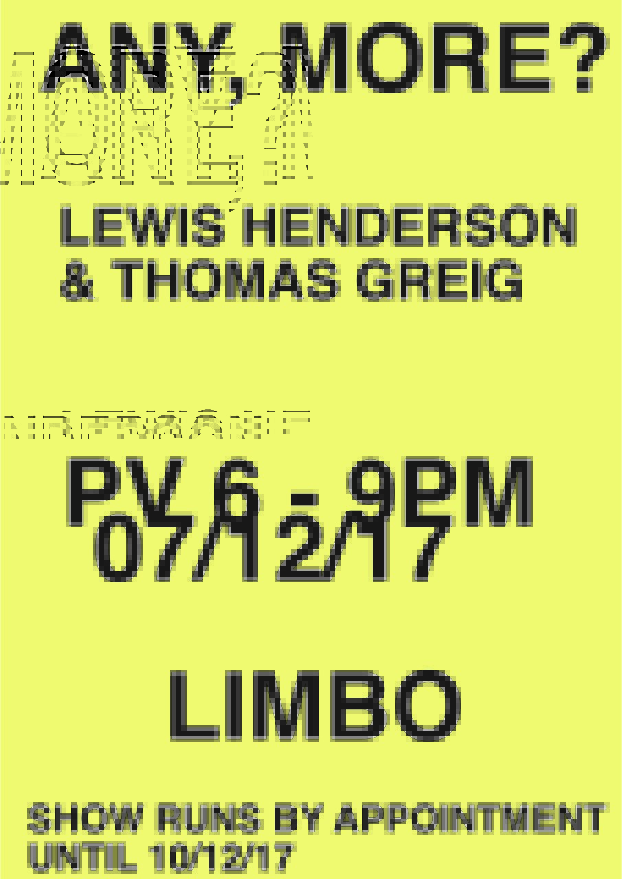Thomas Greig in Any, More? at LIMBO (7-10 Dec 2017)