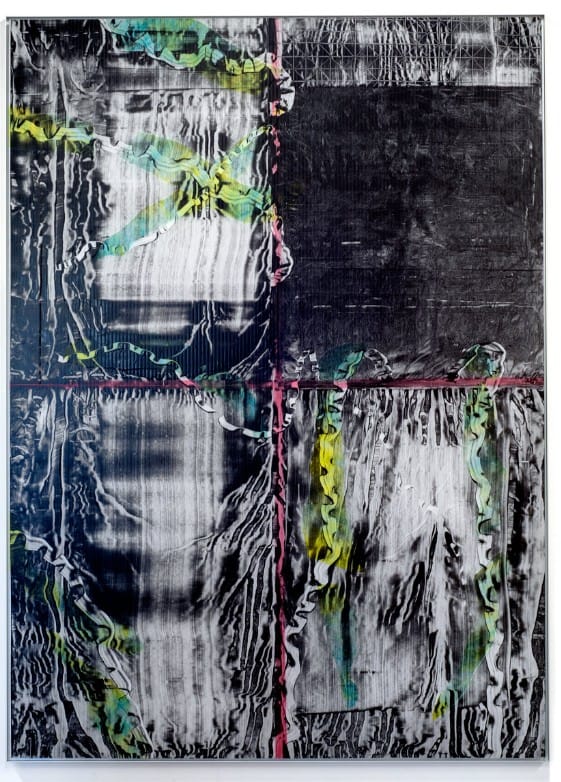 The real world is only one of the many possibilities that can be moved back and forth; the game would remain incomplete if one were to accept reality as a finished product. That is why objects are stretched and shortened, make-believe objects are sprinkled among the existing ones, and miraculous apparitions are created without hesitation. Siegfried Kracauer, Calico-World (1926) The Concept Space, 7 Spa Road, Bermondsey, London SE16 3QP. Open Tuesday-Saturday, 12-6pm. www.theconceptspace.org Image: Adam Shield, Streamer, oil on paper, polycarbonate panel, 200 x 150cm, 2018
