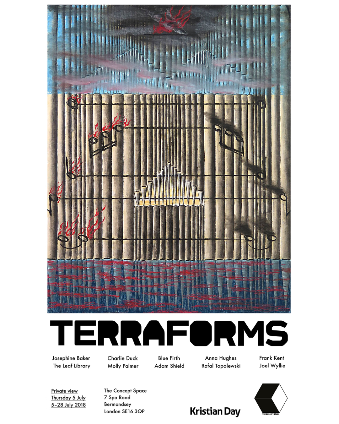 Adam Shield and Anna Hughes (both 5-101) are exhibiting in TERRAFORMS, a collaborative exhibition between Kristian Day and The Concept Space. Other artists include Blue Firth, Rafal Topolewski, Josephine Baker, Joel Wyllie, Frank Kent, Charile Duck, Molly Palmer and The Leaf Library.
