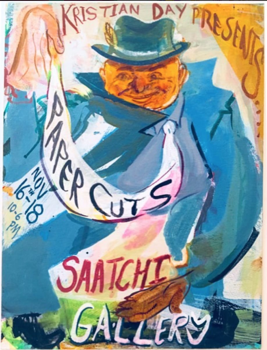 Frank Creber (TB-258) and Billy Crosby (TB-250) are two artists featuring in Kristian Day's Paper Cuts from 16-18 November 2018, 10am-6pm, at the Saatchi Gallery. Saatchi Gallery, Duke of York's HQ, King's Road, Chelsea, London SW3 4RY. This big show for small art features thousands of works by hundreds of contemporary artists. More information here kristianday.co.uk Images: Billy Crosby, Untitled (Holes), 30x42 cm, printing ink and spray paint on paper, 2018; Frank Creber, Looking East from Docklands, watercolour over digital drawing, 30 x 30cm, 2018; flyer courtesy Kristian Day, 2018; images courtesy the artists.
