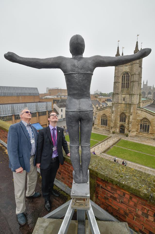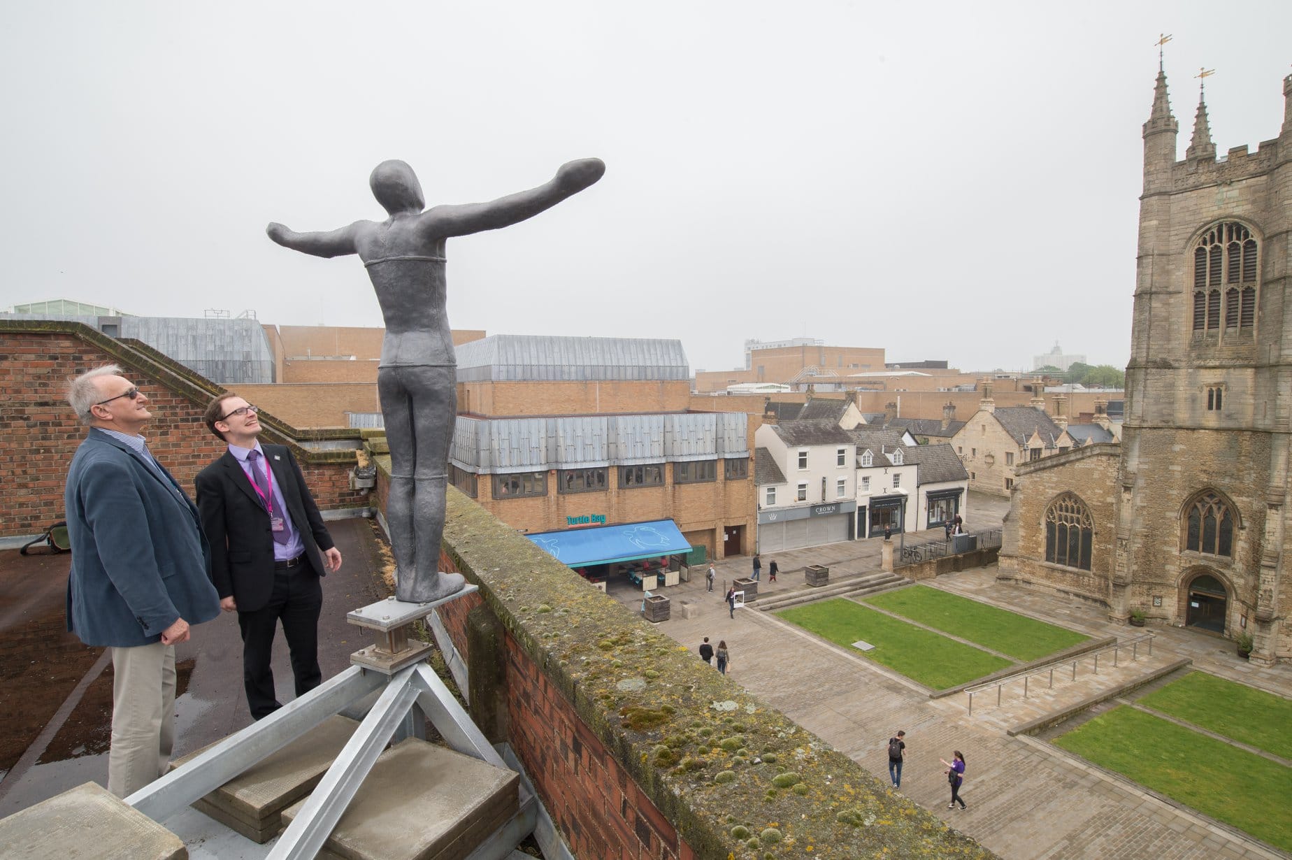 Early Summer 2018 saw the public unveiling of the Antony Gormley's Places to Be which had been restored earlier in the year by Thames-Side Studios-based Hall Conservation (5-109/6G/6H) for Peterborough City Centre. Places to Be was Gormley’s very first public commission and consists of three full-sized male figures which have now been given a new permanent home on the rooftops of the Queensgate Shopping Centre, the Leeds Building Society, and the Norwich & Peterborough Building Society as part of a revamped Peterborough City Centre skyline for residents and visitors to view and to enjoy. This work has always been close to the heart of creator, Gormley, who was delighted at the new locations suggested for his work. Gormley commented: “Places to Be was my first public commission. It is wonderful that it is being re-sited on a striking modern horizontal parapet, a Victorian corner tower, and the 18th century roof line around the Market Square in the centre of Peterborough. I am very proud of this work and am delighted that with Vivacity’s help it will again be part of the collective life of the town.” The buildings of Peterborough City Centre reflect different periods of history and architecture, and exist for various, changing purposes. Places to Be celebrates this diversity, whilst highlighting texture, material, and the scale of the world built around us. A spokesperson for Vivacity who organised the work and relocation said: “With Places to Be resited within the skyline (detached from common ground), the hope is to inspire locals and visitors to #lookup and appreciate a new perspective of Peterborough and our relationship with nature.”