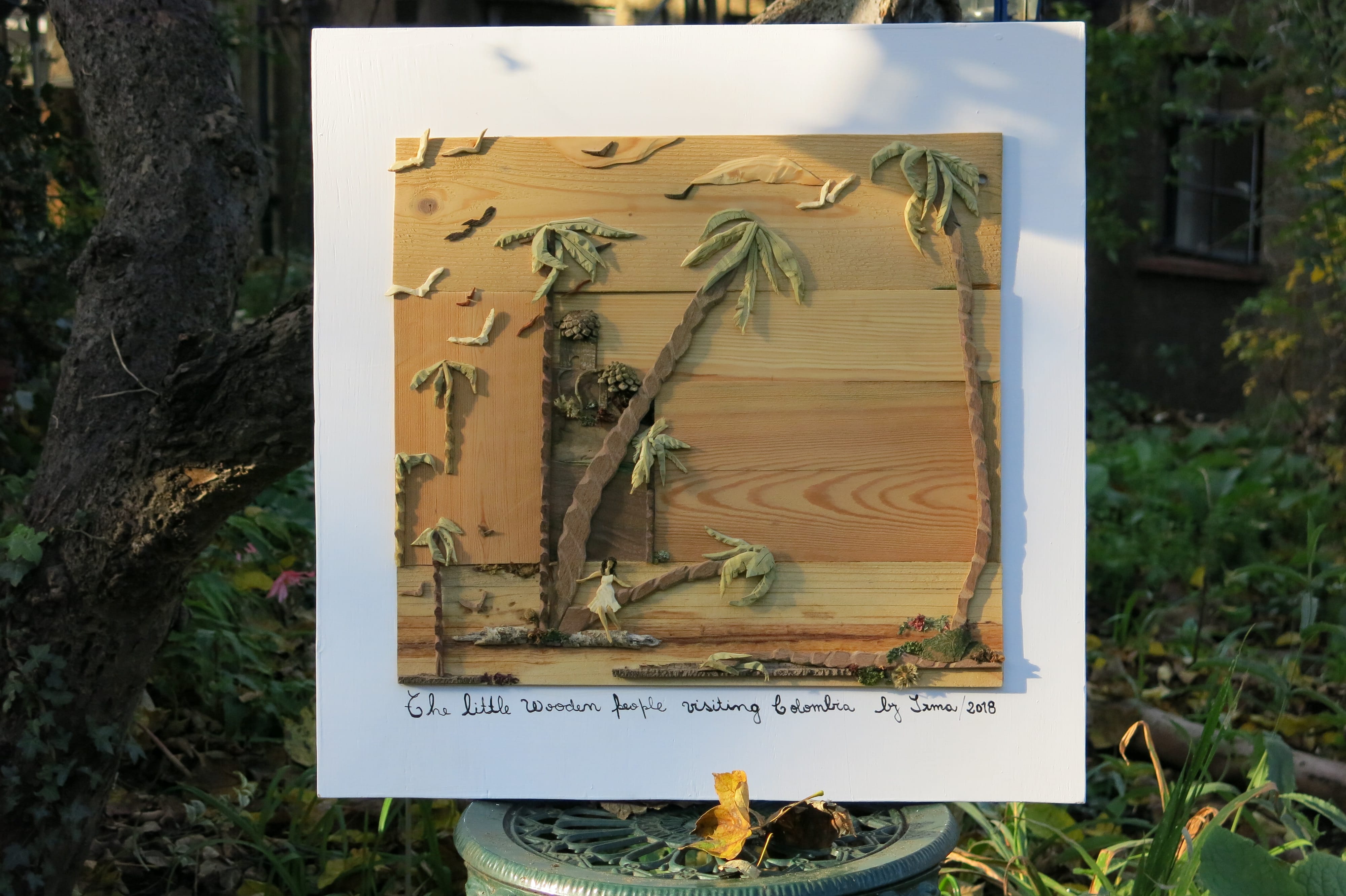 There is even a Lucky Draw you can enter to win The Little Wooden People Visit Colombia, a unique work by Irma. Inside Paladar Restaurant you will find a beautiful little tree called Ficus. Hanging in the branches of the tree you will see a dry leaf with one of Irma's little people waking up inside it.
