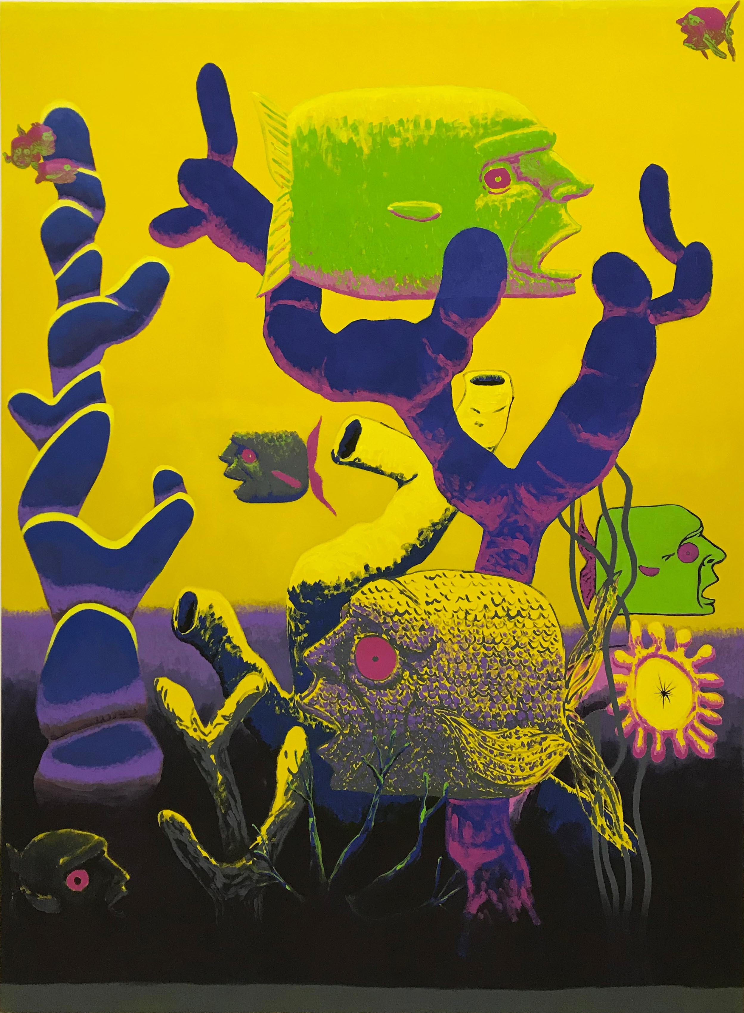 Painter James Lincoln (0-49) is exhibiting new work in The Hot Wax, with Eden Chau, Paddy Jones and Louis Morlet. Preview: Friday 16 February 2018, 6-9pm, at 4 Tanners Hill, London SE8 4PJ. Image: James Lincoln, Yellow Tank, acrylic on canvas, 160cm x 200cm, 2017