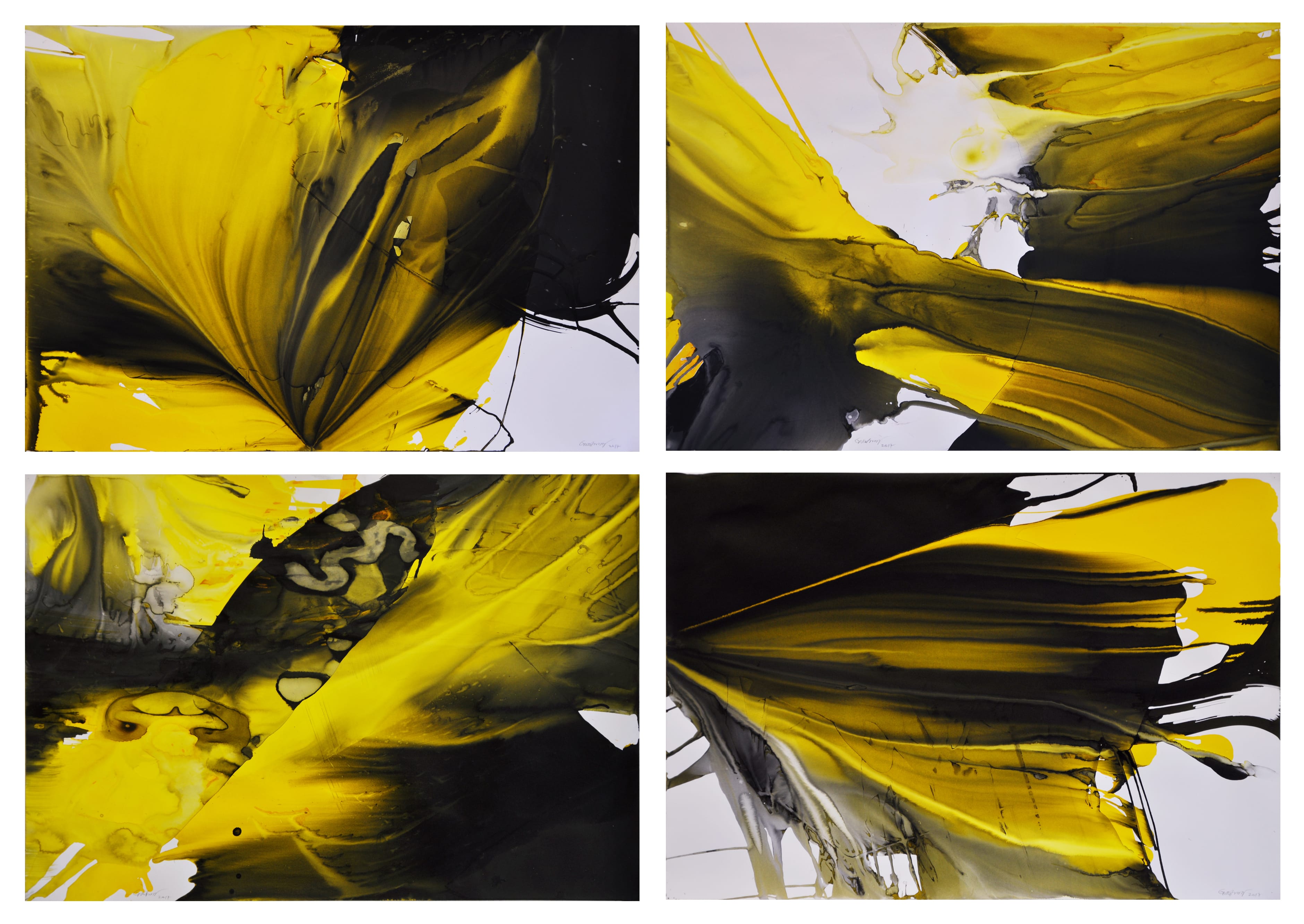 Painter Le Guo (7-212) is displaying recent work with Hua Gallery at the Asia Pavilion, as part of Milan Design Week, from 17-22 April 2018. www.asiadesignpavilion.com Image: Le Guo, Multichrome - Yellow and Black, 2017, ink and pigment on paper, courtesy the artist and Hua Gallery