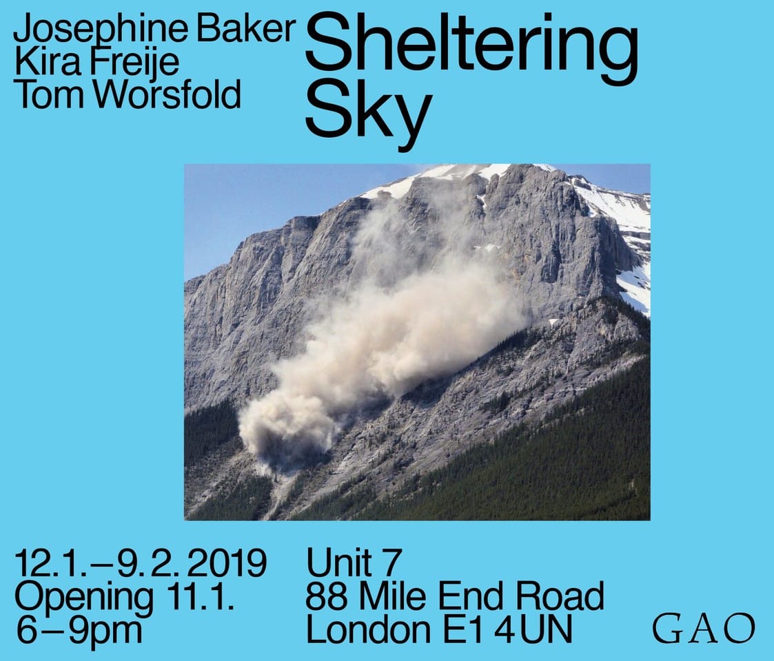 Thames-Side Studios-based Josephine Baker (0-30) and Tom Worsfold (TB-260) exhibit new works alongside Kira Freije in Sheltering Sky at GAO Gallery, London. Preview: Friday 11 January 2019, 6-9pm Exhibition Dates: 12 January- 9 February 2019 Open Wednesday-Saturday, 12-6pm GAO Gallery, Unit 7, 88 Mile End Road, London E1 4UN For more information go to www.gao.gallery