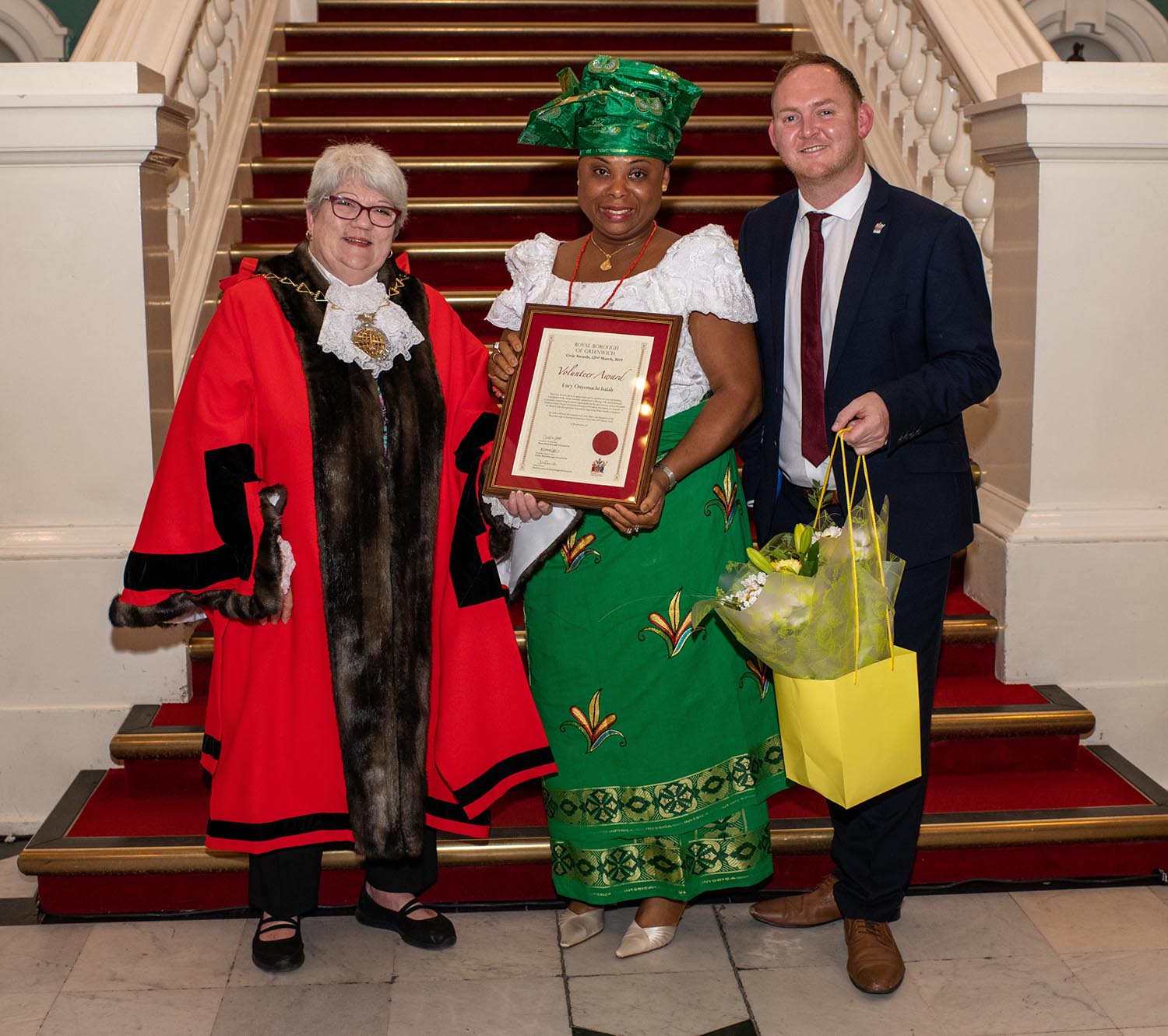 Congratulations to Lucy Isaiah (5-203) who has received a Royal Borough of Greenwich Civic Award 2019 presented to local heroes who have contributed outstanding work to the economy, health and wellbeing to society in the The Royal Borough of Greenwich. Lucy also received a Role Model of the Year Award, a Community Champion Award celebrating the unsung heroes in the communities around the Docklands Light Railway. Lucy Isaiah's Luhoc Creativehands makes and creates contemporary African design and accessories, jewellery and home deco using African fabrics and ankara, run sewing and tapestry.