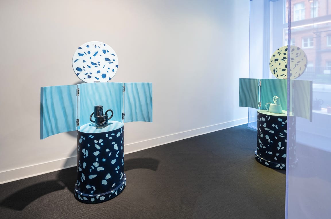 Coco Crampton (Unit 5, Studio 5-102) presents a new body of work conceived specifically for the Belmacz space. Reflecting on actual forms of domestic containment, Crampton exhibits a trio of sculptures: cabinet-like column structures and vessel-like ceramic forms arranged between and behind curtains as though to prevent total exposure. A reimagining of the quotidian and an allusion to daily rituals, from ablutions to dressing. The exhibition will be accompanied by a publication with a text by Ines Weizman and a poem by Toby Upson. Text courtesy Belmacz. Domestic Wears was selected by the Contemporary Art Society as their exhibition of the week on 6 November. "Crampton’s new body of work slyly crosses the boundaries between craft and fine art, following the modernist mantra ‘Form Follows Function’ ad absurdum. Her bold experimenting with various textures and materials makes her sculptural language unique and so, accompanied by an essay by Ines Weizman and a lively poem by Toby Upson, this exquisite Gesamtkunstwerk at Belmacz positively demands to be seen." - Christine Takengny, Curator, Contemporary Art Society Read the full review and see installation images here: www.contemporaryartsociety.org/news/friday-dispatch-news/coco-crampton-domestic-wears-belmacz-london/ Belmacz, 45 Davies Street, London W1K 4LX. belmacz.com/exhibitions/domestic-wears Images: Coco Crampton, Domestic Wears, installation photos and details, courtesy Belmacz and the artist 2020