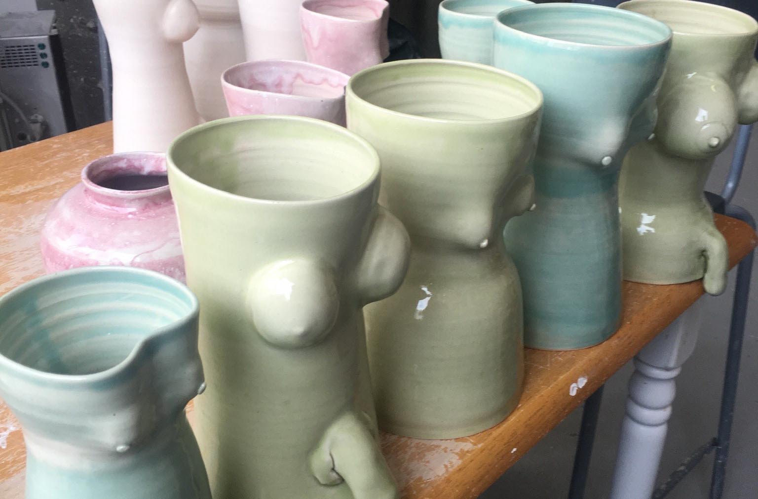 Edit Juhasz's (Unit 0, Studio 0-110) ceramic work can be seen in the drama comedy series The Duchess, staring Katherine Ryan and currently streaming on Netflix. Edit made around 200 'boobie' pots of different shapes and forms to fill the pottery studio shelves in the drama. Some were glazed with pink, green and white glazes. At the end of the commission Edit visited the Richmond film set to advise on the authenticity of the pottery studio's 'look' in advance of filming. She regularly receives requests for pots similar to those in the series. To see more of Edit's work go to editjuhaszceramics.com Images: courtesy Edit Juhasz