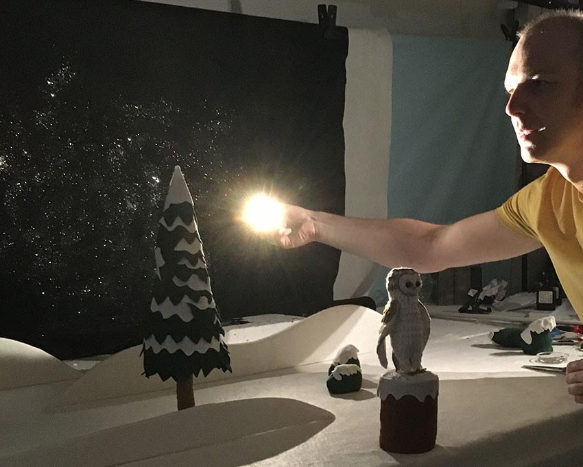 Ed Hartwell and Sara Simi (Unit 7, Studio 7-132) latest stop motion animation Twinkle Twinkle Little Star for their YouTube channel Little Woolly Vision is nearing completion. Little Woolly Vision features their nursery rhyme animations for children and babies, old favourites with an original twist, handmade with felt for extra woolly fun. Subscribe to be the first to see it when it's published - www.youtube.com/littlewoollyvision Image: Ed Hartwell behind the scenes in his Unit 7 studio, courtesy the artists, 2021