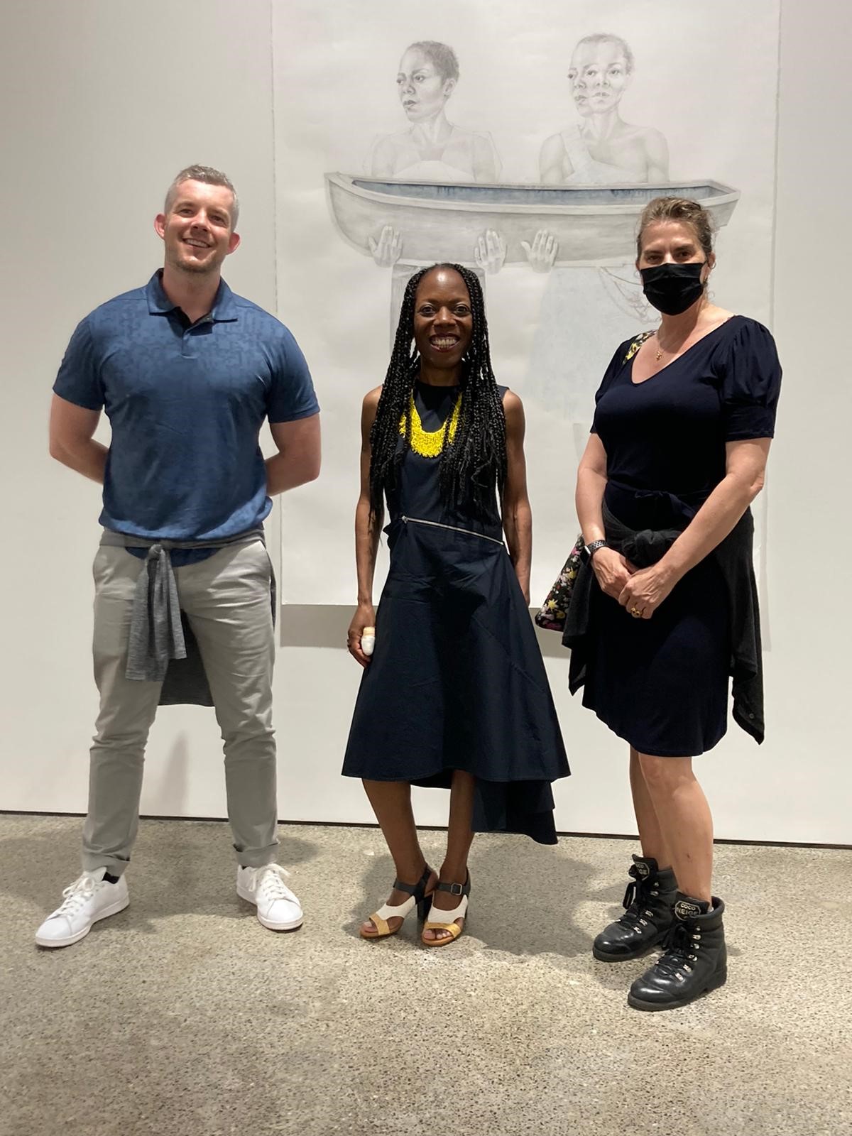 Hannah Quinlan & Rosie Hastings (Unit 4, Studio 4-055) and Charmaine Watkiss (Unit 4, Studio 4-113) are exhibiting in 'Breakfast Under The Tree' curated by Russell Tovey at Carl Freedman Gallery in Margate until 15 August. Other exhibiting artists: Ana Benaroya, Susan Chen, Caroline Coon, Lenz Geerk, Oscar yi Hou, Cheyenne Julien, Jon Key, Doron Langberg, Lindsey Mendick, Jeffry Mitchell, Cassi Namoda, Toyin Ojih Odutola, Sola Olulode, Benjamin Senior, Salman Toor. See instal photos here Carl Freedman Gallery, 28 Union Crescent, Margate CT9 1NS. Open Thursday – Sunday 11am-6pm. carlfreedman.com Image: Charmaine Watkiss with Russell Tovey and Tracey Emin at the opening of 'Breakfast Under The Tree', Carl Freedman Gallery, 2021