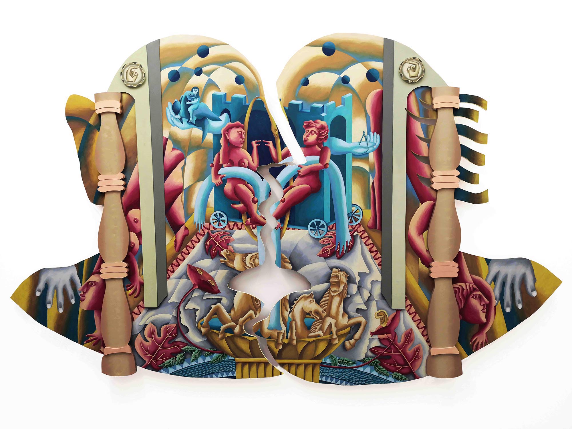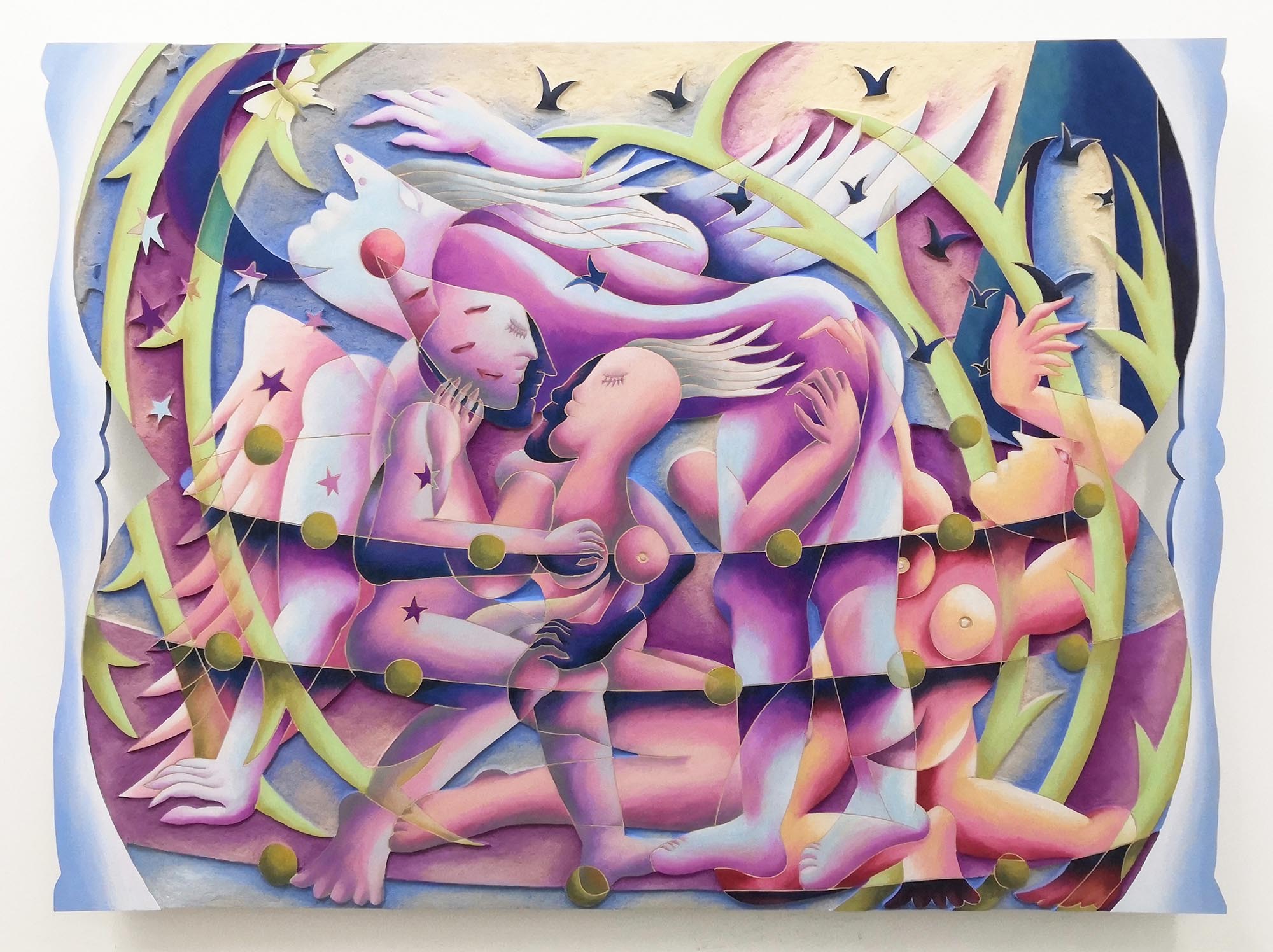 Jade Ching-yuk Ng's (Unit 7, Studio 7-225) solo exhibition I is another at Cornucopia, in partnership with the Sassoon Gallery, runs from 12 April-2 May 2021 with a Private View on Friday 16 April, 6-10pm. "Cornucopia is proud to present our first solo exhibition with new paintings by Jade Ching-yuk Ng. Her soft, intricate works emboss the fragility of a physical intimate relationship between herself and others. Jade is interested in quoting the essence of touch and separation at a moment in time. By exploring the possibilities of forms in painting, Jade conceives of her paintings as an assembly of her and others’ body puzzles. Often revolving around personal travel experience, classical myth, alchemy, religious rituals and anatomy as references, Jade deconstructs their symbolism by attaching her own interpretation, and her symbols seem to depart from their literal connotations into an obscure and ambiguous fiction. The agency of framing becomes a gesture of embracing, defining actual and pictorial surrealistic space. The essence of modernist architecture influences how she constructs and adds odds to her composition in the picture. She develops them into printmaking, painting, sculptural painting and the most recent cut-outs. Its theatricality encourages visitors to consider characters that are depicted in dialogue with themselves, whilst also considering the fine edge of collision in reality and imagination." text courtesy Cornucopia, April 2021. Cornucopia 22A Blenheim Grove London SE15 4QN (archway located inside Peckham Riviera). More information here: www.cornucopiagallery.co/current