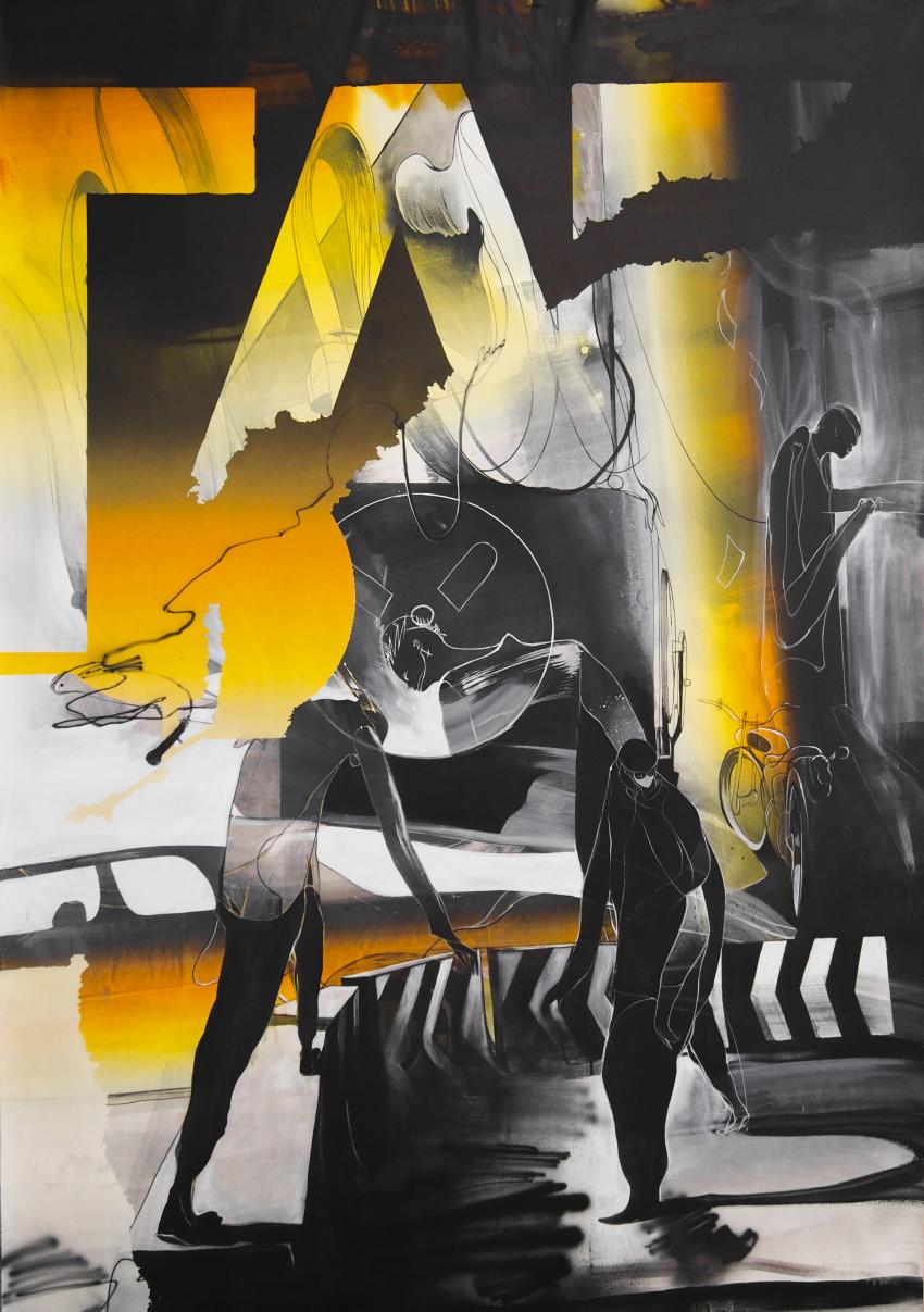 Fousion Gallery presents The Unresolved, a collection of paintings made by Will Barras (Unit 8, Studio TB-132) and O.Two (aka James Carey) made during lockdown in early 2021. Through text messages and occasional phone calls, what might usually happen in the pub, or on visits to each other’s studios, the artists explored ideas, joked about global pandemics and built a concept for a collection of collaborative pieces. In the spirit of the Surrealist’s Exquisite Corpse, in which artists blindly contribute to an image that is revealed only once finished, each artist paints the first few layers of a set of canvases and then after a socially distanced, clandestine exchange in a lonely carpark halfway between here and O.Two’s countryside home studio they worked over and into each other’s previous paint. Fousion Gallery, C/ de la Carassa 4, 08003 Barcelona, Spain. See exhibition preview and works here: fousiongallery.com/event/unresolved-new-collaborative-works-will-barras-and-otwo Image: O.Two and Will Barras, Wait for Daylight, acrylic and spray paint on canvas, 190 x 130cm, 2021, courtesy the artists and Fousion Gallery