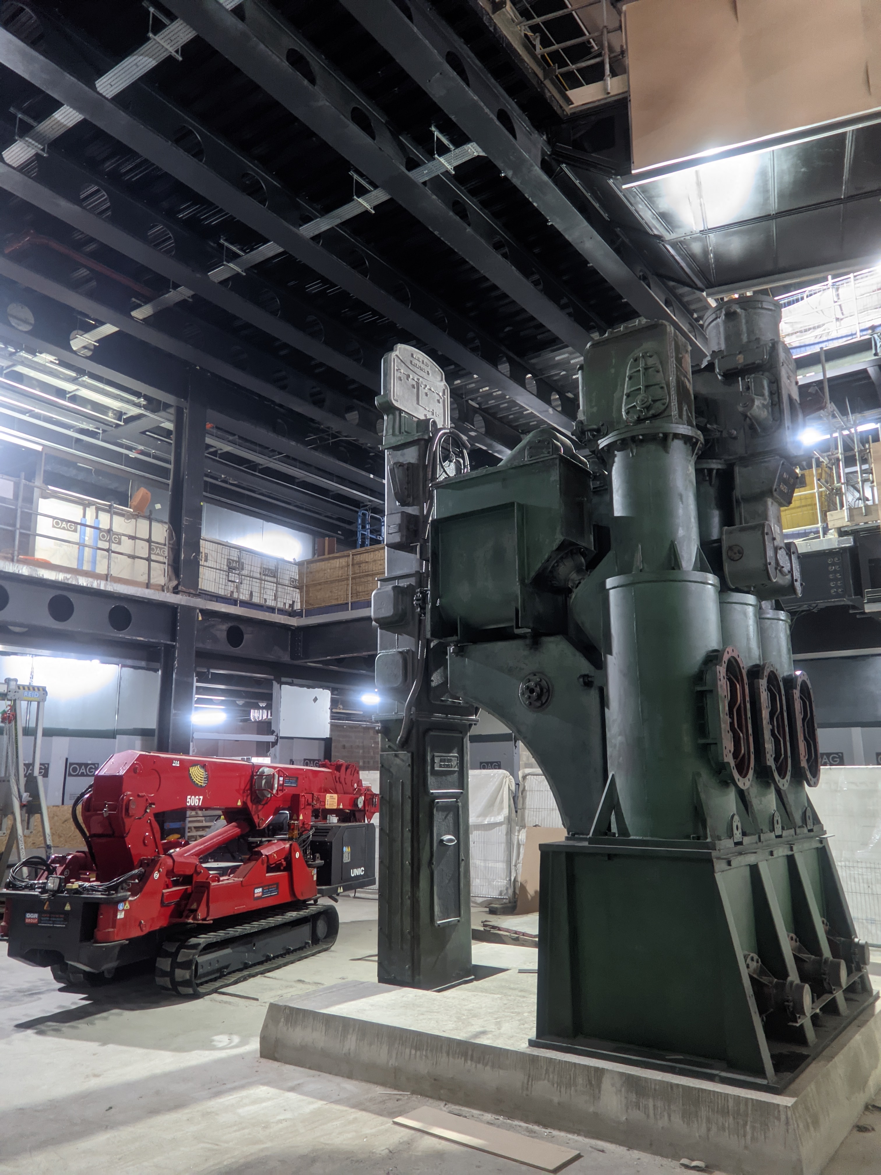 Hall Conservation (Studio 5-07) are proud to have played a significant role in the journey. They were enlisted for consultation, specialist surveys, specifications and restoration work. For the past six years their team have been working on different elements, from producing surveys and specifications for the Art Deco control room A and the 1950’s Control Room B, conservation treatment to the Bronze Directors entrance doors, remanufacture and replacement of Bronze plaques to the installation of large Industrial plant as sculpture, inside and outside, of the power station, both on site at Battersea and here at Thames-Side Studios.