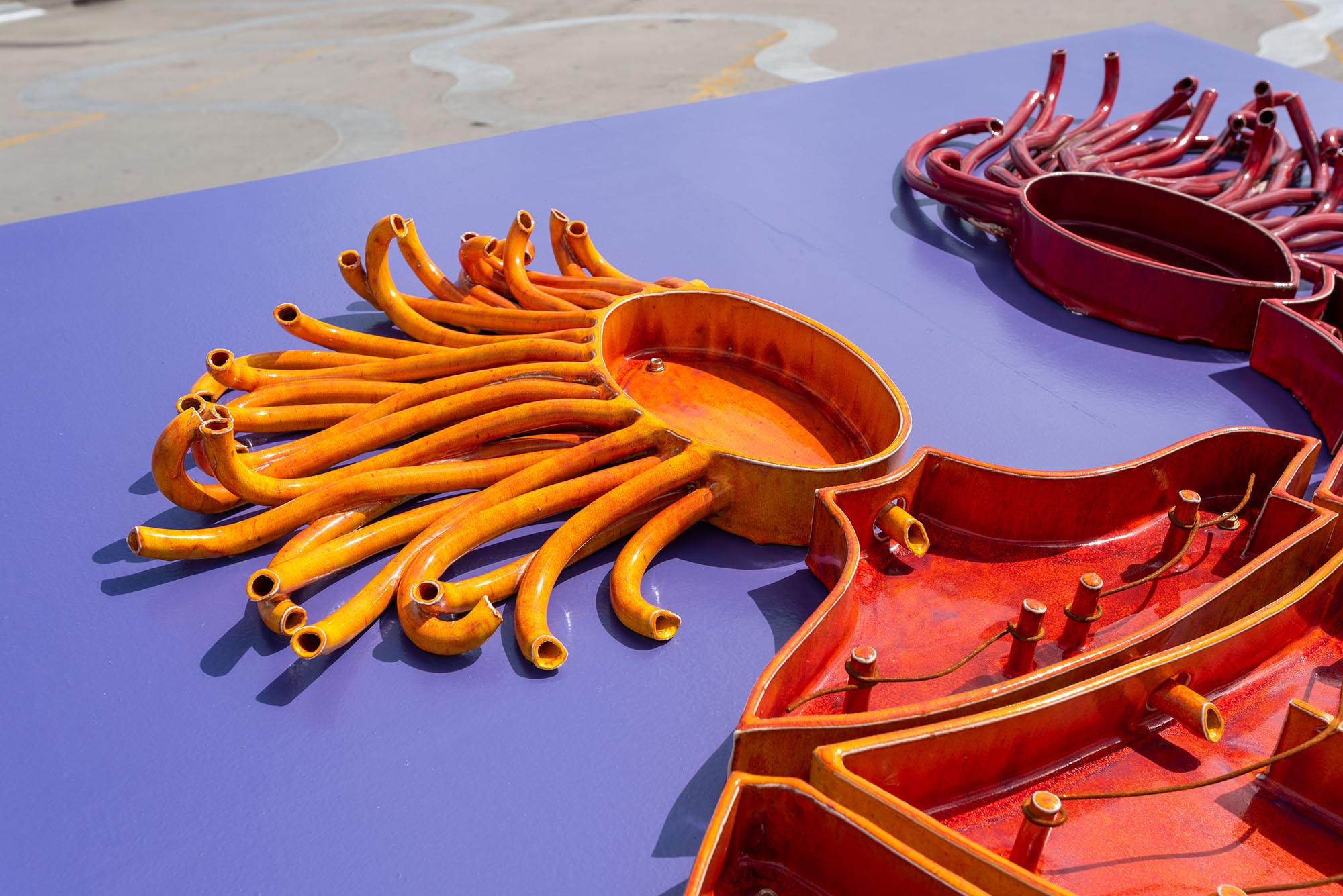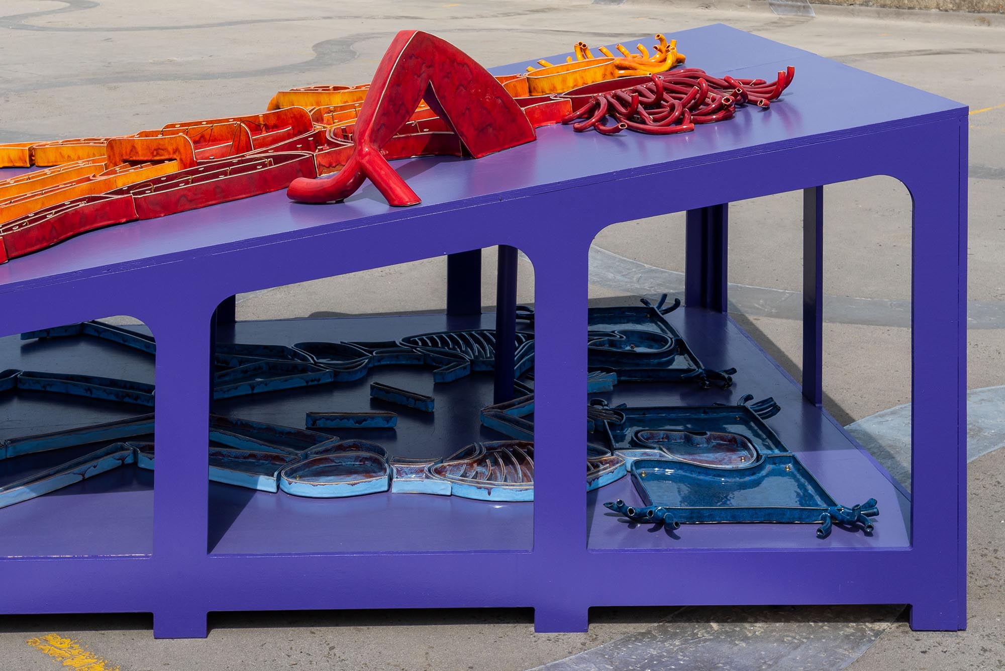Paloma Proudfoot (Studio 5-134) was commissioned to create a major ceramic sculpture for Bold Tendencies alongside Martin Creed, Rhea Dillon, Nan Goldin, Dominique White and Gray Wielebinski. Grief is recognised as a friend takes the form of a Late Mediaeval cadaver monument, otherwise known as a transi tomb. Designed to remind its audience of the transience of mortal life, its twin-level format includes a graceful and lifelike depiction of its subject raised above the effigy of a skeleton or an emaciated, even decomposing, dead body. - text courtesy Bold Tendencies. Bold Tendencies, 7th – 10th Floors, Multi-Storey Car Park, 95a Rye Lane, London SE15 4TG. Open Thursday-Sunday, 11am-11pm. Visit boldtendencies.com for full details.