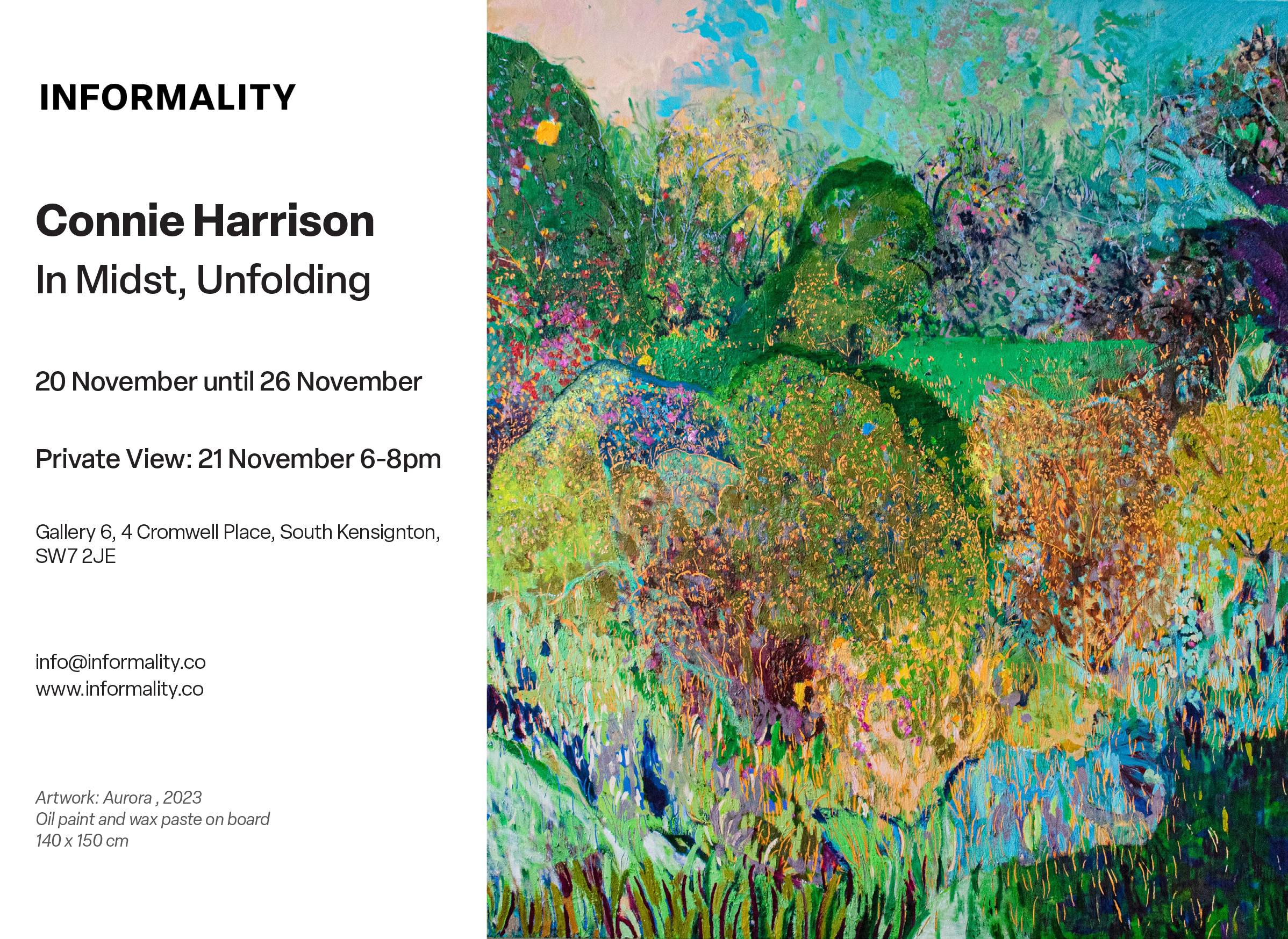 Connie Harrison's (Studio 5-132) latest solo exhibition, In Midst, Unfolding, opens at Cromwell Place on Tuesday 21st November, 6-8pm. Exhibiting with Informality, the exhibition continues to 26th November. The exhibition is free, just book your day ticket to visit here: events.cromwellplace.com/events/cromwellplace/1047853 Gallery 6, 4 Cromwell Place, South Kensington SW7 2JE.